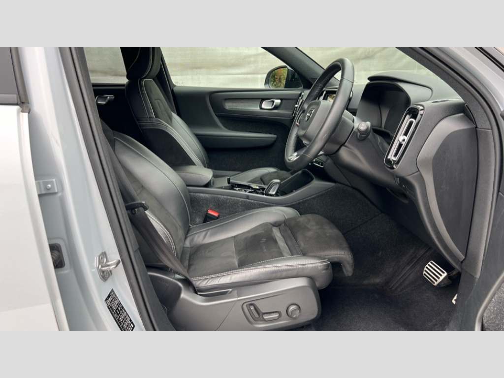 Volvo XC40 1.5 T3 [163] R DESIGN Pro 5dr Geartronic 12.3" Active TFT crystal driver's instrument display, 9" centre console portrait touch screen, Adjustable steering wheel force, Bluetooth hands free telephone kit, Drive mode selector, E-call, Lane keep assist with driver alert control, Oncoming Lane Mitigation, Power operated tailgate, Sensus navigation with European mapping and traffic information, Speed limiter, Speed sensitive steering, Voice activated control for key functions, Volvo on call, Sports chassis, DAB Digital radio, Steering wheel mounted remote controls, Adaptive brake lights with high level LED brake lights, Auto dimming interior mirror, Automatic headlamp levelling, Dark tinted windows for rear door side windows and cargo compartment, Electric adjustable/heated/auto folding door mirrors, Front aluminium tread plates, Front and rear electric windows, Heated front windscreen, High gloss black front and rear skid plate, High gloss black lower front bumper, High gloss black mesh front grille with high gloss black surround, High gloss black sensus surround deco, High gloss black window trim, Home safe and approach lighting, Integrated roof rails in high gloss black, LED Headlights + Active high beam incorporating daytime running lights, Rain sensor with automatic windscreen wiper activation, Rear side wing doors, Rear wiper, Roof antenna, Roof spoiler, Visible VIN plate, 12V socket in front tunnel console and luggage compartment, 2 zone electronic climate control and rear air vent, 3 seat bench in 2nd row, 60/40 versatile split folding rear seat, A-pillar parking ticket holder, Bright metal luggage threshold, Centre console cupholders and storage, Charcoal headlining, Front footwell illumination, Front headrests, Front reading light and theatre lighting, Front seat cushion extensions, Front tunnel net pocket and integrated waste bin, Glovebox bag hook, Heated front seats, Height/reach adjustable steering column, Height/tilt adjustable driver's seat, High gloss centre tunnel deco, Illuminated glovebox, Illuminated luggage compartment, Illuminated vanity mirrors, Isofix attachments on outer rear seats, Leather gearknob, Load protection net, Multi directional lumbar support, Power driver seat with memory + exterior mirrors memory, Rear armrest / integral cup holders / storage tray, Rear coat hook, Single front passenger seat, Sports floor mats, Sports pedals, Sports tailored steering wheel, Underfloor cargo storage, Vanity mirror with ticket holder, Lighting pack - XC40, 3x3 point rear seatbelts, City safety includes pedestrian, cyclist and large animal detection and front collision warning with full auto brake, Drivers knee airbag, Dual stage driver/passenger airbags, Electronic parking brake with auto hold, First aid kit, Front and outer rear seatbelt reminder and pretensioners, Front seats SIPS airbags, Hill descent control, Hill start assist, Inflatable curtain, Passenger airbag cut-off device, Road sign information display, Run off Road Mitigation, Run off Road Protection, SIPS (Side Impact Protection System), Slippery road and hazard light alert, Stability and Traction Control with Spin control, Engine Drag Control and Corner Traction Control, Tyre pressure monitoring system, Vehicle deceleration control with Anti-lock Brake System, Electronic Brake Distribution and Emergency Brake Assist, Warning triangle, WHIPS whiplash protection system - front, Anti-theft alarm including immobiliser/volume sensor + level sensor, Care key with user defined top speed, Key integrated remote control central locking + fuel flap with deadlocking system and auto open/close power windows, Locking wheel nuts, Private locking for tailgate, Cutting edge aluminium inlay, Lower dashboard, tunnel console and door panel in charcoal