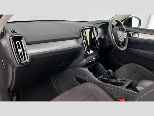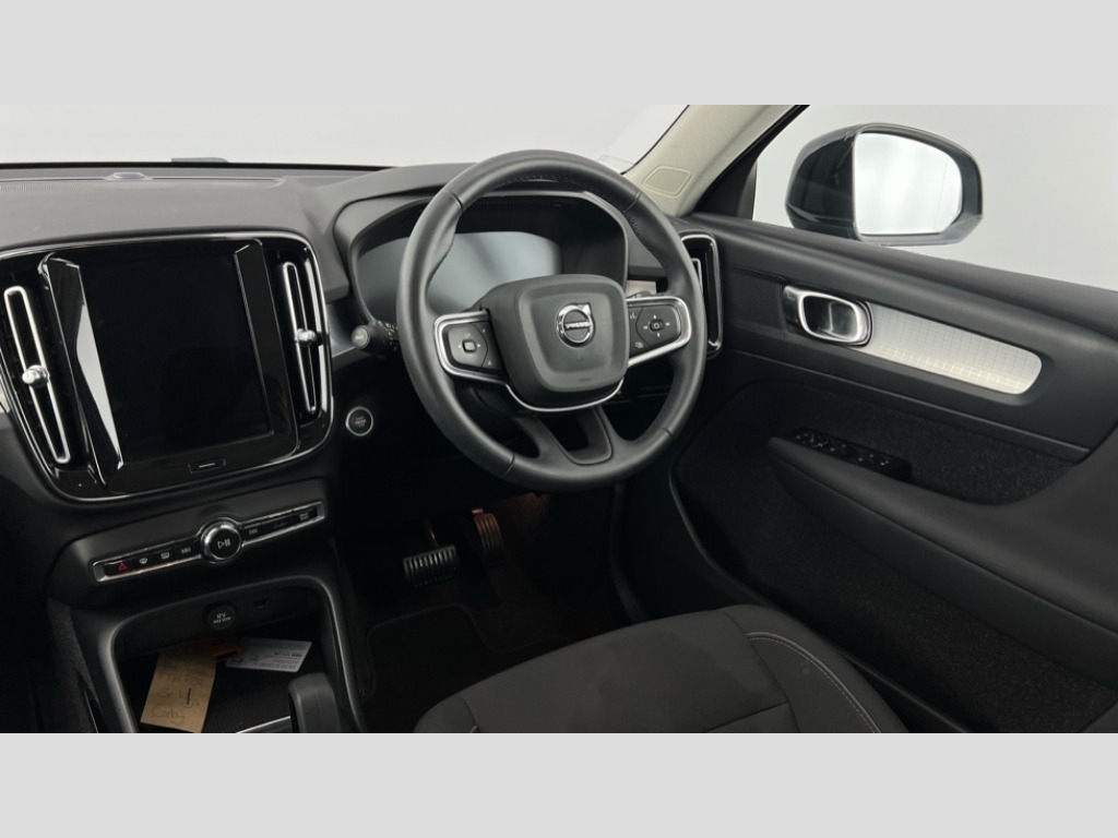 Volvo XC40 1.5 T4 Recharge PHEV Inscription 5dr Auto 12.3" Active TFT crystal driver's instrument display, 9" centre console portrait touch screen, Adjustable steering wheel force, Bluetooth hands free telephone kit, Drive mode selector, E-call, Lane keep assist with driver alert control, Oncoming Lane Mitigation, Power operated tailgate, Sensus navigation with European mapping and traffic information, Speed limiter, Speed sensitive steering, Voice activated control for key functions, Volvo on call, 7m 10amp charge cable with 3 pin plug and 7m 1 phase 16amp type 2/mode 3 charge cable, Dynamic chassis, Electric front axle drive, Recharging port located in nearside front wing, DAB Digital radio, Low speed exterior sound speaker, Steering wheel mounted remote controls, Adaptive brake lights with high level LED brake lights, Auto dimming interior mirror, Automatic headlamp levelling, Chrome window surround, Colour coordinated auto folding and heated power door mirrors, Front aluminium tread plates, Front and rear electric windows, High gloss black front grille with chrome inserts, High gloss black sensus surround deco, High Gloss silver front and rear skid plate, Home safe and approach lighting, Integrated roof rails in silver, LED Headlights + Active high beam incorporating daytime running lights, Rain sensor with automatic windscreen wiper activation, Rear side wing doors, Rear wiper, Roof antenna, Roof spoiler, Visible VIN plate, 12V socket in front tunnel console and luggage compartment, 2 zone electronic climate control and rear air vent, 3 seat bench in 2nd row, 3 Spoke tailored steering wheel with chrome trim, 60/40 versatile split folding rear seat, A-pillar parking ticket holder, Bright metal luggage threshold, Centre console cupholders and storage, Floor mats, Front footwell illumination, Front headrests, Front reading light and theatre lighting, Glovebox bag hook, Height/reach adjustable steering column, Height/tilt adjustable driver's seat, High gloss centre tunnel deco, Illuminated glovebox, Illuminated luggage compartment, Illuminated vanity mirrors, Isofix attachments on outer rear seats, Leather faced upholstery, Load protection net, Multi directional lumbar support, Orrefors Crystal gear lever knob, Power driver seat with memory + exterior mirrors memory, Rear armrest / integral cup holders / storage tray, Rear coat hook, Single front passenger seat, Underfloor cargo storage, Vanity mirror with ticket holder, Park assist pack - XC40, 3x3 point rear seatbelts, City safety includes pedestrian, cyclist and large animal detection and front collision warning with full auto brake, Drivers knee airbag, Dual stage driver/passenger airbags, Electronic parking brake with auto hold, First aid kit, Front and outer rear seatbelt reminder and pretensioners, Front seats SIPS airbags, Hill descent control, Hill start assist, Inflatable curtain, Passenger airbag cut-off device, Road sign information display, Run off Road Mitigation, Run off Road Protection, SIPS (Side Impact Protection System), Slippery road and hazard light alert, Stability and Traction Control with Spin control, Engine Drag Control and Corner Traction Control, Tyre pressure monitoring system, Vehicle deceleration control with Anti-lock Brake System, Electronic Brake Distribution and Emergency Brake Assist, Warning triangle, WHIPS whiplash protection system - front, Anti-theft alarm including immobiliser/volume sensor + level sensor, Care key with user defined top speed, Key integrated remote control central locking + fuel flap with deadlocking system and auto open/close power windows, Locking wheel nuts, Private locking for tailgate, Driftwood inlays