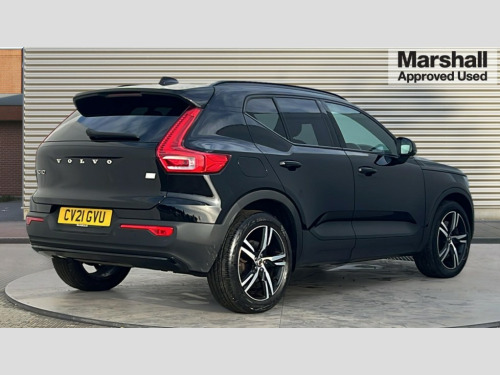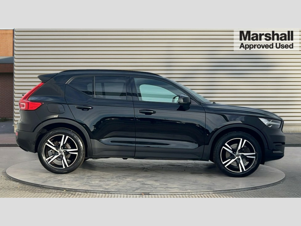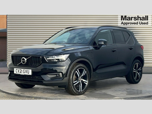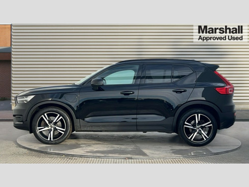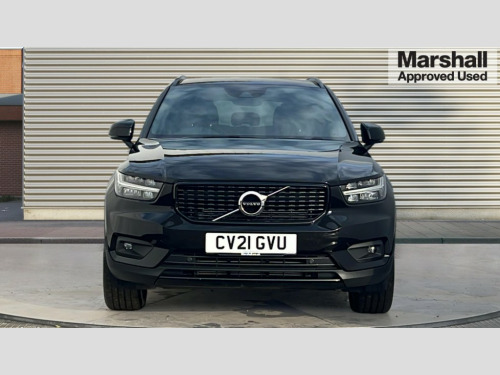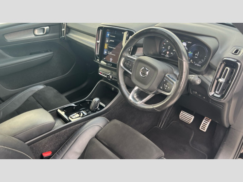 Volvo XC40 1.5 T4 Recharge PHEV R DESIGN 5dr Auto 12.3" Active TFT crystal driver's instrument display, 9" centre console portrait touch screen, Adjustable steering wheel force, Bluetooth hands free telephone kit, Drive mode selector, Lane keep assist with driver alert control, Oncoming Lane Mitigation, Power operated tailgate, Sensus navigation with European mapping and traffic information, Speed limiter, Speed sensitive steering, Voice activated control for key functions, Volvo on call, 7m 10amp charge cable with 3 pin plug and 7m 1 phase 16amp type 2/mode 3 charge cable, Electric front axle drive, Recharging port located in nearside front wing, Sports chassis, DAB Digital radio, Low speed exterior sound speaker, Steering wheel mounted remote controls, Adaptive brake lights with high level LED brake lights, Auto dimming interior mirror, Automatic headlamp levelling, Black stone door mirrors, Black stone roof, Colour coordinated auto folding and heated power door mirrors, Dark tinted windows for rear door side windows and cargo compartment, Dual integrated exhaust pipes with high gloss black surround, Front aluminium tread plates, Front and rear electric windows, High gloss black front and rear skid plate, High gloss black lower front bumper, High gloss black mesh front grille with high gloss black surround, High gloss black roof rails, High gloss black sensus surround deco, High gloss black window trim, Home safe and approach lighting, LED Headlights + Active high beam incorporating daytime running lights, Rain sensor with automatic windscreen wiper activation, Rear side wing doors, Rear wiper, Roof antenna, Roof spoiler, Visible VIN plate, 12V socket in front tunnel console and luggage compartment, 2 zone electronic climate control and rear air vent, 3 seat bench in 2nd row, 60/40 versatile split folding rear seat, A-pillar parking ticket holder, Centre console cupholders and storage, Charcoal headlining, Driver's side lower dashboard credit card storage compartment, Front footwell illumination, Front headrests, Front reading light and theatre lighting, Front seat cushion extensions, Glovebox bag hook, Height/reach adjustable steering column, High gloss centre tunnel deco, Illuminated glovebox, Illuminated luggage compartment, Illuminated vanity mirrors, Isofix attachments on outer rear seats, Key integrated remote, Leather gearknob, Load protection net, Multi directional lumbar support, Rear armrest / integral cup holders / storage tray, Rear coat hook, Single front passenger seat, Sports floor mats, Sports pedals, Sports tailored steering wheel, Underfloor cargo storage, 3x3 point rear seatbelts, City safety includes pedestrian, cyclist and large animal detection and front collision warning with full auto brake, Drivers knee airbag, Dual stage driver/passenger airbags, Electronic parking brake with auto hold, First aid kit, Front and outer rear seatbelt reminder and pretensioners, Front seats SIPS airbags, Hill descent control, Hill start assist, Inflatable curtain, Passenger airbag cut-off device, Road sign information display, Run off Road Mitigation, Run off Road Protection, SIPS (Side Impact Protection System), Slippery road and hazard light alert, Stability and Traction Control with Spin control, Engine Drag Control and Corner Traction Control, Tyre pressure monitoring system, Vehicle deceleration control with Anti-lock Brake System, Electronic Brake Distribution and Emergency Brake Assist, Warning triangle, WHIPS whiplash protection system - front, Anti-theft alarm including immobiliser/volume sensor + level sensor, Care key with user defined top speed, Key integrated remote control central locking + fuel flap with deadlocking system and auto open/close power windows, Locking wheel nuts, Private locking for tailgate, Cutting edge aluminium inlay, Lower dashboard, tunnel console and door panel in charcoal