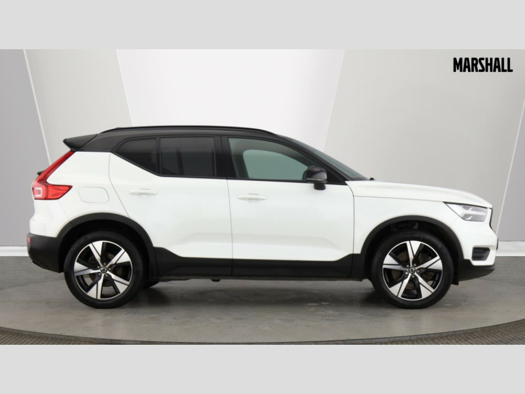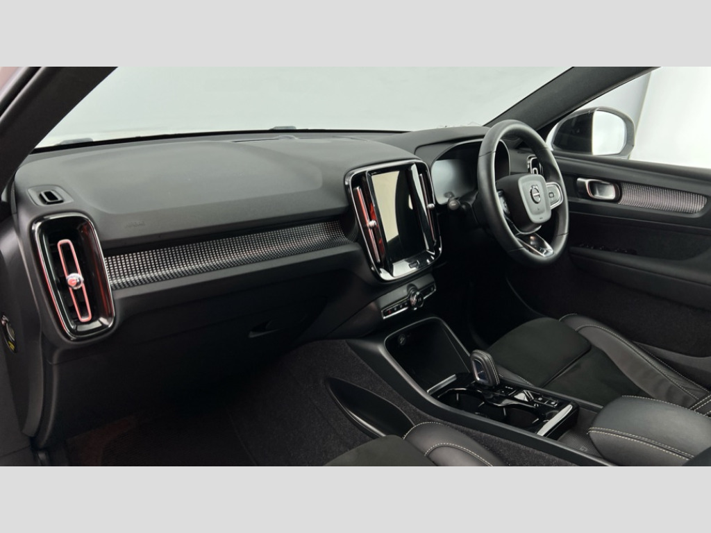 Volvo XC40 1.5 T4 Recharge PHEV R DESIGN 5dr Auto 12.3" Active TFT crystal driver's instrument display, 9" centre console portrait touch screen, Adjustable steering wheel force, Bluetooth hands free telephone kit, Drive mode selector, E-call, Lane keep assist with driver alert control, Oncoming Lane Mitigation, Power operated tailgate, Sensus navigation with European mapping and traffic information, Speed limiter, Speed sensitive steering, Voice activated control for key functions, Volvo on call, 7m 10amp charge cable with 3 pin plug and 7m 1 phase 16amp type 2/mode 3 charge cable, Electric front axle drive, Recharging port located in nearside front wing, Sports chassis, DAB Digital radio, Low speed exterior sound speaker, Steering wheel mounted remote controls, Adaptive brake lights with high level LED brake lights, Auto dimming interior mirror, Automatic headlamp levelling, Automatic LED Headlights + Active high beam incorporating daytime running lights, Dark tinted windows for rear door side windows and cargo compartment, Electric adjustable/heated/auto folding door mirrors, Front aluminium tread plates, Front and rear electric windows, High gloss black front and rear skid plate, High gloss black lower front bumper, High gloss black mesh front grille with high gloss black surround, High gloss black sensus surround deco, High gloss black window trim, Home safe and approach lighting, Integrated roof rails in high gloss black, Rain sensor with automatic windscreen wiper activation, Rear side wing doors, Rear wiper, Roof antenna, Roof spoiler, Visible VIN plate, 12V socket in front tunnel console and luggage compartment, 2 zone electronic climate control and rear air vent, 3 seat bench in 2nd row, 60/40 versatile split folding rear seat, A-pillar parking ticket holder, Centre console cupholders and storage, Charcoal headlining, Front footwell illumination, Front headrests, Front reading light and theatre lighting, Front seat cushion extensions, Glovebox bag hook, Height adjustable passenger seat, Height/reach adjustable steering column, Height/tilt adjustable driver's seat, High gloss centre tunnel deco, Illuminated glovebox, Illuminated luggage compartment, Illuminated vanity mirrors, Isofix attachments on outer rear seats, Key integrated remote, Leather gearknob, Load protection net, Multi directional lumbar support, Rear armrest / integral cup holders / storage tray, Rear coat hook, Rear headrests, Single front passenger seat, Sports floor mats, Sports pedals, Sports tailored steering wheel, Underfloor cargo storage, Vanity mirror with ticket holder, 3x3 point rear seatbelts, City safety includes pedestrian, cyclist and large animal detection and front collision warning with full auto brake, Drivers knee airbag, Dual stage driver/passenger airbags, Electronic parking brake with auto hold, First aid kit, Front and outer rear seatbelt reminder and pretensioners, Front seats SIPS airbags, Hill descent control, Hill start assist, Inflatable curtain, Passenger airbag cut-off device, Road sign information display, Run off Road Mitigation, Run off Road Protection, SIPS (Side Impact Protection System), Slippery road and hazard light alert, Stability and Traction Control with Spin control, Engine Drag Control and Corner Traction Control, Tyre pressure monitoring system, Vehicle deceleration control with Anti-lock Brake System, Electronic Brake Distribution and Emergency Brake Assist, Warning triangle, WHIPS whiplash protection system - front, Anti-theft alarm including immobiliser/volume sensor + level sensor, Care key with user defined top speed, Key integrated remote control central locking + fuel flap with deadlocking system and auto open/close power windows, Locking wheel nuts, Private locking for tailgate, Cutting edge aluminium inlay, Lower dashboard, tunnel console and door panel in charcoal