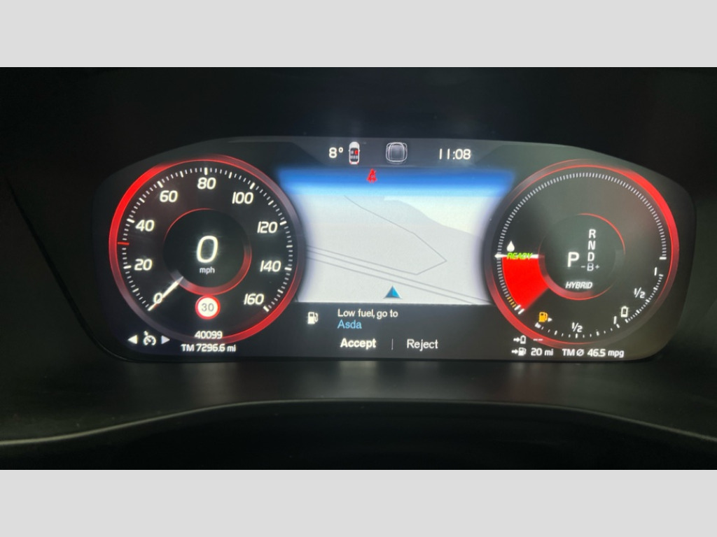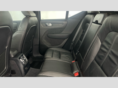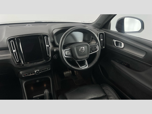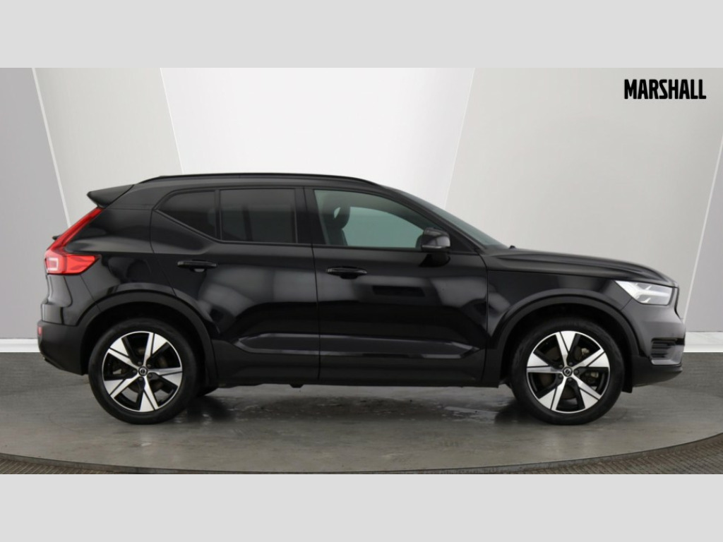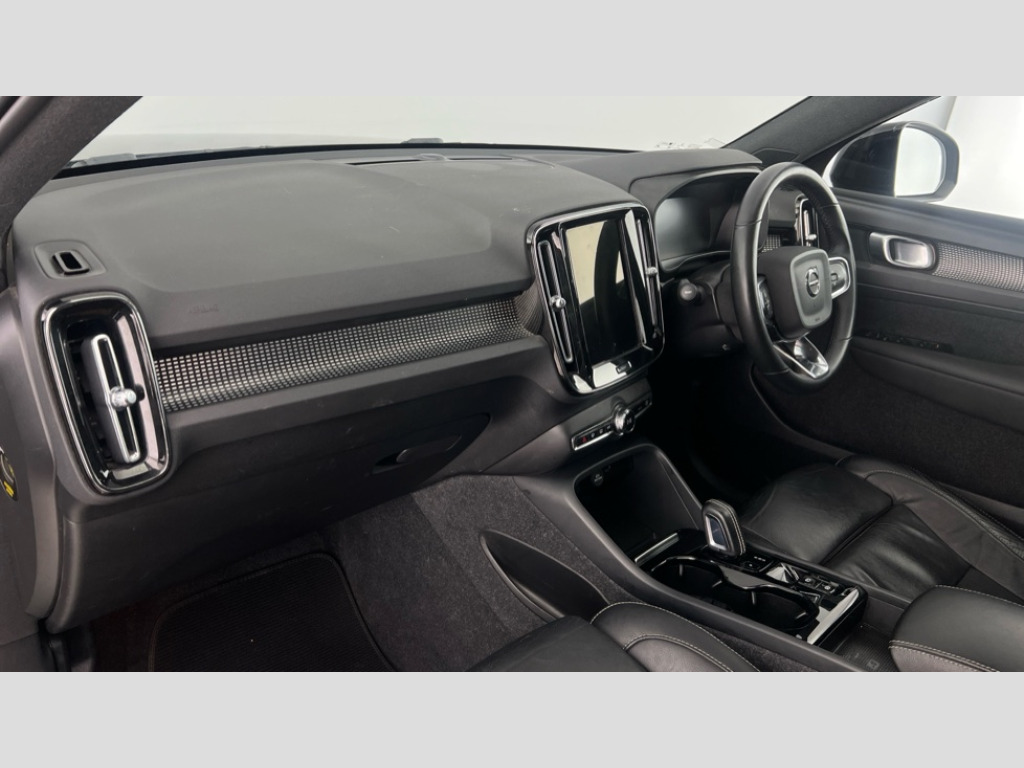 Volvo XC40 1.5 T4 Recharge PHEV R DESIGN 5dr Auto 12.3" Active TFT crystal driver's instrument display, 9" centre console portrait touch screen, Adjustable steering wheel force, Bluetooth hands free telephone kit, Drive mode selector, E-call, Lane keep assist with driver alert control, Oncoming Lane Mitigation, Power operated tailgate, Sensus navigation with European mapping and traffic information, Speed limiter, Speed sensitive steering, Voice activated control for key functions, Volvo on call, 7m 10amp charge cable with 3 pin plug and 7m 1 phase 16amp type 2/mode 3 charge cable, Electric front axle drive, Recharging port located in nearside front wing, Sports chassis, DAB Digital radio, Low speed exterior sound speaker, Steering wheel mounted remote controls, Adaptive brake lights with high level LED brake lights, Auto dimming interior mirror, Automatic headlamp levelling, Automatic LED Headlights + Active high beam incorporating daytime running lights, Dark tinted windows for rear door side windows and cargo compartment, Electric adjustable/heated/auto folding door mirrors, Front aluminium tread plates, Front and rear electric windows, High gloss black front and rear skid plate, High gloss black lower front bumper, High gloss black mesh front grille with high gloss black surround, High gloss black sensus surround deco, High gloss black window trim, Home safe and approach lighting, Integrated roof rails in high gloss black, Rain sensor with automatic windscreen wiper activation, Rear side wing doors, Rear wiper, Roof antenna, Roof spoiler, Visible VIN plate, 12V socket in front tunnel console and luggage compartment, 2 zone electronic climate control and rear air vent, 3 seat bench in 2nd row, 60/40 versatile split folding rear seat, A-pillar parking ticket holder, Centre console cupholders and storage, Charcoal headlining, Front footwell illumination, Front headrests, Front reading light and theatre lighting, Front seat cushion extensions, Glovebox bag hook, Height adjustable passenger seat, Height/reach adjustable steering column, Height/tilt adjustable driver's seat, High gloss centre tunnel deco, Illuminated glovebox, Illuminated luggage compartment, Illuminated vanity mirrors, Isofix attachments on outer rear seats, Key integrated remote, Leather gearknob, Load protection net, Multi directional lumbar support, Rear armrest / integral cup holders / storage tray, Rear coat hook, Rear headrests, Single front passenger seat, Sports floor mats, Sports pedals, Sports tailored steering wheel, Underfloor cargo storage, Vanity mirror with ticket holder, 3x3 point rear seatbelts, City safety includes pedestrian, cyclist and large animal detection and front collision warning with full auto brake, Drivers knee airbag, Dual stage driver/passenger airbags, Electronic parking brake with auto hold, First aid kit, Front and outer rear seatbelt reminder and pretensioners, Front seats SIPS airbags, Hill descent control, Hill start assist, Inflatable curtain, Passenger airbag cut-off device, Road sign information display, Run off Road Mitigation, Run off Road Protection, SIPS (Side Impact Protection System), Slippery road and hazard light alert, Stability and Traction Control with Spin control, Engine Drag Control and Corner Traction Control, Tyre pressure monitoring system, Vehicle deceleration control with Anti-lock Brake System, Electronic Brake Distribution and Emergency Brake Assist, Warning triangle, WHIPS whiplash protection system - front, Anti-theft alarm including immobiliser/volume sensor + level sensor, Care key with user defined top speed, Key integrated remote control central locking + fuel flap with deadlocking system and auto open/close power windows, Locking wheel nuts, Private locking for tailgate, Cutting edge aluminium inlay, Lower dashboard, tunnel console and door panel in charcoal