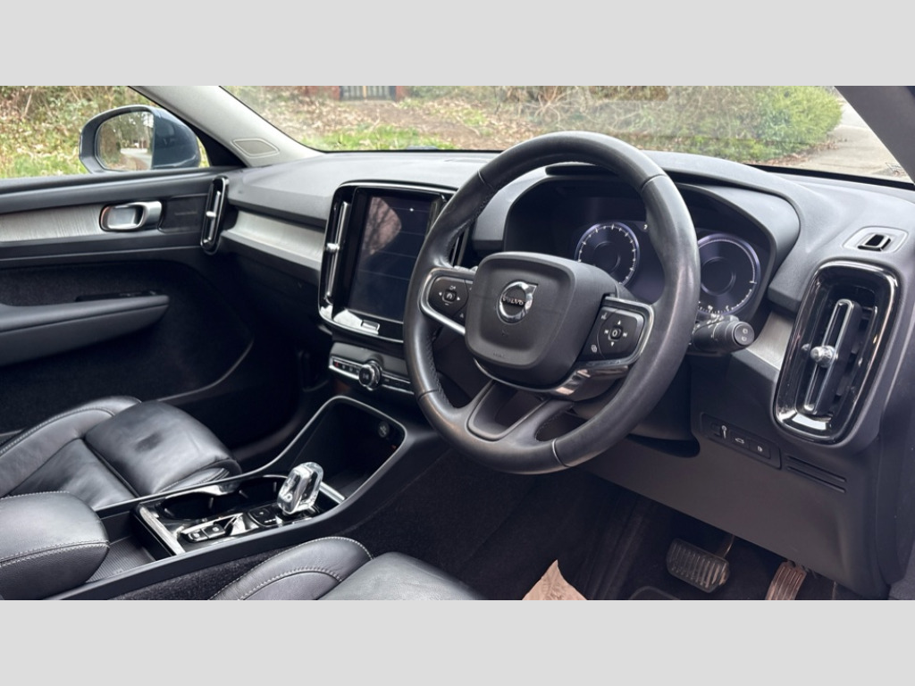 Volvo XC40 1.5 T5 Recharge PHEV Inscription Pro 5dr Auto 12.3" Active TFT crystal driver's instrument display, 9" centre console portrait touch screen, Adjustable steering wheel force, Bluetooth hands free telephone kit, Drive mode selector, E-call, Lane keep assist with driver alert control, Oncoming Lane Mitigation, Power operated tailgate, Sensus navigation with European mapping and traffic information, Speed limiter, Speed sensitive steering, Voice activated control for key functions, Volvo on call, 7m 10amp charge cable with 3 pin plug and 7m 1 phase 16amp type 2/mode 3 charge cable, Dynamic chassis, Electric front axle drive, Recharging port located in nearside front wing, DAB Digital radio, Low speed exterior sound speaker, Steering wheel mounted remote controls, Adaptive brake lights with high level LED brake lights, Auto dimming interior mirror, Automatic headlamp levelling, Automatic LED Headlights + Active high beam incorporating daytime running lights, Chrome window surround, Colour coordinated auto folding and heated power door mirrors, Front aluminium tread plates, Front and rear electric windows, Heated front windscreen, High gloss black front grille with chrome inserts, High gloss black sensus surround deco, High Gloss silver front and rear skid plate, Home safe and approach lighting, Integrated roof rails in silver, Rain sensor with automatic windscreen wiper activation, Rear side wing doors, Rear wiper, Roof antenna, Roof spoiler, Visible VIN plate, 12V socket in front tunnel console and luggage compartment, 2 zone electronic climate control and rear air vent, 3 seat bench in 2nd row, 3 Spoke tailored steering wheel with chrome trim, 60/40 versatile split folding rear seat, A-pillar parking ticket holder, Blond headlining, Bright metal luggage threshold, Centre console cupholders and storage, Floor mats, Front footwell illumination, Front headrests, Front reading light and theatre lighting, Front seat cushion extensions, Glovebox bag hook, Heated front seats, Height/reach adjustable steering column, Height/tilt adjustable driver's seat, High gloss centre tunnel deco, Illuminated glovebox, Illuminated luggage compartment, Illuminated vanity mirrors, Isofix attachments on outer rear seats, Leather faced upholstery, Load protection net, Multi directional lumbar support, Orrefors Crystal gear lever knob, Power driver seat with memory + exterior mirrors memory, Power passenger seat, Rear armrest / integral cup holders / storage tray, Rear coat hook, Single front passenger seat, Underfloor cargo storage, Vanity mirror with ticket holder, Lighting pack - XC40, Park assist pack - XC40, 3x3 point rear seatbelts, City safety includes pedestrian, cyclist and large animal detection and front collision warning with full auto brake, Drivers knee airbag, Dual stage driver/passenger airbags, Electronic parking brake with auto hold, First aid kit, Front and outer rear seatbelt reminder and pretensioners, Front seats SIPS airbags, Hill descent control, Hill start assist, Inflatable curtain, Passenger airbag cut-off device, Road sign information display, Run off Road Mitigation, Run off Road Protection, SIPS (Side Impact Protection System), Slippery road and hazard light alert, Stability and Traction Control with Spin control, Engine Drag Control and Corner Traction Control, Tyre pressure monitoring system, Vehicle deceleration control with Anti-lock Brake System, Electronic Brake Distribution and Emergency Brake Assist, Warning triangle, WHIPS whiplash protection system - front, Anti-theft alarm including immobiliser/volume sensor + level sensor, Care key with user defined top speed, Key integrated remote control central locking + fuel flap with deadlocking system and auto open/close power windows, Locking wheel nuts, Private locking for tailgate, Driftwood inlays