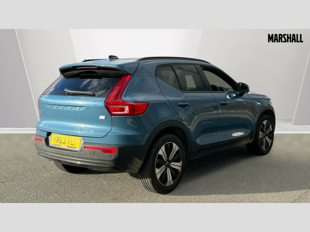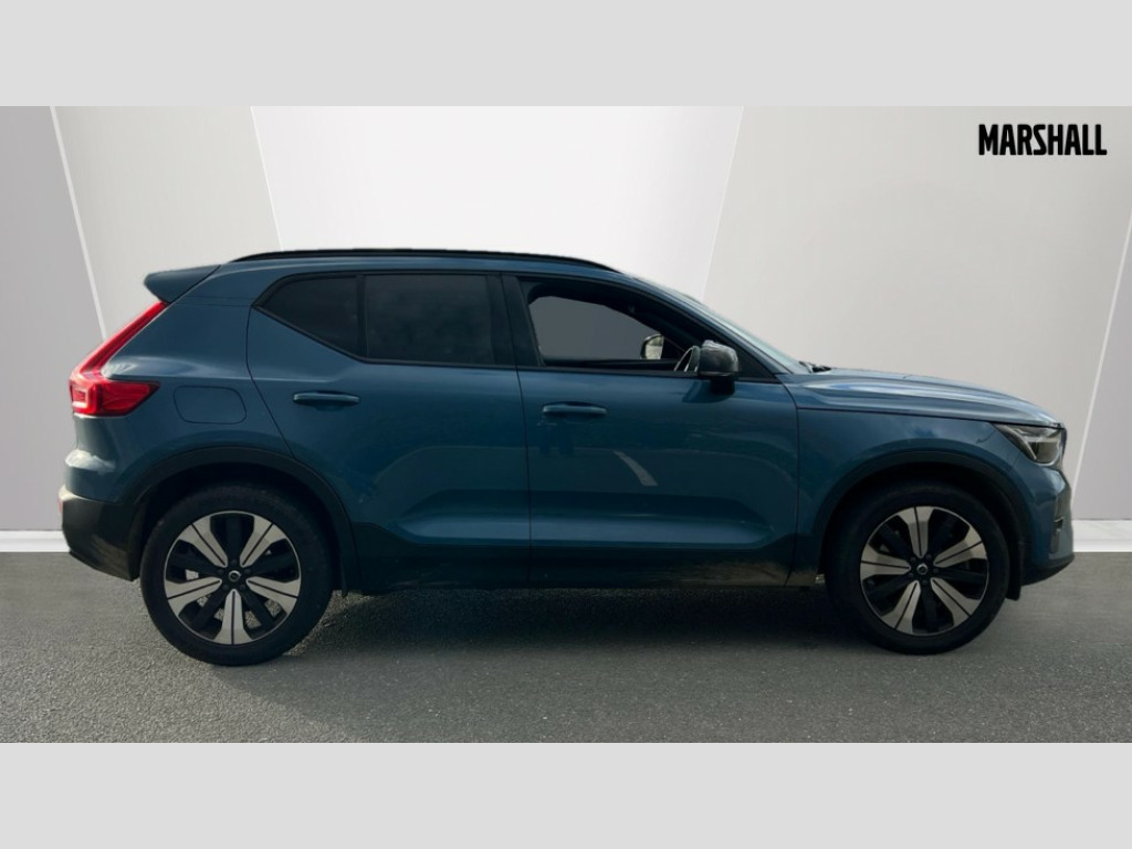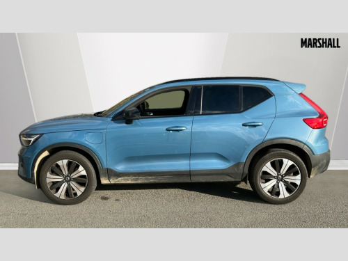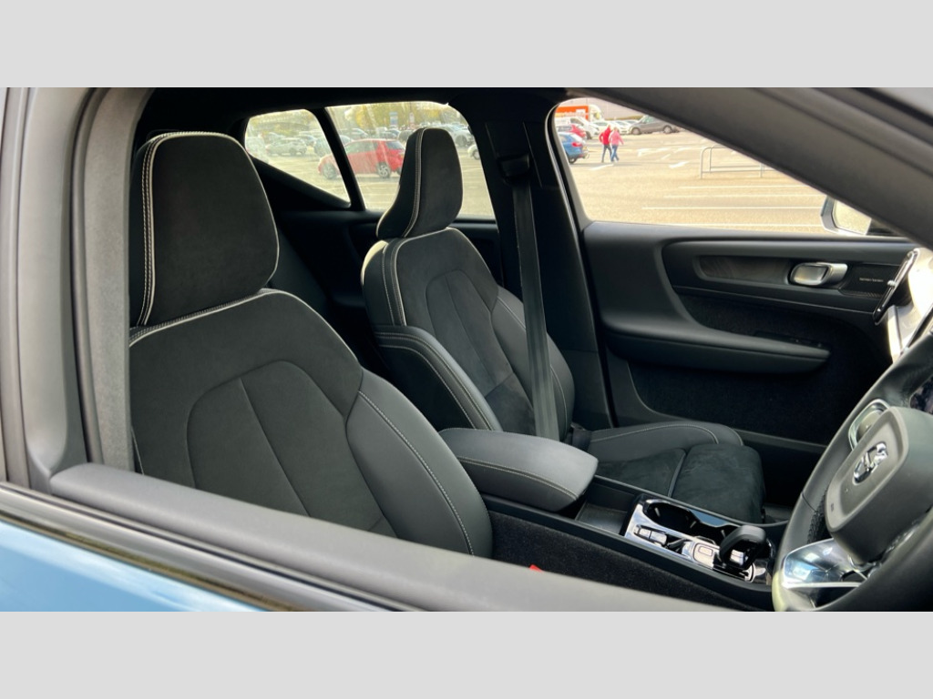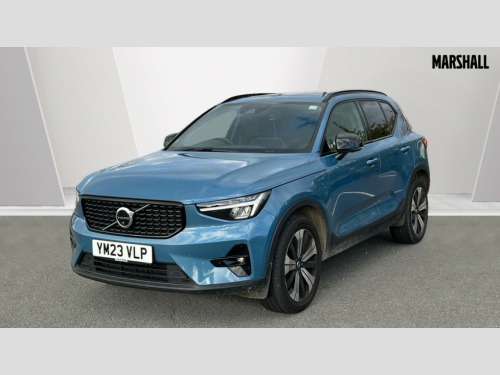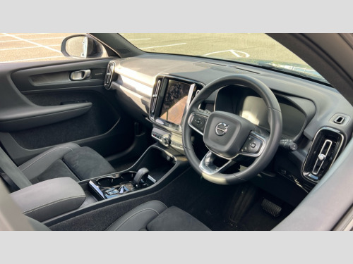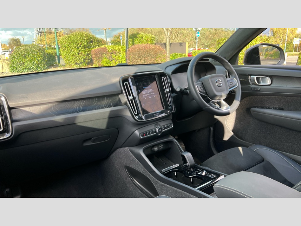 Volvo XC40 1.5 T5 Recharge PHEV Ultimate Dark 5dr Auto 12.3" Active TFT crystal driver's instrument display, 360 degree surround view parking camera, 9" centre console portrait touch screen, Adjustable steering wheel force, Bluetooth hands free telephone kit, Drive mode selector, E-call, Front park assist, Hands free power tailgate, Lane keep assist with driver alert control, Oncoming Lane Mitigation, Rear park assist, Sensus navigation with European mapping and traffic information, Speed limiter, Speed sensitive steering, Voice activated control for key functions, Wireless Smartphone Integration includes Apple CarPlay and Android auto, Wireless/Inductive Mobile Phone Charging, 3.7 kW monophase on board charger, 7m 10amp charge cable with 3 pin plug and 7m 1 phase 16amp type 2/mode 3 charge cable, Dynamic chassis, Electric front axle drive, Recharging port located in nearside front wing, DAB Digital radio, Low speed exterior sound speaker, Premium Sound by Harman Kardon, Dolby Pro Logic II Surround Sound, Dirac Unison,12 speakers/600W and subwoofer, Steering wheel mounted remote controls, Active bending pixel LED headlights with adaptive shadow technology, Active high beam incorporating daytime running lights, Adaptive brake lights with high level LED brake lights, Auto dimming interior mirror, Automatic headlamp levelling, Dark tinted windows for rear door side windows and cargo compartment, Front and rear electric windows, Front recharge aluminium tread plates, Headlight cleaning system, High gloss black front and rear skid plate, High gloss black mesh front grille with high gloss black surround, High gloss black window trim, Home safe and approach lighting, Integrated roof rails in high gloss black, LED front fog lights, Power glass tilt and slide panoramic sunroof with sun curtain, Puddle lights, Rain sensor with automatic windscreen wiper activation, Rear side wing doors, Rear wiper, Roof antenna, Roof spoiler, Visible VIN plate, 12V socket in front tunnel console and luggage compartment, 2-Zone electronic climate control with CleanZone air quality system and pollen filter, 3 seat bench in 2nd row, 3 Spoke tailored steering wheel with chrome trim, 60/40 versatile split folding rear seat, A-pillar parking ticket holder, C-pillar Recharge logo, Centre console cupholders and storage, Floor mats, Front door pocket, front cupholder, ambient front door, rear reading, rear courtesy, instrument panel and tailgate lighting, Front footwell illumination, Front headrests, Front reading light and theatre lighting, Front seat cushion extensions, Front tunnel pocket, Glovebox bag hook, Heated front seats, Height adjustable passenger seat, Height/reach adjustable steering column, High gloss centre tunnel deco, Illuminated glovebox, Illuminated luggage compartment, Illuminated vanity mirrors, Isofix attachments on outer rear seats, Load protection net, Multi directional lumbar support, Power driver seat with memory + exterior mirrors memory, Power folding rear headrests, Power passenger seat, Rear armrest / integral cup holders / storage tray, Single front passenger seat, Underfloor cargo storage, Climate pack without heated front seats - XC40, Driver assist pack - XC40, 3x3 point rear seatbelts, City safety includes pedestrian, cyclist and large animal detection and front collision warning with full auto brake, Drivers knee airbag, Dual stage driver/passenger airbags, Electronic parking brake with auto hold, First aid kit, Front and outer rear seatbelt reminder and pretensioners, Front seats SIPS airbags, Hill descent control, Hill start assist, Inflatable curtain, Passenger airbag cut-off device, Power child locks on rear doors, Road sign information display, Run off Road Mitigation, Run off Road Protection, SIPS (Side Impact Protection System), Slippery road and hazard light alert, Stability and Traction Control with Spin control, Engine Drag Control and Corner Traction Control, Tyre pressure monitoring system, Vehicle deceleration control with Anti-lock Brake System, Electronic Brake Distribution and Emergency Brake Assist, Warning triangle, WHIPS whiplash protection system - front, Anti-theft alarm including immobiliser/volume sensor + level sensor, Care key with user defined top speed, Key integrated remote control central locking + fuel flap with deadlocking system and auto open/close power windows, Keyless drive includes keyless entry and keyless start, Locking wheel nuts, Private locking for tailgate