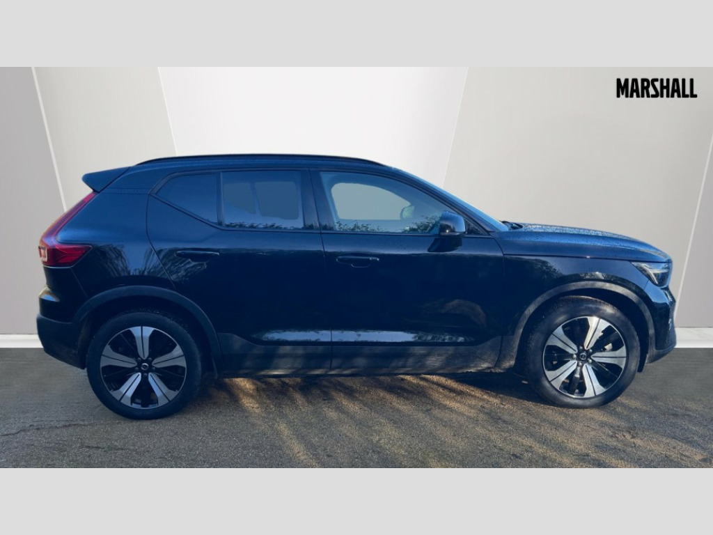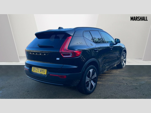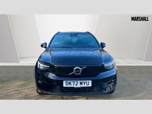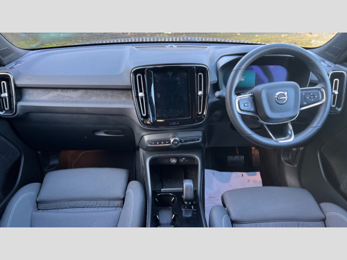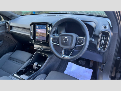 Volvo XC40 170kW Recharge Plus 69kWh 5dr Auto 12.3" Progressive Driver Display, 9" centre console portrait touch screen, Adjustable steering wheel force, Bluetooth handsfree system, Driver assistance (pilot assist and adaptive cruise control), Driver awareness - Blind spot information system with steer assist, cross traffic alert with autobrake and rear collision warning and mitigation, Emergency services call system, Front park assist, Google automatic services - Nav with google maps, apple carplay/android auto, voice recognition with google assistant, Hands free power tailgate, Lane keep assist with driver alert control, Oncoming Lane Mitigation, Rear park assist, Rear park assist camera, Speed limiter, Speed sensitive steering, Volvo cars services with app, Volvo on call with charge station locations and route planning and pre climatisation, Wireless Smartphone Integration includes Apple CarPlay and Android auto, Wireless/Inductive Mobile Phone Charging, 11 kW AC onboard charger, 7m 10amp charging cable with 3 pin plug and 4.5m 3 phase 32 amp type 2 / mode 3 charge cable, Charging port located in nearside rear wing, Electric front axle drive, Lithium-ion battery, Recharging port located in nearside rear wing, Touring chassis, DAB Digital radio, High performance sound, 8 speakers/250W, front USB and 2 rear type C USB, Low speed exterior sound speaker, Steering wheel remote infotainment controls, Adaptive brake lights with high level LED brake lights, Auto dimming exterior rear view mirror, Auto dimming interior mirror, Automatic headlamp levelling, Automatic LED Headlights + Active high beam incorporating daytime running lights, Colour co-ordinated front grille and surround, Dark tinted windows for rear door side windows and cargo compartment, Electric adjustable/heated/auto folding door mirrors, Front and rear electric windows, Front recharge tread plates, High gloss black front and rear skid plate, High gloss black lower front bumper, High gloss black window trim, Home safe and approach lighting, Integrated roof rails in high gloss black, LED front fog lamps, Puddle lights, Rain sensor with automatic windscreen wiper activation, Rear side wing doors, Rear wiper, Recharge embossed rear side roof pillar, Roof antenna, Visible VIN plate, 12V socket in front tunnel console and luggage compartment, 2 zone electronic climate control and rear air vent with clean zone air quality system and pollen filter, 3 bench rear seats in 2nd row, 3 spoke sports tailored steering wheel, 60/40 versatile split folding rear seat, A-pillar parking ticket holder, Centre console cupholders and storage, Charcoal headlining, Flexible load floor and grocery bag holder, Floor mats, Front footwell illumination, Front headrests, Front load compartment (31 litres), Front reading light and theatre lighting, Front seat cushion extensions, Front tunnel net pocket and integrated waste bin, Glovebox bag hook, Heat pump (Enhanced cabin heating and cooling efficiency with optimal vehicle range), Height/reach adjustable steering column, High gloss black centre tunnel and centre screen surround deco, Illuminated glovebox, Illuminated luggage compartment, Illuminated vanity mirrors + ticket holder, Load protection net, Multi directional lumbar support, Power driver seat with memory + exterior mirrors memory, Power passenger seat, Rear armrest with cupholder, Rear coat hook, Rear headrests, Single front passenger seat, Underfloor cargo storage, Climate pack - C40/XC40, 3x3 point rear seatbelts, City safety includes pedestrain and cyclist detection, front collision warning with full and rear auto brake, Drivers knee airbag, Dual stage driver/passenger airbags, Electronic parking brake with auto hold, First aid kit, Front and outer rear seatbelt reminder and pretensioners, Front seats SIPS airbags, Hill descent control, Hill start assist, Inflatable curtain, ISOFIX attachment (Front passenger and Rear outer seats), Passenger airbag cut-off device, Power child locks on rear doors, Road sign information display, Run off Road Mitigation, Run off Road Protection, SIPS (Side Impact Protection System), Slippery road and hazard light alert, Stability and traction control includes spin control and corner traction control, Tyre pressure monitoring system, Vehicle deceleration control with Anti-lock Brake System, Electronic Brake Distribution and Emergency Brake Assist, Warning triangle, WHIPS whiplash protection system - front, Anti-theft alarm including immobiliser/volume sensor + level sensor, Care key with user defined top speed, Convenient entry and start, Key integrated remote control central locking + fuel flap with deadlocking system and auto open/close power windows, Keyless drive plus handsfree tailgate opening/closing, Locking wheel nuts, Private locking for tailgate, Origin inlay, Tyre sealant kit + 12v compressor