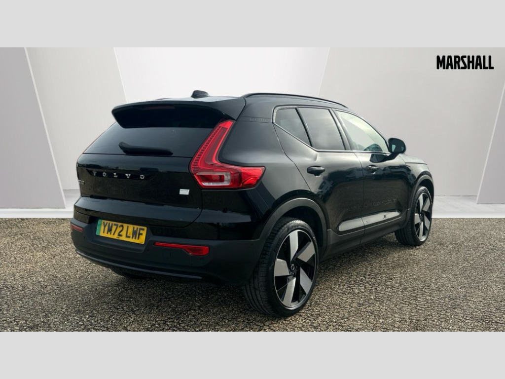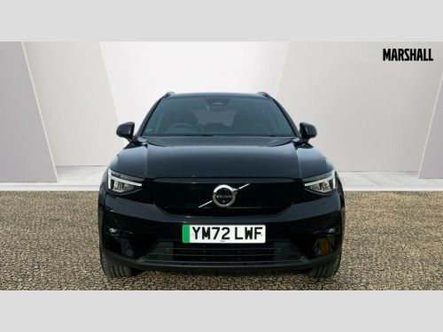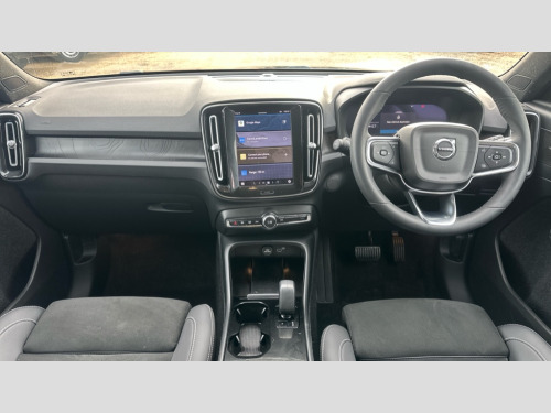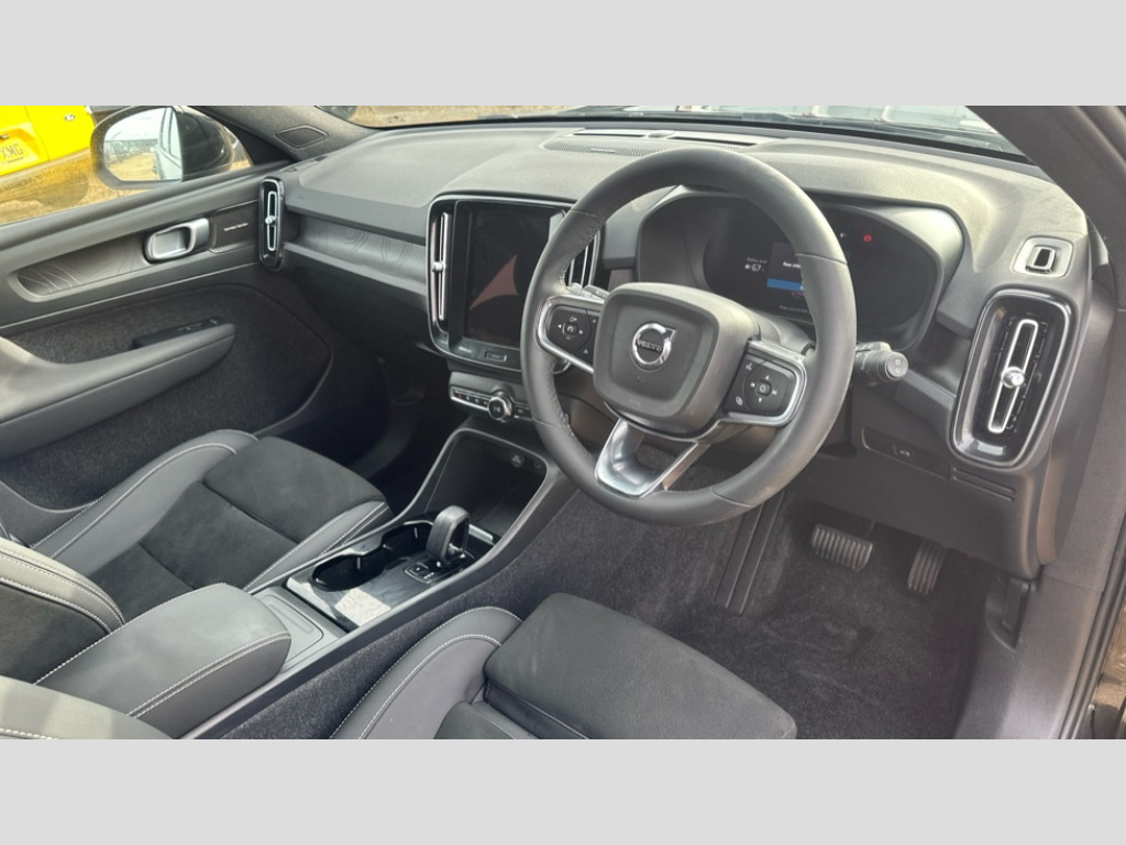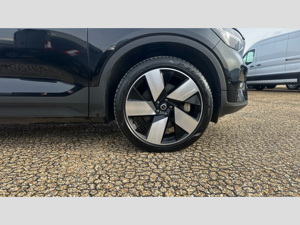 Volvo XC40 170kW Recharge Ultimate 69kWh 5dr Auto 12.3" Progressive Driver Display, 360 degree surround view parking camera with side proximity sensors, 9" centre console portrait touch screen, Adjustable steering wheel force, Bluetooth handsfree system, Driver assistance (pilot assist and adaptive cruise control), Driver awareness - Blind spot information system with steer assist, cross traffic alert with autobrake and rear collision warning and mitigation, Emergency services call system, Front park assist, Google automatic services - Nav with google maps, apple carplay/android auto, voice recognition with google assistant, Hands free power tailgate, Lane keep assist with driver alert control, Oncoming Lane Mitigation, Rear park assist, Speed limiter, Speed sensitive steering, Volvo cars services with app, Volvo on call with charge station locations and route planning and pre climatisation, Wireless Smartphone Integration includes Apple CarPlay and Android auto, Wireless/Inductive Mobile Phone Charging, 11 kW AC onboard charger, 7m 10amp charging cable with 3 pin plug and 4.5m 3 phase 32 amp type 2 / mode 3 charge cable, Charging port located in nearside rear wing, Electric front axle drive, Lithium-ion battery, Recharging port located in nearside rear wing, Touring chassis, DAB Digital radio, Low speed exterior sound speaker, Premium Sound by Harman Kardon, Dolby Pro Logic II Surround Sound, Dirac Unison,12 speakers/600W and subwoofer, Steering wheel remote infotainment controls, Adaptive brake lights with high level LED brake lights, Auto dimming exterior rear view mirror, Auto dimming interior mirror, Automatic headlamp levelling, Automatic LED Headlights + Active high beam incorporating daytime running lights, Colour co-ordinated front grille and surround, Dark tinted windows for rear door side windows and cargo compartment, Electric adjustable/heated/auto folding door mirrors, Front and rear electric windows, Front recharge tread plates, Headlight cleaning system, High gloss black front and rear skid plate, High gloss black lower front bumper, High gloss black window trim, Home safe and approach lighting, Integrated roof rails in high gloss black, LED front fog lamps, Power glass tilt and slide panoramic sunroof with sun curtain, Puddle lights, Rain sensor with automatic windscreen wiper activation, Rear side wing doors, Rear wiper, Recharge embossed rear side roof pillar, Roof antenna, Visible VIN plate, 12V socket in front tunnel console and luggage compartment, 2 zone electronic climate control and rear air vent with clean zone air quality system and pollen filter, 3 bench rear seats in 2nd row, 3 spoke sports tailored steering wheel, 60/40 versatile split folding rear seat, A-pillar parking ticket holder, Ambient front door and instrumental panel lighting, Centre console cupholders and storage, Charcoal headlining, Flexible load floor and grocery bag holder, Floor mats, Front door pocket and front cupholder illumination, Front footwell illumination, Front headrests, Front load compartment (31 litres), Front reading light and theatre lighting, Front seat cushion extensions, Front tunnel net pocket and integrated waste bin, Glovebox bag hook, Heat pump (Enhanced cabin heating and cooling efficiency with optimal vehicle range), Height/reach adjustable steering column, High gloss black centre tunnel and centre screen surround deco, Illuminated glovebox, Illuminated luggage compartment, Illuminated tailgate, Illuminated vanity mirrors + ticket holder, Load protection net, Multi directional lumbar support, Power driver seat with memory + exterior mirrors memory, Power folding rear headrests, Power passenger seat, Rear armrest with cupholder, Rear coat hook, Rear reading and courtesy lights, Single front passenger seat, Underfloor cargo storage, Climate pack - C40/XC40, 3x3 point rear seatbelts, City safety includes pedestrain and cyclist detection, front collision warning with full and rear auto brake, Drivers knee airbag, Dual stage driver/passenger airbags, Electronic parking brake with auto hold, First aid kit, Front and outer rear seatbelt reminder and pretensioners, Front seats SIPS airbags, Hill descent control, Hill start assist, Inflatable curtain, ISOFIX attachment (Front passenger and Rear outer seats), Passenger airbag cut-off device, Power child locks on rear doors, Road sign information display, Run off Road Mitigation, Run off Road Protection, SIPS (Side Impact Protection System), Slippery road and hazard light alert, Stability and traction control includes spin control and corner traction control, Tyre pressure monitoring system, Vehicle deceleration control with Anti-lock Brake System, Electronic Brake Distribution and Emergency Brake Assist, Warning triangle, WHIPS whiplash protection system - front, Anti-theft alarm including immobiliser/volume sensor + level sensor, Care key with user defined top speed, Convenient entry and start, Key integrated remote control central locking + fuel flap with deadlocking system and auto open/close power windows, Keyless drive plus handsfree tailgate opening/closing, Locking wheel nuts, Private locking for tailgate, Origin inlay, 20" 5 spoke diamond cut black alloy wheels, Tyre sealant kit + 12v compressor
