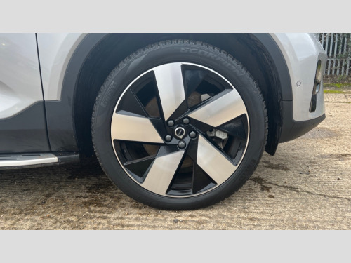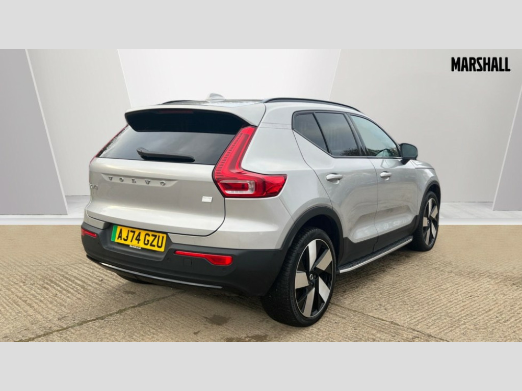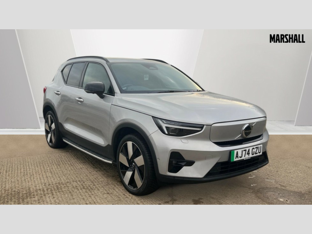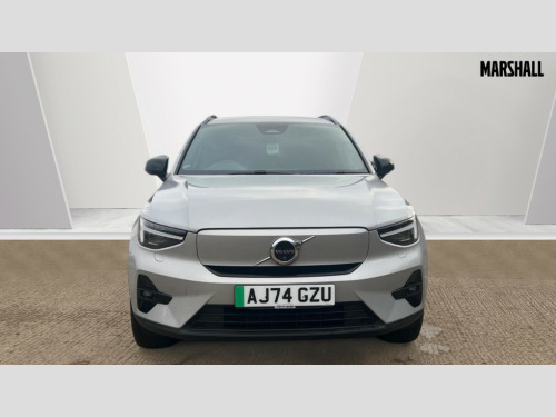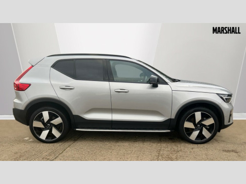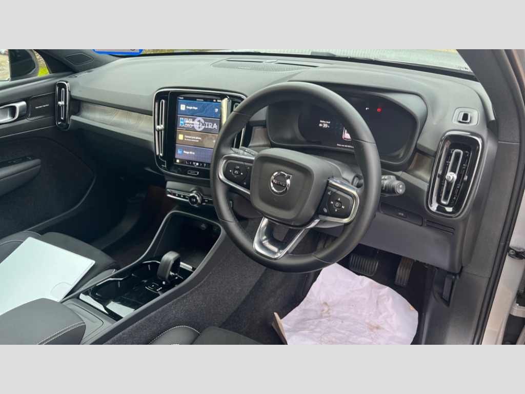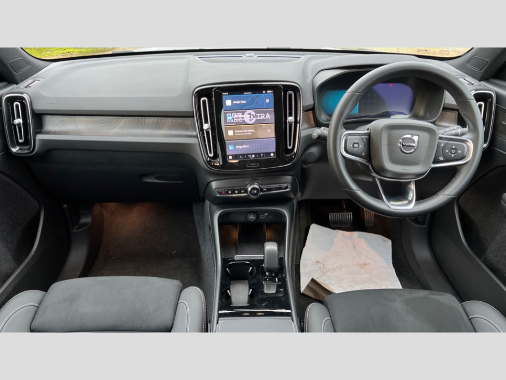 Volvo XC40 175kW Recharge Ultimate 69kWh 5dr Auto 12.3" Progressive Driver Display, 360 degree surround view parking camera with side proximity sensors, 9" centre console portrait touch screen, Adjustable steering wheel force, Bluetooth handsfree system, Driver alert control with lane keeping aid, Driver assistance (pilot assist and adaptive cruise control), Driver awareness - Blind spot information system with steer assist, cross traffic alert with autobrake and rear collision warning and mitigation, Emergency services call system, Front park assist, Google automatic services - Nav with google maps, apple carplay/android auto, voice recognition with google assistant, Hands free power tailgate, Intelligent speed assistance, Oncoming Lane Mitigation, Rear park assist, Speed sensitive steering, Volvo cars services with app, Volvo on call with charge station locations and route planning and pre climatisation, Wired Apple CarPlay, Wireless/Inductive Mobile Phone Charging, 3.7 kW monophase on board charger, 7m 10amp charging cable with 3 pin plug and 4.5m 3 phase 32 amp type 2 / mode 3 charge cable, Electric rear axle drive, Lithium-ion battery, Recharging port located in nearside rear wing, Touring chassis, DAB Digital radio, Low speed exterior sound speaker, Premium Sound by Harman Kardon, Dolby Pro Logic II Surround Sound, Dirac Unison,12 speakers/600W and subwoofer, Steering wheel remote infotainment controls, Active bending pixel LED headlights with adaptive shadow technology, Adaptive brake lights with high level LED brake lights, Auto dimming exterior rear view mirror, Auto dimming interior mirror, Automatic headlamp levelling, Black stone boot spoiler, Black stone door mirrors, Colour co-ordinated front grille and surround, Dark tinted windows for rear door side windows and cargo compartment, Electric adjustable/heated/auto folding door mirrors, Front and rear electric windows, Front recharge tread plates, Headlight cleaning system, High gloss black front and rear skid plate, High gloss black lower front bumper, High gloss black window trim, Home safe and approach lighting, Integrated roof rails in high gloss black, LED daytime running lights, LED front fog lamps with cornering function, Power glass tilt and slide panoramic sunroof with sun curtain, Puddle lights, Rain sensor with automatic windscreen wiper activation, Rear side wing doors, Rear wiper, Recharge embossed rear side roof pillar, Roof antenna, Visible VIN plate, 12V socket in front tunnel console, 2 zone electronic climate control and rear air vent with clean zone air quality system and pollen filter, 3 bench rear seats in 2nd row, 3 spoke sports tailored steering wheel, 60/40 versatile split folding rear seat, A-pillar parking ticket holder, Centre console cupholders and storage, Charcoal headlining, Charcoal lower dashboard, upper tunnel console and armrest, Flexible load floor and grocery bag holder, Floor mats, Front door pocket, front cupholder, ambient front door, rear reading, rear courtesy, instrument panel and tailgate lighting, Front footwell illumination, Front headrests, Front load compartment (31 litres), Front reading light and theatre lighting, Front seat cushion extensions, Front tunnel net pocket and integrated waste bin, Glovebox bag hook, Heat pump (Enhanced cabin heating and cooling efficiency with optimal vehicle range), Heated front seats, Height/reach adjustable steering column, High gloss black centre tunnel and centre screen surround deco, Illuminated glovebox, Illuminated luggage compartment, Illuminated vanity mirrors + ticket holder, Load protection net, Multi directional lumbar support, One pedal drive mode, Power driver seat with memory + exterior mirrors memory, Power folding rear headrests, Power passenger seat, Rear armrest with cupholder, Rear coat hook, Single front passenger seat, Underfloor cargo storage, Climate pack - C40/XC40, 3x3 point rear seatbelts, City safety includes pedestrain and cyclist detection, front collision warning with full and rear auto brake, Drivers knee airbag, Dual stage driver/passenger airbags, Electronic parking brake with auto hold, First aid kit, Front and outer rear seatbelt reminder and pretensioners, Front seats SIPS airbags, Hill descent control, Hill start assist, IC (Inflatable Curtains) - Full Length, ISOFIX attachment (Front passenger and Rear outer seats), Passenger airbag cut-off device, Power child locks on rear doors, Road sign information display, Run off Road Mitigation, Run off Road Protection, SIPS (Side Impact Protection System), Slippery road and hazard light alert, Stability and traction control includes spin control and corner traction control, Tyre pressure monitoring system, Vehicle deceleration control with Anti-lock Brake System, Electronic Brake Distribution and Emergency Brake Assist, Warning triangle, WHIPS whiplash protection system - front, 2 x Key integrated remote control central locking including recharging port with deadlocking system and auto open/close power windows and sunroof, Anti-theft alarm including immobiliser/volume sensor + level sensor, Care key with user defined top speed, Convenient entry and start, Keyless drive with keyless entry and keyless start, Locking wheel nuts, Private locking for tailgate, Remote door locking and unlocking, 20" 5 spoke diamond cut black alloy wheels, All season tyres, Tyre sealant kit + 12v compressor