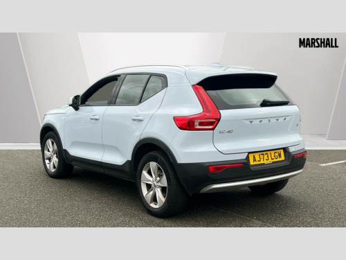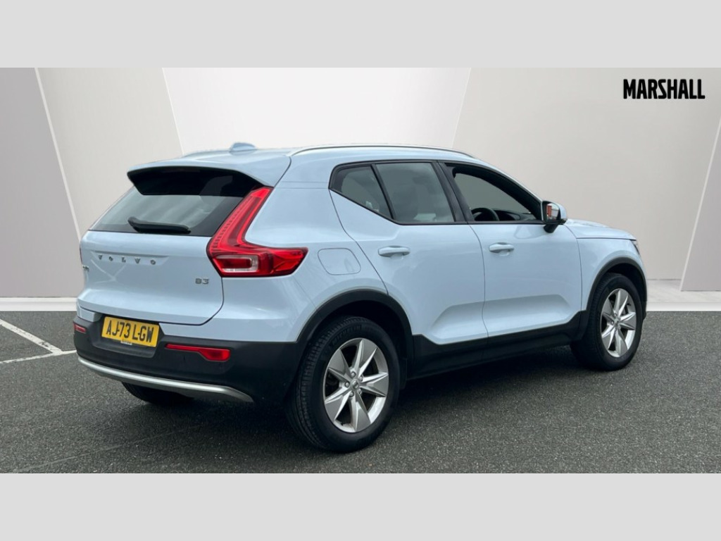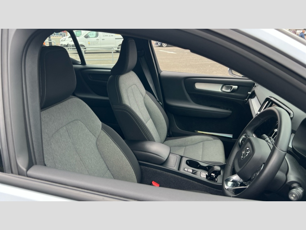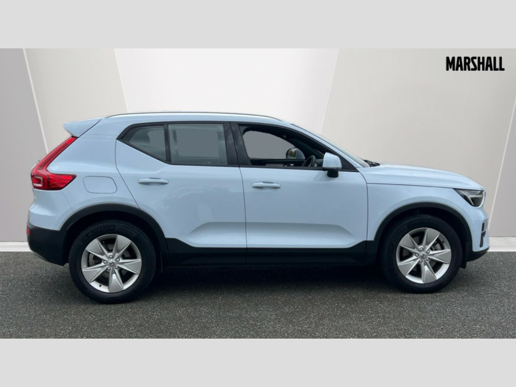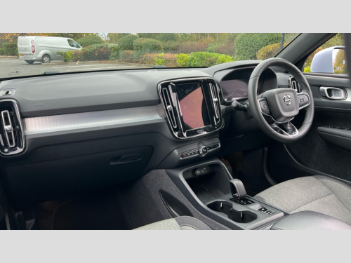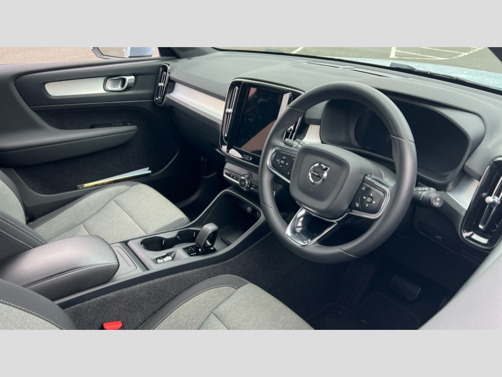 Volvo XC40 2.0 B3P Core 5dr Auto 12.3" Progressive Driver Display, 9" centre console portrait touch screen, Adjustable steering wheel force, Bluetooth hands free telephone kit, Cruise control, E-call, Google automatic services - Nav with google maps, apple carplay/android auto, voice recognition with google assistant, Intelligent speed assistance, Lane keep assist with driver alert control, Oncoming Lane Mitigation, Power operated tailgate, Rear park assist, Rear park assist camera, Speed sensitive steering, Wireless/Inductive Mobile Phone Charging, Dynamic chassis, DAB Digital radio, High performance sound, 8 speakers/250W, front USB and 2 rear type C USB, Steering wheel mounted remote controls, Adaptive brake lights with high level LED brake lights, Auto dimming interior mirror, Automatic headlamp levelling, Automatic LED Headlights + Active high beam incorporating daytime running lights, Colour coordinated auto folding and heated power door mirrors, Dark grey front grille with chrome surround, Front and rear electric windows, High Gloss silver front and rear skid plate, Home safe and approach lighting, Integrated roof rails in silver, Rain sensor with automatic windscreen wiper activation, Rear side wing doors, Rear wiper, Roof antenna, Roof spoiler, Visible VIN plate, 12V socket in front tunnel console and luggage compartment, 2-Zone electronic climate control with CleanZone air quality system and pollen filter, 3 seat bench in 2nd row, 3 Spoke tailored steering wheel with chrome trim, 60/40 versatile split folding rear seat, A-pillar parking ticket holder, Centre console cupholders and storage, Charcoal headlining, City block textile upholstery, Floor mats, Front footwell illumination, Front headrests, Front reading light and theatre lighting, Front tunnel pocket, Glovebox bag hook, Heated front seats, Height adjustable passenger seat, Height/reach adjustable steering column, Height/tilt adjustable driver's seat, High gloss black centre screen surround deco, Illuminated glovebox, Illuminated luggage compartment, Illuminated vanity mirrors, Integrated waste bin, Isofix attachments on outer rear seats, Leather gearknob, Load protection net, Multi directional lumbar support, Rear armrest / integral cup holders / storage tray, Rear headrests, Single front passenger seat, Sports steering wheel, Underfloor cargo storage, 3x3 point rear seatbelts, City safety with steering support with Pedestrian + cyclist + front collision warning with full auto brake and rear auto brake, Drivers knee airbag, Dual stage driver/passenger airbags, Electronic parking brake with auto hold, First aid kit, Front and outer rear seatbelt reminder and pretensioners, Front seats SIPS airbags, Hill descent control, Hill start assist, Inflatable curtain, Passenger airbag cut-off device, Power child locks on rear doors, Road sign information display, Run off Road Mitigation, Run off Road Protection, SIPS (Side Impact Protection System), Slippery road and hazard light alert, Stability and Traction Control with Spin control, Engine Drag Control and Corner Traction Control, Tyre pressure monitoring system, Vehicle deceleration control with Anti-lock Brake System, Electronic Brake Distribution and Emergency Brake Assist, Warning triangle, WHIPS whiplash protection system - front, Anti-theft alarm including immobiliser/volume sensor + level sensor, Key integrated remote control central locking + fuel flap with deadlocking system and auto open/close power windows, Keyless Start, Locking wheel nuts