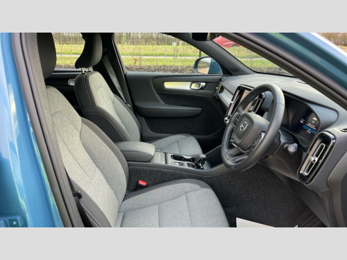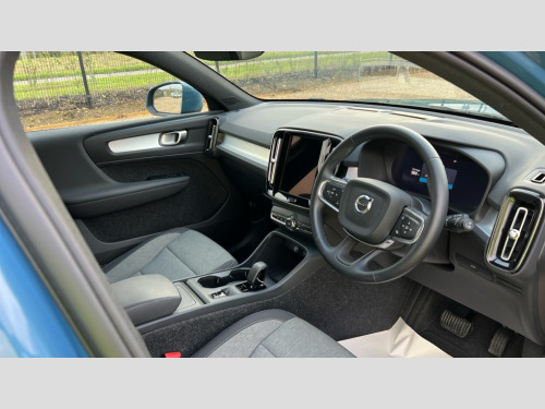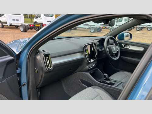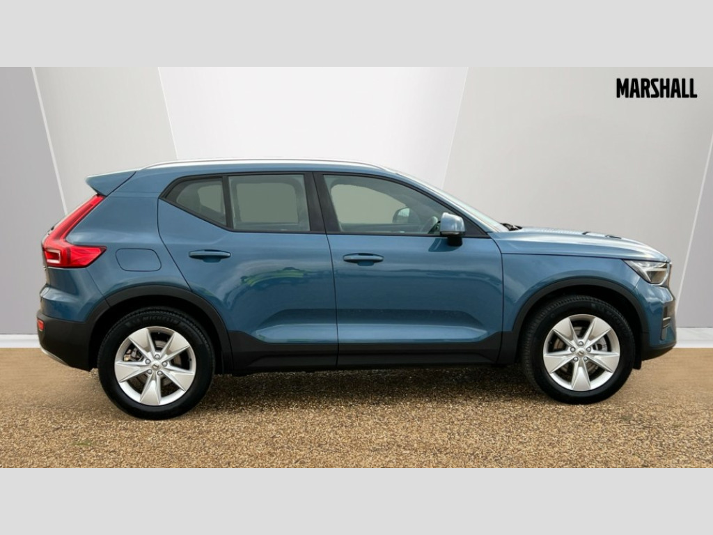 Volvo XC40 2.0 B3P Core 5dr Auto 12.3" Progressive Driver Display, 9" centre console portrait touch screen, Adaptive cruise control, Adjustable steering wheel force, Android auto (Wired), Apple carplay (wired), Bluetooth handsfree system, Driver alert control, E-call, Front park assist, Google automotive services - Enabled entertainment apps, navigation with google maps, voice recognition with google assistant, Intelligent speed assistance, Lane keeping aid, Oncoming Lane Mitigation, Power operated tailgate, Rear park assist, Speed sensitive steering, Volvo cars services with app - Driving journal, emergency and breakdown call, engine remote start, remote door locking/unlocking and vehicle dashboard, Wireless/Inductive Mobile Phone Charging, Automatic transmission with start/stop and manual change functions, Dynamic chassis, DAB Digital radio, High performance sound, 8 speakers/250W, 2 front type C and 2 rear type C USB, Steering wheel mounted remote controls, Adaptive brake lights with high level LED brake lights, Auto dimming interior mirror, Automatic headlamp levelling, Automatic LED Headlights + Active high beam incorporating daytime running lights, Colour coordinated auto folding and heated power door mirrors, Dark grey front grille with chrome surround, Front and rear electric windows, High Gloss silver front and rear skid plate, Home safe and approach lighting, Integrated roof rails in silver, Rain sensor with automatic windscreen wiper activation, Rear side wing doors, Rear wiper, Roof antenna, Roof spoiler, Visible VIN plate, 12V socket in front tunnel console and luggage compartment, 2-Zone electronic climate control with CleanZone air quality system and pollen filter, 3 seat bench in 2nd row, 3 Spoke tailored steering wheel with chrome trim, 60/40 versatile split folding rear seat, Centre console cupholders and storage, Charcoal headlining, City block textile upholstery, Floor mats, Front cabin courtesy lights, Front footwell illumination, Front headrests, Front reading lights, Glovebox bag hook, Heated front seats, Height adjustable passenger seat, Height/reach adjustable steering column, Height/tilt adjustable driver's seat, Illuminated glovebox, Illuminated luggage compartment, Illuminated vanity mirrors + ticket holder, Integrated waste bin, Isofix attachments on outer rear seats, Load cover, Load protection net, Multi directional lumbar support for driver and passenger seat, Rear armrest with cupholders, Rear headrests, Single front passenger seat, Underfloor cargo storage, 3x3 point rear seatbelts, City safety with steering support with Pedestrian + cyclist + front collision warning with full auto brake and rear auto brake, Driver and passenger airbags, Drivers knee airbag, Electronic parking brake with auto hold, First aid kit, Front and outer rear seatbelt reminder and pretensioners, Front seats SIPS airbags, Hill descent control, Hill start assist, Inflatable curtain, Passenger airbag cut-off device, Power child locks on rear doors, Road sign information display, Run off Road Protection, SIPS (Side Impact Protection System), Slippery road and hazard light alert, Stability and Traction Control with Spin control, Engine Drag Control and Corner Traction Control, Tyre pressure monitoring system, Vehicle deceleration control with Anti-lock Brake System, Electronic Brake Distribution and Emergency Brake Assist, Warning triangle, WHIPS whiplash protection system - front, 2 x Key integrated remote control central locking including with deadlocking system and auto open/close windows, Anti-theft alarm including immobiliser/volume sensor + level sensor, Keyless Start, Locking wheel nuts
