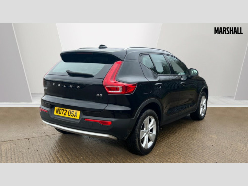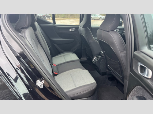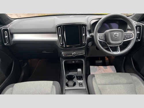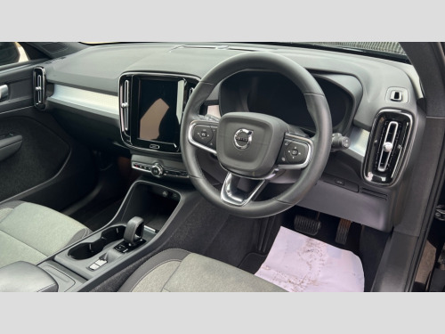 Volvo XC40 2.0 B3P Core 5dr Auto 12.3" Progressive Driver Display, 9" centre console portrait touch screen, Adjustable steering wheel force, Bluetooth hands free telephone kit, Cruise control, E-call, Google automatic services - Nav with google maps, apple carplay/android auto, voice recognition with google assistant, Lane keep assist with driver alert control, Oncoming Lane Mitigation, Power operated tailgate, Rear park assist, Speed limiter, Speed sensitive steering, Wireless/Inductive Mobile Phone Charging, Dynamic chassis, DAB Digital radio, High performance sound, 8 speakers/250W, front USB and 2 rear type C USB, Steering wheel mounted remote controls, Adaptive brake lights with high level LED brake lights, Auto dimming interior mirror, Automatic headlamp levelling, Automatic LED Headlights + Active high beam incorporating daytime running lights, Colour coordinated auto folding and heated power door mirrors, Dark grey front grille with chrome surround, Front and rear electric windows, High Gloss silver front and rear skid plate, Home safe and approach lighting, Integrated roof rails in silver, Rain sensor with automatic windscreen wiper activation, Rear side wing doors, Rear wiper, Roof antenna, Roof spoiler, Visible VIN plate, 12V socket in front tunnel console and luggage compartment, 2-Zone electronic climate control with CleanZone air quality system and pollen filter, 3 seat bench in 2nd row, 3 Spoke tailored steering wheel with chrome trim, 60/40 versatile split folding rear seat, A-pillar parking ticket holder, Centre console cupholders and storage, Charcoal headlining, City block textile upholstery, Floor mats, Front footwell illumination, Front headrests, Front reading light and theatre lighting, Front tunnel pocket, Glovebox bag hook, Heated front seats, Height adjustable passenger seat, Height/reach adjustable steering column, Height/tilt adjustable driver's seat, High gloss black centre screen surround deco, Illuminated glovebox, Illuminated luggage compartment, Illuminated vanity mirrors, Integrated waste bin, Isofix attachments on outer rear seats, Leather gearknob, Load protection net, Multi directional lumbar support, Rear armrest / integral cup holders / storage tray, Rear headrests, Single front passenger seat, Sports steering wheel, Underfloor cargo storage, 3x3 point rear seatbelts, City safety with steering support with Pedestrian + cyclist + front collision warning with full auto brake and rear auto brake, Drivers knee airbag, Dual stage driver/passenger airbags, Electronic parking brake with auto hold, First aid kit, Front and outer rear seatbelt reminder and pretensioners, Front seats SIPS airbags, Hill descent control, Hill start assist, Inflatable curtain, Passenger airbag cut-off device, Power child locks on rear doors, Road sign information display, Run off Road Mitigation, Run off Road Protection, SIPS (Side Impact Protection System), Slippery road and hazard light alert, Stability and Traction Control with Spin control, Engine Drag Control and Corner Traction Control, Tyre pressure monitoring system, Vehicle deceleration control with Anti-lock Brake System, Electronic Brake Distribution and Emergency Brake Assist, Warning triangle, WHIPS whiplash protection system - front, Anti-theft alarm including immobiliser/volume sensor + level sensor, Key integrated remote control central locking + fuel flap with deadlocking system and auto open/close power windows, Keyless start, Locking wheel nuts