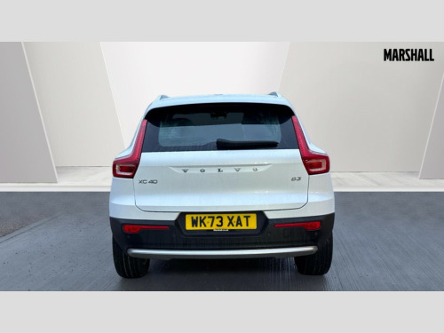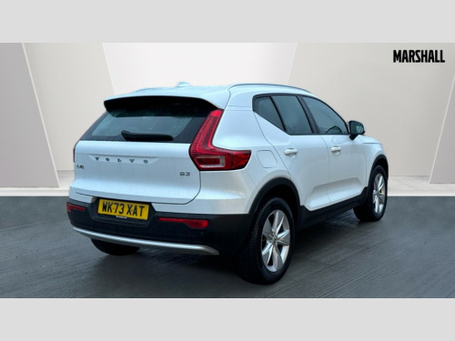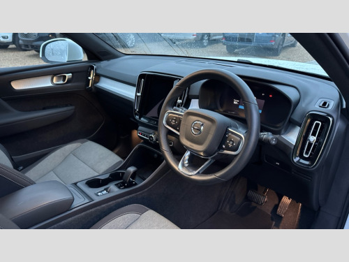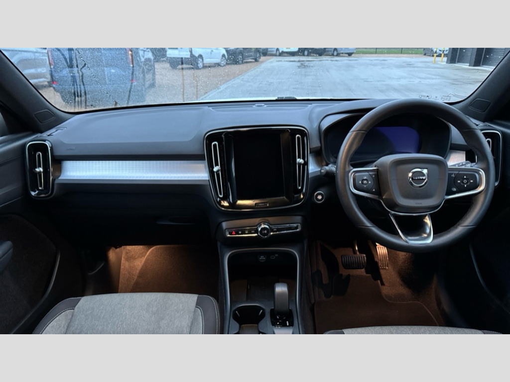 Volvo XC40 2.0 B3P Core 5dr Auto 12.3" Progressive Driver Display, 9" centre console portrait touch screen, Adjustable steering wheel force, Bluetooth hands free telephone kit, Cruise control, E-call, Google automatic services - Nav with google maps, apple carplay/android auto, voice recognition with google assistant, Lane keep assist with driver alert control, Oncoming Lane Mitigation, Power operated tailgate, Rear park assist, Speed limiter, Speed sensitive steering, Wireless/Inductive Mobile Phone Charging, Dynamic chassis, DAB Digital radio, High performance sound, 8 speakers/250W, front USB and 2 rear type C USB, Steering wheel mounted remote controls, Adaptive brake lights with high level LED brake lights, Auto dimming interior mirror, Automatic headlamp levelling, Automatic LED Headlights + Active high beam incorporating daytime running lights, Colour coordinated auto folding and heated power door mirrors, Dark grey front grille with chrome surround, Front and rear electric windows, High Gloss silver front and rear skid plate, Home safe and approach lighting, Integrated roof rails in silver, Rain sensor with automatic windscreen wiper activation, Rear side wing doors, Rear wiper, Roof antenna, Roof spoiler, Visible VIN plate, 12V socket in front tunnel console and luggage compartment, 2-Zone electronic climate control with CleanZone air quality system and pollen filter, 3 seat bench in 2nd row, 3 Spoke tailored steering wheel with chrome trim, 60/40 versatile split folding rear seat, A-pillar parking ticket holder, Centre console cupholders and storage, Charcoal headlining, City block textile upholstery, Floor mats, Front footwell illumination, Front headrests, Front reading light and theatre lighting, Front tunnel pocket, Glovebox bag hook, Heated front seats, Height adjustable passenger seat, Height/reach adjustable steering column, Height/tilt adjustable driver's seat, High gloss black centre screen surround deco, Illuminated glovebox, Illuminated luggage compartment, Illuminated vanity mirrors, Integrated waste bin, Isofix attachments on outer rear seats, Leather gearknob, Load protection net, Multi directional lumbar support, Rear armrest / integral cup holders / storage tray, Rear headrests, Single front passenger seat, Sports steering wheel, Underfloor cargo storage, 3x3 point rear seatbelts, City safety with steering support with Pedestrian + cyclist + front collision warning with full auto brake and rear auto brake, Drivers knee airbag, Dual stage driver/passenger airbags, Electronic parking brake with auto hold, First aid kit, Front and outer rear seatbelt reminder and pretensioners, Front seats SIPS airbags, Hill descent control, Hill start assist, Inflatable curtain, Passenger airbag cut-off device, Power child locks on rear doors, Road sign information display, Run off Road Mitigation, Run off Road Protection, SIPS (Side Impact Protection System), Slippery road and hazard light alert, Stability and Traction Control with Spin control, Engine Drag Control and Corner Traction Control, Tyre pressure monitoring system, Vehicle deceleration control with Anti-lock Brake System, Electronic Brake Distribution and Emergency Brake Assist, Warning triangle, WHIPS whiplash protection system - front, Anti-theft alarm including immobiliser/volume sensor + level sensor, Key integrated remote control central locking + fuel flap with deadlocking system and auto open/close power windows, Keyless start, Locking wheel nuts