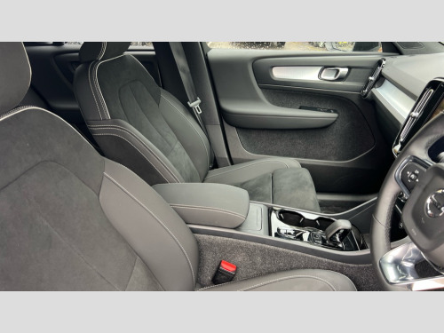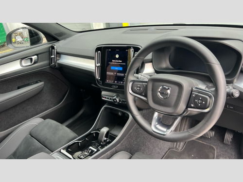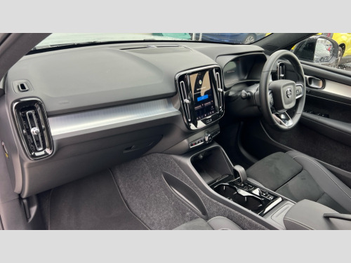 Volvo XC40 2.0 B3P Plus Black Edition 5dr Auto 12.3" Progressive Driver Display, 9" centre console portrait touch screen, Adjustable steering wheel force, Android auto (Wired), Apple carplay (wired), Bluetooth handsfree system, Driver alert control, Driver assistance (pilot assist and adaptive cruise control), Driver awareness - Blind spot information system with steer assist, cross traffic alert with autobrake and rear collision warning and mitigation, E-call, Front and rear parking sensors, Front park assist, Google automotive services - Enabled entertainment apps, navigation with google maps, voice recognition with google assistant, Hands free power tailgate, Intelligent speed assistance, Lane keeping aid, Oncoming Lane Mitigation, Speed sensitive steering, Volvo cars services with app - Driving journal, emergency and breakdown call, engine remote start, remote door locking/unlocking and vehicle dashboard, Wireless/Inductive Mobile Phone Charging, Automatic transmission with start/stop and manual change functions, Dynamic chassis, DAB Digital radio, Steering wheel mounted remote controls, Adaptive brake lights with high level LED brake lights, Auto dimming feature for exterior door mirrors, Auto dimming interior mirror, Auto folding and heated power door mirrors, Automatic headlamp levelling, Automatic LED Headlights + Active high beam incorporating daytime running lights, Dark tinted windows - rear side windows and rear screen, Front aluminium tread plates, Front and rear electric windows, High gloss black front and rear skid plate, High gloss black front bumper deco, High gloss black front grille strikethrough and ironmark, High gloss black rear model, engine and volvo logo badges, High gloss black window trim, Home safe and approach lighting, Integrated roof rails in high gloss black, LED front fog lights, Puddle lights, Rain sensor with automatic windscreen wiper activation, Rear side wing doors, Rear wiper, Roof antenna, Roof spoiler, Visible VIN plate, 12V socket in front tunnel console and luggage compartment, 2-Zone electronic climate control with CleanZone air quality system and pollen filter, 3 seat bench in 2nd row, 3 Spoke tailored steering wheel with chrome trim, 60/40 versatile split folding rear seat, Centre console cupholders and storage, Charcoal carpet and floor mats, Charcoal headlining, Connect suede textile/microtech upholstery, Flexible load floor and grocery bag holder, Front headrests, Front seat cushion extensions, Glovebox bag hook, Heated front seats, Height adjustable passenger seat, Height/reach adjustable steering column, High gloss centre tunnel deco, High level illumination - Front door pocket, front side step (under door), tailgate, instrument panel, front door inlay, rear courtesy&reading lights, Integrated waste bin, Isofix attachments on outer rear seats, Load cover, Load protection net, Mid level illumination - Front footwell, luggage & glovebox compartment,front cabin courtesy & reading lights,illuminated vanity mirrors+ticket holder, Multi directional lumbar support for driver and passenger seat, Power driver seat with memory + exterior mirrors memory, Rear armrest with cupholders, Rear headrests, Single front passenger seat, Underfloor luggage compartment storage, Climate pack without heated front seats - XC40, 3x3 point rear seatbelts, City safety with steering support with Pedestrian + cyclist + front collision warning with full auto brake and rear auto brake, Driver and passenger airbags, Drivers knee airbag, Electronic parking brake with auto hold, First aid kit, Front and outer rear seatbelt reminder and pretensioners, Front seats SIPS airbags, Hill descent control - Off-road drive mode, Hill start assist, IC (Inflatable Curtains) - Full Length, Passenger airbag cut-off device, Power child locks on rear doors, Road sign information display, Run off Road Protection, SIPS (Side Impact Protection System), Slippery road and hazard light alert, Stability and Traction Control with Spin control, Engine Drag Control and Corner Traction Control, Tyre pressure monitoring system, Vehicle deceleration control with Anti-lock Brake System, Electronic Brake Distribution and Emergency Brake Assist, Warning triangle, WHIPS whiplash protection system - front, 2 x Key integrated remote control central locking including with deadlocking system and auto open/close windows, Anti-theft alarm including immobiliser/volume sensor + level sensor, Keyless drive includes keyless entry and keyless start, Locking wheel nuts, 20" 5 spoke high gloss black alloy wheels