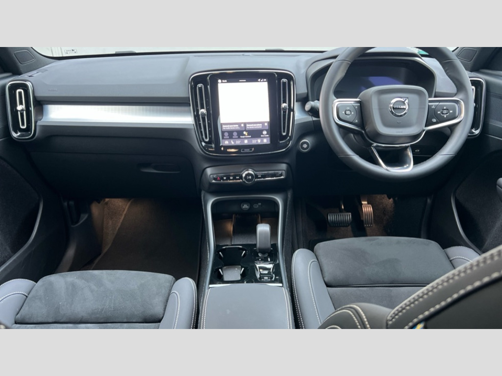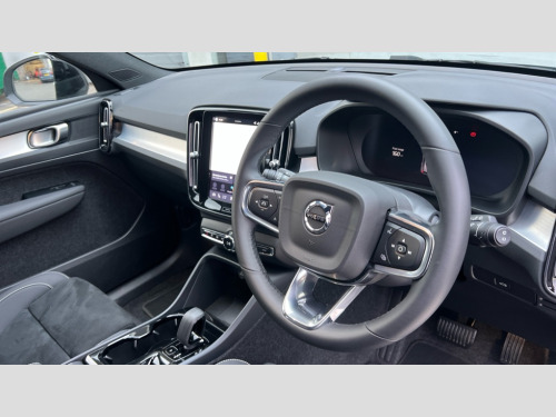 Volvo XC40 2.0 B3P Plus Black Edition 5dr Auto 12.3" Progressive Driver Display, 9" centre console portrait touch screen, Adjustable steering wheel force, Android auto (Wired), Apple carplay (wired), Bluetooth handsfree system, Driver alert control, Driver assistance (pilot assist and adaptive cruise control), Driver awareness - Blind spot information system with steer assist, cross traffic alert with autobrake and rear collision warning and mitigation, E-call, Front and rear parking sensors, Front park assist, Google automotive services - Enabled entertainment apps, navigation with google maps, voice recognition with google assistant, Hands free power tailgate, Intelligent speed assistance, Lane keeping aid, Oncoming Lane Mitigation, Speed sensitive steering, Volvo cars services with app - Driving journal, emergency and breakdown call, engine remote start, remote door locking/unlocking and vehicle dashboard, Wireless/Inductive Mobile Phone Charging, Automatic transmission with start/stop and manual change functions, Dynamic chassis, DAB Digital radio, Steering wheel mounted remote controls, Adaptive brake lights with high level LED brake lights, Auto dimming feature for exterior door mirrors, Auto dimming interior mirror, Auto folding and heated power door mirrors, Automatic headlamp levelling, Automatic LED Headlights + Active high beam incorporating daytime running lights, Dark tinted windows - rear side windows and rear screen, Front aluminium tread plates, Front and rear electric windows, High gloss black front and rear skid plate, High gloss black front bumper deco, High gloss black front grille strikethrough and ironmark, High gloss black rear model, engine and volvo logo badges, High gloss black window trim, Home safe and approach lighting, Integrated roof rails in high gloss black, LED front fog lights, Puddle lights, Rain sensor with automatic windscreen wiper activation, Rear side wing doors, Rear wiper, Roof antenna, Roof spoiler, Visible VIN plate, 12V socket in front tunnel console and luggage compartment, 2-Zone electronic climate control with CleanZone air quality system and pollen filter, 3 seat bench in 2nd row, 3 Spoke tailored steering wheel with chrome trim, 60/40 versatile split folding rear seat, Centre console cupholders and storage, Charcoal carpet and floor mats, Charcoal headlining, Connect suede textile/microtech upholstery, Flexible load floor and grocery bag holder, Front headrests, Front seat cushion extensions, Glovebox bag hook, Heated front seats, Height adjustable passenger seat, Height/reach adjustable steering column, High gloss centre tunnel deco, High level illumination - Front door pocket, front side step (under door), tailgate, instrument panel, front door inlay, rear courtesy&reading lights, Integrated waste bin, Isofix attachments on outer rear seats, Load cover, Load protection net, Mid level illumination - Front footwell, luggage & glovebox compartment,front cabin courtesy & reading lights,illuminated vanity mirrors+ticket holder, Multi directional lumbar support for driver and passenger seat, Power driver seat with memory + exterior mirrors memory, Rear armrest with cupholders, Rear headrests, Single front passenger seat, Underfloor luggage compartment storage, Climate pack without heated front seats - XC40, 3x3 point rear seatbelts, City safety with steering support with Pedestrian + cyclist + front collision warning with full auto brake and rear auto brake, Driver and passenger airbags, Drivers knee airbag, Electronic parking brake with auto hold, First aid kit, Front and outer rear seatbelt reminder and pretensioners, Front seats SIPS airbags, Hill descent control - Off-road drive mode, Hill start assist, IC (Inflatable Curtains) - Full Length, Passenger airbag cut-off device, Power child locks on rear doors, Road sign information display, Run off Road Protection, SIPS (Side Impact Protection System), Slippery road and hazard light alert, Stability and Traction Control with Spin control, Engine Drag Control and Corner Traction Control, Tyre pressure monitoring system, Vehicle deceleration control with Anti-lock Brake System, Electronic Brake Distribution and Emergency Brake Assist, Warning triangle, WHIPS whiplash protection system - front, 2 x Key integrated remote control central locking including with deadlocking system and auto open/close windows, Anti-theft alarm including immobiliser/volume sensor + level sensor, Keyless drive includes keyless entry and keyless start, Locking wheel nuts, 20" 5 spoke high gloss black alloy wheels