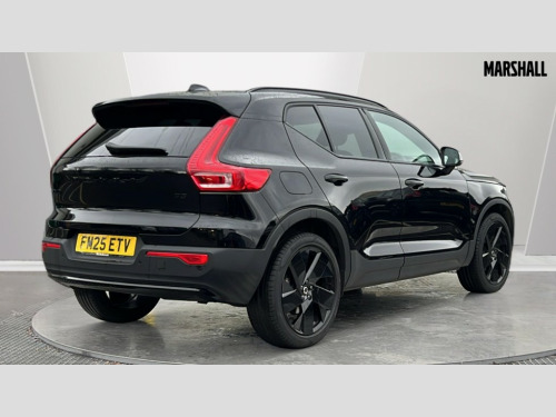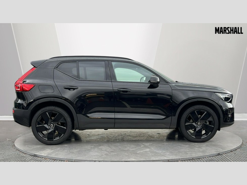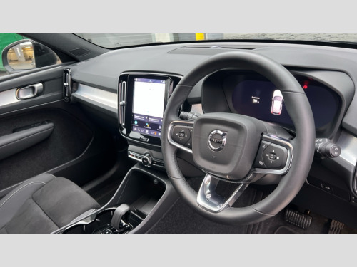 Volvo XC40 2.0 B3P Plus Black Edition 5dr Auto 12.3" Progressive Driver Display, 9" centre console portrait touch screen, Adjustable steering wheel force, Android auto (Wired), Apple carplay (wired), Bluetooth handsfree system, Driver alert control, Driver assistance (pilot assist and adaptive cruise control), Driver awareness - Blind spot information system with steer assist, cross traffic alert with autobrake and rear collision warning and mitigation, E-call, Front and rear parking sensors, Front park assist, Google automotive services - Enabled entertainment apps, navigation with google maps, voice recognition with google assistant, Hands free power tailgate, Intelligent speed assistance, Lane keeping aid, Oncoming Lane Mitigation, Speed sensitive steering, Volvo cars services with app - Driving journal, emergency and breakdown call, engine remote start, remote door locking/unlocking and vehicle dashboard, Wireless/Inductive Mobile Phone Charging, Automatic transmission with start/stop and manual change functions, Dynamic chassis, DAB Digital radio, Steering wheel mounted remote controls, Adaptive brake lights with high level LED brake lights, Auto dimming feature for exterior door mirrors, Auto dimming interior mirror, Auto folding and heated power door mirrors, Automatic headlamp levelling, Automatic LED Headlights + Active high beam incorporating daytime running lights, Dark tinted windows - rear side windows and rear screen, Front aluminium tread plates, Front and rear electric windows, High gloss black front and rear skid plate, High gloss black front bumper deco, High gloss black front grille strikethrough and ironmark, High gloss black rear model, engine and volvo logo badges, High gloss black window trim, Home safe and approach lighting, Integrated roof rails in high gloss black, LED front fog lights, Puddle lights, Rain sensor with automatic windscreen wiper activation, Rear side wing doors, Rear wiper, Roof antenna, Roof spoiler, Visible VIN plate, 12V socket in front tunnel console and luggage compartment, 2-Zone electronic climate control with CleanZone air quality system and pollen filter, 3 seat bench in 2nd row, 3 Spoke tailored steering wheel with chrome trim, 60/40 versatile split folding rear seat, Centre console cupholders and storage, Charcoal carpet and floor mats, Charcoal headlining, Connect suede textile/microtech upholstery, Flexible load floor and grocery bag holder, Front headrests, Front seat cushion extensions, Glovebox bag hook, Heated front seats, Height adjustable passenger seat, Height/reach adjustable steering column, High gloss centre tunnel deco, High level illumination - Front door pocket, front side step (under door), tailgate, instrument panel, front door inlay, rear courtesy&reading lights, Integrated waste bin, Isofix attachments on outer rear seats, Load cover, Load protection net, Mid level illumination - Front footwell, luggage & glovebox compartment,front cabin courtesy & reading lights,illuminated vanity mirrors+ticket holder, Multi directional lumbar support for driver and passenger seat, Power driver seat with memory + exterior mirrors memory, Rear armrest with cupholders, Rear headrests, Single front passenger seat, Underfloor luggage compartment storage, Climate pack without heated front seats - XC40, 3x3 point rear seatbelts, City safety with steering support with Pedestrian + cyclist + front collision warning with full auto brake and rear auto brake, Driver and passenger airbags, Drivers knee airbag, Electronic parking brake with auto hold, First aid kit, Front and outer rear seatbelt reminder and pretensioners, Front seats SIPS airbags, Hill descent control - Off-road drive mode, Hill start assist, IC (Inflatable Curtains) - Full Length, Passenger airbag cut-off device, Power child locks on rear doors, Road sign information display, Run off Road Protection, SIPS (Side Impact Protection System), Slippery road and hazard light alert, Stability and Traction Control with Spin control, Engine Drag Control and Corner Traction Control, Tyre pressure monitoring system, Vehicle deceleration control with Anti-lock Brake System, Electronic Brake Distribution and Emergency Brake Assist, Warning triangle, WHIPS whiplash protection system - front, 2 x Key integrated remote control central locking including with deadlocking system and auto open/close windows, Anti-theft alarm including immobiliser/volume sensor + level sensor, Keyless drive includes keyless entry and keyless start, Locking wheel nuts, 20" 5 spoke high gloss black alloy wheels