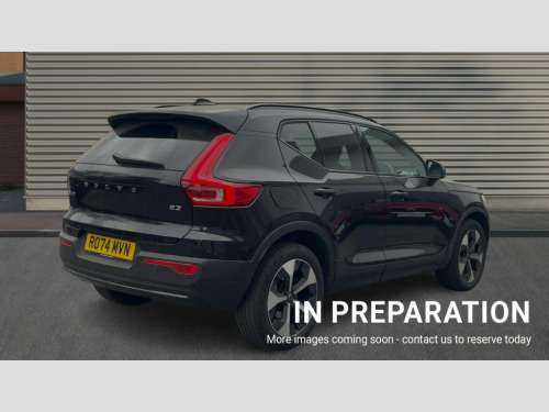 Volvo XC40 2.0 B3P Plus Dark 5dr Auto 12.3" Progressive Driver Display, 9" centre console portrait touch screen, Adjustable steering wheel force, Apple carplay (wired), Bluetooth handsfree system, Cruise control, Driver alert control, Driver awareness - Blind spot information system with steer assist, cross traffic alert with autobrake and rear collision warning and mitigation, E-call, Front park assist, Google automotive services - Enabled entertainment apps, navigation with google maps, voice recognition with google assistant, Hands free power tailgate, Intelligent speed assistance, Lane keeping aid, Oncoming Lane Mitigation, Rear park assist, Rear park assist camera, Speed sensitive steering, Volvo cars services with app - Driving journal, emergency and breakdown call, engine remote start, remote door locking/unlocking and vehicle dashboard, Wireless/Inductive Mobile Phone Charging, Automatic transmission with start/stop and manual change functions, Dynamic chassis, DAB Digital radio, High performance sound, 8 speakers/250W, 2 front type C and 2 rear type C USB, Steering wheel mounted remote controls, Adaptive brake lights with high level LED brake lights, Auto dimming feature for exterior door mirrors, Auto dimming interior mirror, Automatic headlamp levelling, Automatic LED Headlights + Active high beam incorporating daytime running lights, Front aluminium tread plates, Front and rear electric windows, High gloss black front and rear skid plate, High gloss black front bumper deco, High gloss black mesh front grille with high gloss black surround, High gloss black window trim, Home safe and approach lighting, Integrated roof rails in high gloss black, LED front fog lights, Puddle lights, Rain sensor with automatic windscreen wiper activation, Rear side wing doors, Rear wiper, Roof antenna, Roof spoiler, Visible VIN plate, 12V socket in front tunnel console and luggage compartment, 2-Zone electronic climate control with CleanZone air quality system and pollen filter, 3 seat bench in 2nd row, 3 Spoke tailored steering wheel with chrome trim, 60/40 versatile split folding rear seat, A-pillar parking ticket holder, Centre console cupholders and storage, Charcoal headlining, Connect textile/microtech upholstery, Flexible load floor and grocery bag holder, Floor mats, Front cabin courtesy lights, Front door pocket, front cupholder, ambient front door, rear reading, rear courtesy, instrument panel and tailgate lighting, Front footwell illumination, Front headrests, Front reading lights, Front seat cushion extensions, Front side step illumination (under door), Glovebox bag hook, Heated front seats, Height adjustable passenger seat, Height/reach adjustable steering column, High gloss centre tunnel deco, Illuminated glovebox, Illuminated luggage compartment, Illuminated vanity mirrors + ticket holder, Integrated waste bin, Isofix attachments on outer rear seats, Load cover, Load protection net, Multi directional lumbar support for driver and passenger seat, Power driver seat with memory + exterior mirrors memory, Rear armrest with cupholders, Rear headrests, Single front passenger seat, Underfloor cargo storage, Climate pack without heated front seats - XC40, 3x3 point rear seatbelts, City safety with steering support with Pedestrian + cyclist + front collision warning with full auto brake and rear auto brake, Driver and passenger airbags, Drivers knee airbag, Electronic parking brake with auto hold, First aid kit, Front and outer rear seatbelt reminder and pretensioners, Front seats SIPS airbags, Hill descent control, Hill start assist, Inflatable curtain, Passenger airbag cut-off device, Power child locks on rear doors, Road sign information display, Run off Road Protection, SIPS (Side Impact Protection System), Slippery road and hazard light alert, Stability and Traction Control with Spin control, Engine Drag Control and Corner Traction Control, Tyre pressure monitoring system, Vehicle deceleration control with Anti-lock Brake System, Electronic Brake Distribution and Emergency Brake Assist, Warning triangle, WHIPS whiplash protection system - front, 2 x Key integrated remote control central locking including with deadlocking system and auto open/close windows, Anti-theft alarm including immobiliser/volume sensor + level sensor, Keyless drive includes keyless entry and keyless start, Locking wheel nuts
