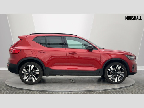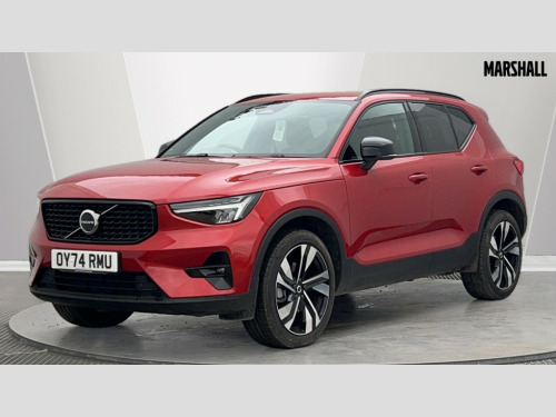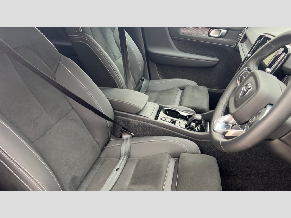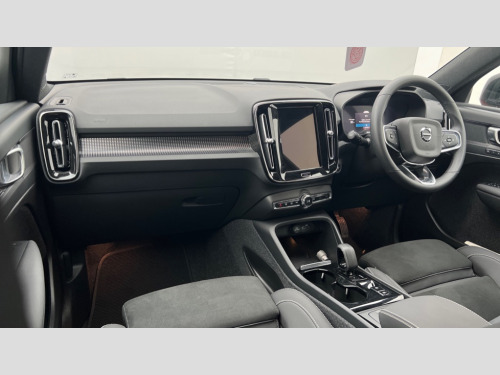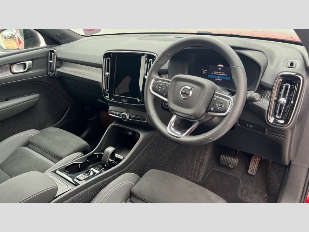 Volvo XC40 2.0 B3P Plus Dark 5dr Auto 12.3" Progressive Driver Display, 9" centre console portrait touch screen, Adjustable steering wheel force, Apple carplay (wired), Bluetooth handsfree system, Cruise control, Driver alert control, Driver awareness - Blind spot information system with steer assist, cross traffic alert with autobrake and rear collision warning and mitigation, E-call, Front park assist, Google automotive services - Enabled entertainment apps, navigation with google maps, voice recognition with google assistant, Hands free power tailgate, Intelligent speed assistance, Lane keeping aid, Oncoming Lane Mitigation, Rear park assist, Rear park assist camera, Speed sensitive steering, Volvo cars services with app - Driving journal, emergency and breakdown call, engine remote start, remote door locking/unlocking and vehicle dashboard, Wireless/Inductive Mobile Phone Charging, Automatic transmission with start/stop and manual change functions, Dynamic chassis, DAB Digital radio, High performance sound, 8 speakers/250W, 2 front type C and 2 rear type C USB, Steering wheel mounted remote controls, Adaptive brake lights with high level LED brake lights, Auto dimming feature for exterior door mirrors, Auto dimming interior mirror, Automatic headlamp levelling, Automatic LED Headlights + Active high beam incorporating daytime running lights, Front aluminium tread plates, Front and rear electric windows, High gloss black front and rear skid plate, High gloss black front bumper deco, High gloss black mesh front grille with high gloss black surround, High gloss black window trim, Home safe and approach lighting, Integrated roof rails in high gloss black, LED front fog lights, Puddle lights, Rain sensor with automatic windscreen wiper activation, Rear side wing doors, Rear wiper, Roof antenna, Roof spoiler, Visible VIN plate, 12V socket in front tunnel console and luggage compartment, 2-Zone electronic climate control with CleanZone air quality system and pollen filter, 3 seat bench in 2nd row, 3 Spoke tailored steering wheel with chrome trim, 60/40 versatile split folding rear seat, A-pillar parking ticket holder, Centre console cupholders and storage, Charcoal headlining, Connect textile/microtech upholstery, Flexible load floor and grocery bag holder, Floor mats, Front cabin courtesy lights, Front door pocket, front cupholder, ambient front door, rear reading, rear courtesy, instrument panel and tailgate lighting, Front footwell illumination, Front headrests, Front reading lights, Front seat cushion extensions, Front side step illumination (under door), Glovebox bag hook, Heated front seats, Height adjustable passenger seat, Height/reach adjustable steering column, High gloss centre tunnel deco, Illuminated glovebox, Illuminated luggage compartment, Illuminated vanity mirrors + ticket holder, Integrated waste bin, Isofix attachments on outer rear seats, Load cover, Load protection net, Multi directional lumbar support for driver and passenger seat, Power driver seat with memory + exterior mirrors memory, Rear armrest with cupholders, Rear headrests, Single front passenger seat, Underfloor cargo storage, Climate pack without heated front seats - XC40, 3x3 point rear seatbelts, City safety with steering support with Pedestrian + cyclist + front collision warning with full auto brake and rear auto brake, Driver and passenger airbags, Drivers knee airbag, Electronic parking brake with auto hold, First aid kit, Front and outer rear seatbelt reminder and pretensioners, Front seats SIPS airbags, Hill descent control, Hill start assist, Inflatable curtain, Passenger airbag cut-off device, Power child locks on rear doors, Road sign information display, Run off Road Protection, SIPS (Side Impact Protection System), Slippery road and hazard light alert, Stability and Traction Control with Spin control, Engine Drag Control and Corner Traction Control, Tyre pressure monitoring system, Vehicle deceleration control with Anti-lock Brake System, Electronic Brake Distribution and Emergency Brake Assist, Warning triangle, WHIPS whiplash protection system - front, 2 x Key integrated remote control central locking including with deadlocking system and auto open/close windows, Anti-theft alarm including immobiliser/volume sensor + level sensor, Keyless drive includes keyless entry and keyless start, Locking wheel nuts