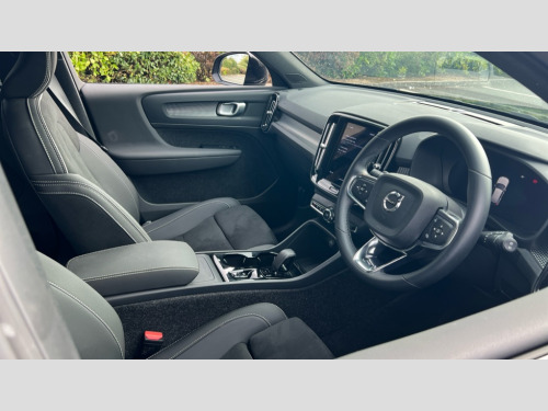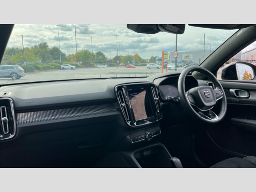 Volvo XC40 2.0 B3P Plus Dark 5dr Auto 12.3" Progressive Driver Display, 9" centre console portrait touch screen, Adjustable steering wheel force, Android auto (Wired), Apple carplay (wired), Bluetooth handsfree system, Driver alert control, Driver assistance (pilot assist and adaptive cruise control), Driver awareness - Blind spot information system with steer assist, cross traffic alert with autobrake and rear collision warning and mitigation, E-call, Front park assist, Google automotive services - Enabled entertainment apps, navigation with google maps, voice recognition with google assistant, Hands free power tailgate, Intelligent speed assistance, Lane keeping aid, Oncoming Lane Mitigation, Rear park assist, Speed sensitive steering, Volvo cars services with app - Driving journal, emergency and breakdown call, engine remote start, remote door locking/unlocking and vehicle dashboard, Wireless/Inductive Mobile Phone Charging, Automatic transmission with start/stop and manual change functions, Dynamic chassis, DAB Digital radio, Steering wheel mounted remote controls, Adaptive brake lights with high level LED brake lights, Auto dimming feature for exterior door mirrors, Auto dimming interior mirror, Automatic headlamp levelling, Automatic LED Headlights + Active high beam incorporating daytime running lights, Front aluminium tread plates, Front and rear electric windows, High gloss black front and rear skid plate, High gloss black front bumper deco, High gloss black mesh front grille with high gloss black surround, High gloss black window trim, Home safe and approach lighting, Integrated roof rails in high gloss black, LED front fog lights, Puddle lights, Rain sensor with automatic windscreen wiper activation, Rear side wing doors, Rear wiper, Roof antenna, Roof spoiler, Visible VIN plate, 12V socket in front tunnel console and luggage compartment, 2-Zone electronic climate control with CleanZone air quality system and pollen filter, 3 seat bench in 2nd row, 3 Spoke tailored steering wheel with chrome trim, 60/40 versatile split folding rear seat, Centre console cupholders and storage, Charcoal headlining, Connect textile/microtech upholstery, Flexible load floor and grocery bag holder, Floor mats, Front cabin courtesy lights, Front door pocket, front cupholder, ambient front door, rear reading, rear courtesy, instrument panel and tailgate lighting, Front footwell illumination, Front headrests, Front reading lights, Front seat cushion extensions, Front side step illumination (under door), Glovebox bag hook, Heated front seats, Height adjustable passenger seat, Height/reach adjustable steering column, High gloss centre tunnel deco, Illuminated glovebox, Illuminated luggage compartment, Illuminated vanity mirrors + ticket holder, Integrated waste bin, Isofix attachments on outer rear seats, Load cover, Load protection net, Multi directional lumbar support for driver and passenger seat, Power driver seat with memory + exterior mirrors memory, Rear armrest with cupholders, Rear headrests, Single front passenger seat, Underfloor cargo storage, Climate pack without heated front seats - XC40, 3x3 point rear seatbelts, City safety with steering support with Pedestrian + cyclist + front collision warning with full auto brake and rear auto brake, Driver and passenger airbags, Drivers knee airbag, Electronic parking brake with auto hold, First aid kit, Front and outer rear seatbelt reminder and pretensioners, Front seats SIPS airbags, Hill descent control, Hill start assist, Inflatable curtain, Passenger airbag cut-off device, Power child locks on rear doors, Road sign information display, Run off Road Protection, SIPS (Side Impact Protection System), Slippery road and hazard light alert, Stability and Traction Control with Spin control, Engine Drag Control and Corner Traction Control, Tyre pressure monitoring system, Vehicle deceleration control with Anti-lock Brake System, Electronic Brake Distribution and Emergency Brake Assist, Warning triangle, WHIPS whiplash protection system - front, 2 x Key integrated remote control central locking including with deadlocking system and auto open/close windows, Anti-theft alarm including immobiliser/volume sensor + level sensor, Keyless drive includes keyless entry and keyless start, Locking wheel nuts