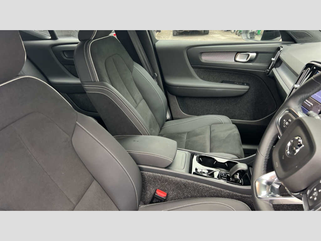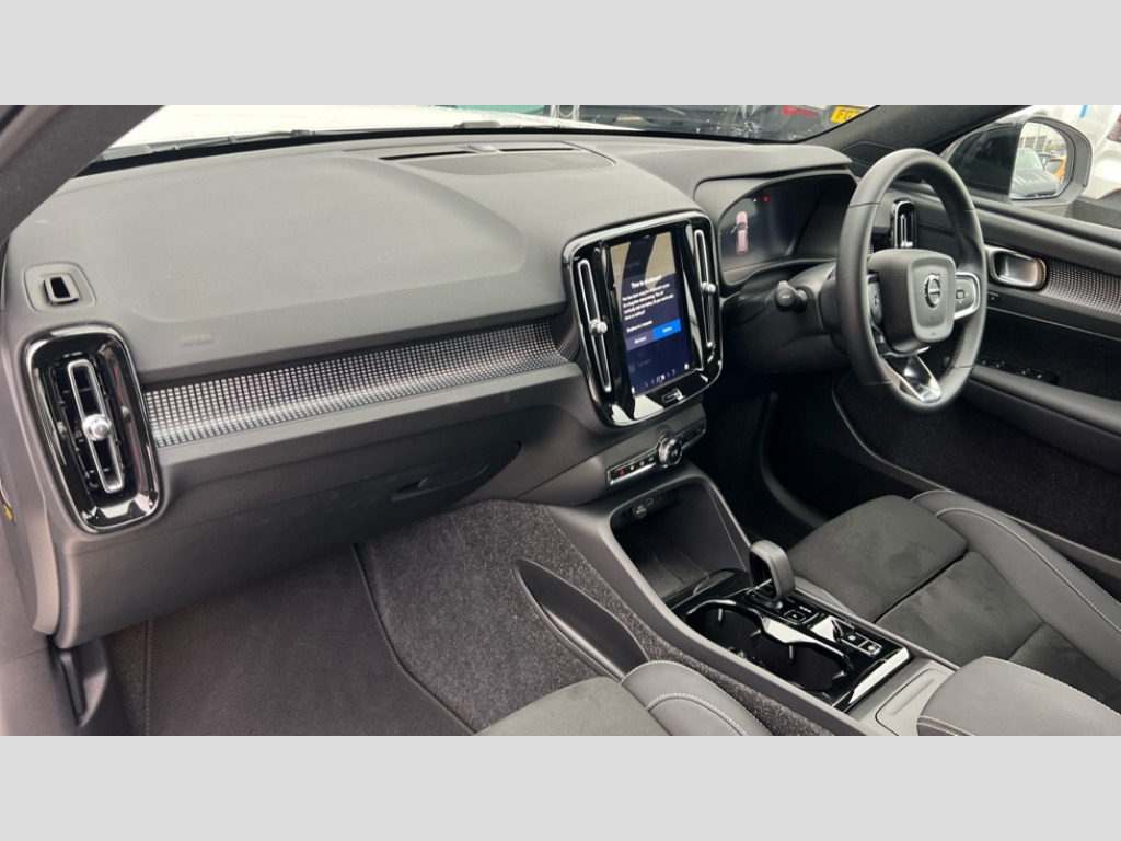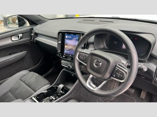 Volvo XC40 2.0 B3P Plus Dark 5dr Auto 12.3" Progressive Driver Display, 9" centre console portrait touch screen, Adjustable steering wheel force, Android auto (Wired), Apple carplay (wired), Bluetooth handsfree system, Driver alert control, Driver assistance (pilot assist and adaptive cruise control), Driver awareness - Blind spot information system with steer assist, cross traffic alert with autobrake and rear collision warning and mitigation, E-call, Front park assist, Google automotive services - Enabled entertainment apps, navigation with google maps, voice recognition with google assistant, Hands free power tailgate, Intelligent speed assistance, Lane keeping aid, Oncoming Lane Mitigation, Rear park assist, Speed sensitive steering, Volvo cars services with app - Driving journal, emergency and breakdown call, engine remote start, remote door locking/unlocking and vehicle dashboard, Wireless/Inductive Mobile Phone Charging, Automatic transmission with start/stop and manual change functions, Dynamic chassis, DAB Digital radio, Steering wheel mounted remote controls, Adaptive brake lights with high level LED brake lights, Auto dimming feature for exterior door mirrors, Auto dimming interior mirror, Automatic headlamp levelling, Automatic LED Headlights + Active high beam incorporating daytime running lights, Front aluminium tread plates, Front and rear electric windows, High gloss black front and rear skid plate, High gloss black front bumper deco, High gloss black mesh front grille with high gloss black surround, High gloss black window trim, Home safe and approach lighting, Integrated roof rails in high gloss black, LED front fog lights, Puddle lights, Rain sensor with automatic windscreen wiper activation, Rear side wing doors, Rear wiper, Roof antenna, Roof spoiler, Visible VIN plate, 12V socket in front tunnel console and luggage compartment, 2-Zone electronic climate control with CleanZone air quality system and pollen filter, 3 seat bench in 2nd row, 3 Spoke tailored steering wheel with chrome trim, 60/40 versatile split folding rear seat, Centre console cupholders and storage, Charcoal headlining, Connect textile/microtech upholstery, Flexible load floor and grocery bag holder, Floor mats, Front cabin courtesy lights, Front door pocket, front cupholder, ambient front door, rear reading, rear courtesy, instrument panel and tailgate lighting, Front footwell illumination, Front headrests, Front reading lights, Front seat cushion extensions, Front side step illumination (under door), Glovebox bag hook, Heated front seats, Height adjustable passenger seat, Height/reach adjustable steering column, High gloss centre tunnel deco, Illuminated glovebox, Illuminated luggage compartment, Illuminated vanity mirrors + ticket holder, Integrated waste bin, Isofix attachments on outer rear seats, Load cover, Load protection net, Multi directional lumbar support for driver and passenger seat, Power driver seat with memory + exterior mirrors memory, Rear armrest with cupholders, Rear headrests, Single front passenger seat, Underfloor cargo storage, Climate pack without heated front seats - XC40, 3x3 point rear seatbelts, City safety with steering support with Pedestrian + cyclist + front collision warning with full auto brake and rear auto brake, Driver and passenger airbags, Drivers knee airbag, Electronic parking brake with auto hold, First aid kit, Front and outer rear seatbelt reminder and pretensioners, Front seats SIPS airbags, Hill descent control, Hill start assist, Inflatable curtain, Passenger airbag cut-off device, Power child locks on rear doors, Road sign information display, Run off Road Protection, SIPS (Side Impact Protection System), Slippery road and hazard light alert, Stability and Traction Control with Spin control, Engine Drag Control and Corner Traction Control, Tyre pressure monitoring system, Vehicle deceleration control with Anti-lock Brake System, Electronic Brake Distribution and Emergency Brake Assist, Warning triangle, WHIPS whiplash protection system - front, 2 x Key integrated remote control central locking including with deadlocking system and auto open/close windows, Anti-theft alarm including immobiliser/volume sensor + level sensor, Keyless drive includes keyless entry and keyless start, Locking wheel nuts