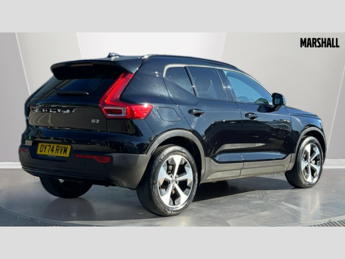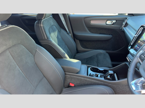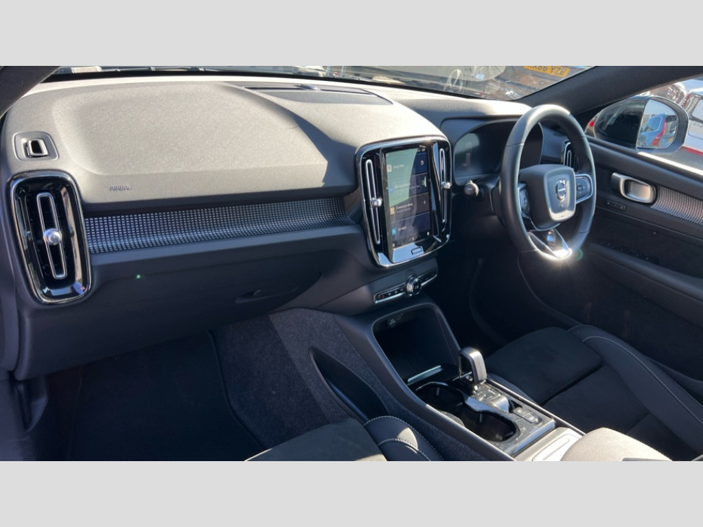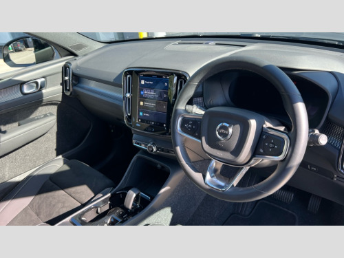 Volvo XC40 2.0 B3P Plus Dark 5dr Auto 12.3" Progressive Driver Display, 9" centre console portrait touch screen, Adjustable steering wheel force, Apple carplay (wired), Bluetooth handsfree system, Cruise control, Driver alert control, Driver awareness - Blind spot information system with steer assist, cross traffic alert with autobrake and rear collision warning and mitigation, E-call, Front park assist, Google automotive services - Enabled entertainment apps, navigation with google maps, voice recognition with google assistant, Hands free power tailgate, Intelligent speed assistance, Lane keeping aid, Oncoming Lane Mitigation, Rear park assist, Rear park assist camera, Speed sensitive steering, Volvo cars services with app - Driving journal, emergency and breakdown call, engine remote start, remote door locking/unlocking and vehicle dashboard, Wireless/Inductive Mobile Phone Charging, Automatic transmission with start/stop and manual change functions, Dynamic chassis, DAB Digital radio, High performance sound, 8 speakers/250W, 2 front type C and 2 rear type C USB, Steering wheel mounted remote controls, Adaptive brake lights with high level LED brake lights, Auto dimming feature for exterior door mirrors, Auto dimming interior mirror, Automatic headlamp levelling, Automatic LED Headlights + Active high beam incorporating daytime running lights, Front aluminium tread plates, Front and rear electric windows, High gloss black front and rear skid plate, High gloss black front bumper deco, High gloss black mesh front grille with high gloss black surround, High gloss black window trim, Home safe and approach lighting, Integrated roof rails in high gloss black, LED front fog lights, Puddle lights, Rain sensor with automatic windscreen wiper activation, Rear side wing doors, Rear wiper, Roof antenna, Roof spoiler, Visible VIN plate, 12V socket in front tunnel console and luggage compartment, 2-Zone electronic climate control with CleanZone air quality system and pollen filter, 3 seat bench in 2nd row, 3 Spoke tailored steering wheel with chrome trim, 60/40 versatile split folding rear seat, A-pillar parking ticket holder, Centre console cupholders and storage, Charcoal headlining, Connect textile/microtech upholstery, Flexible load floor and grocery bag holder, Floor mats, Front cabin courtesy lights, Front door pocket, front cupholder, ambient front door, rear reading, rear courtesy, instrument panel and tailgate lighting, Front footwell illumination, Front headrests, Front reading lights, Front seat cushion extensions, Front side step illumination (under door), Glovebox bag hook, Heated front seats, Height adjustable passenger seat, Height/reach adjustable steering column, High gloss centre tunnel deco, Illuminated glovebox, Illuminated luggage compartment, Illuminated vanity mirrors + ticket holder, Integrated waste bin, Isofix attachments on outer rear seats, Load cover, Load protection net, Multi directional lumbar support for driver and passenger seat, Power driver seat with memory + exterior mirrors memory, Rear armrest with cupholders, Rear headrests, Single front passenger seat, Underfloor cargo storage, Climate pack without heated front seats - XC40, 3x3 point rear seatbelts, City safety with steering support with Pedestrian + cyclist + front collision warning with full auto brake and rear auto brake, Driver and passenger airbags, Drivers knee airbag, Electronic parking brake with auto hold, First aid kit, Front and outer rear seatbelt reminder and pretensioners, Front seats SIPS airbags, Hill descent control, Hill start assist, Inflatable curtain, Passenger airbag cut-off device, Power child locks on rear doors, Road sign information display, Run off Road Protection, SIPS (Side Impact Protection System), Slippery road and hazard light alert, Stability and Traction Control with Spin control, Engine Drag Control and Corner Traction Control, Tyre pressure monitoring system, Vehicle deceleration control with Anti-lock Brake System, Electronic Brake Distribution and Emergency Brake Assist, Warning triangle, WHIPS whiplash protection system - front, 2 x Key integrated remote control central locking including with deadlocking system and auto open/close windows, Anti-theft alarm including immobiliser/volume sensor + level sensor, Keyless drive includes keyless entry and keyless start, Locking wheel nuts