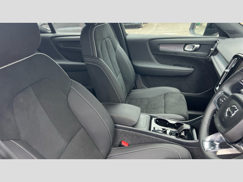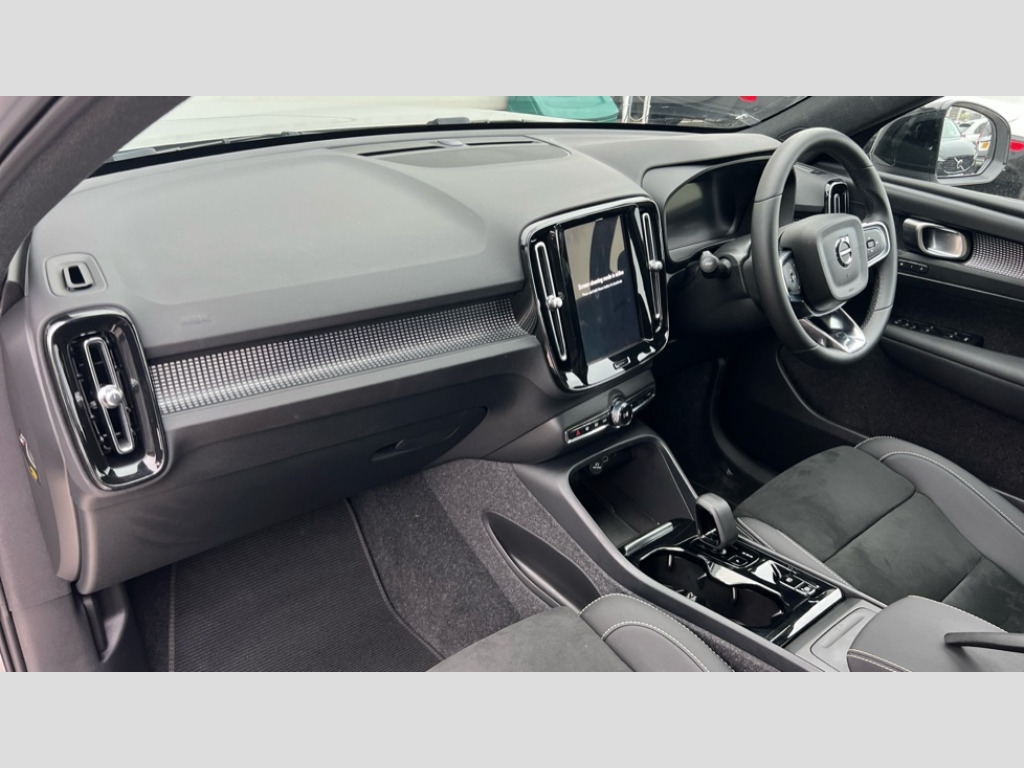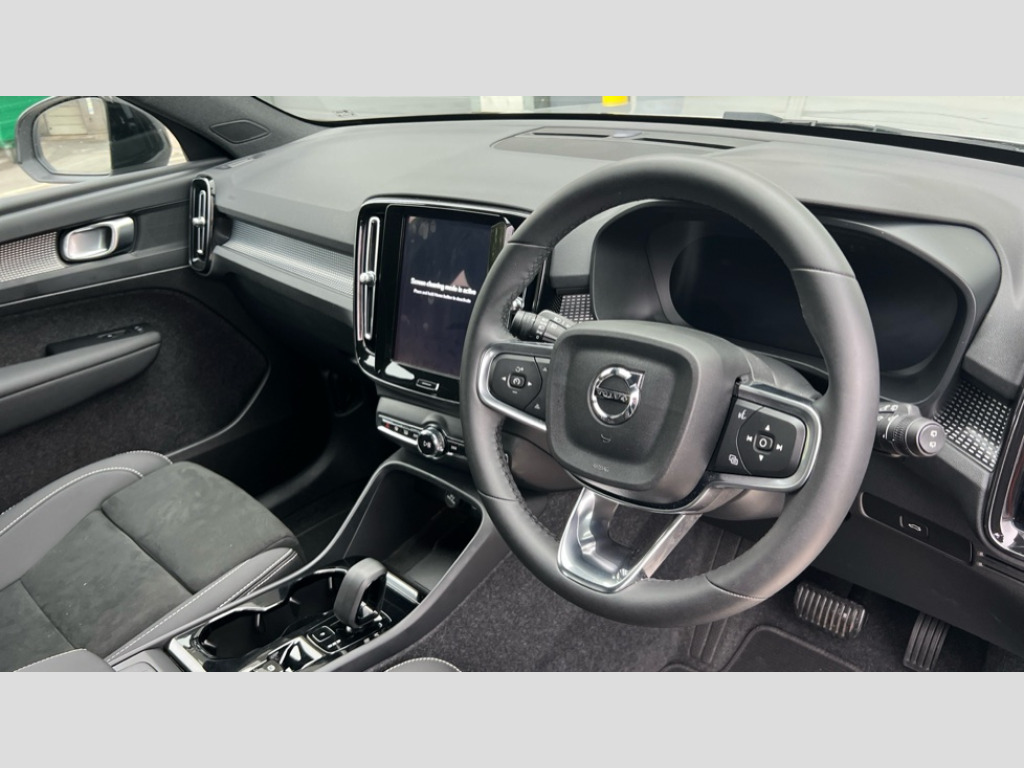 Volvo XC40 2.0 B3P Plus Dark 5dr Auto 12.3" Progressive Driver Display, 9" centre console portrait touch screen, Adjustable steering wheel force, Android auto (Wired), Apple carplay (wired), Bluetooth handsfree system, Cruise control, Driver alert control, E-call, Front park assist, Google automotive services - Enabled entertainment apps, navigation with google maps, voice recognition with google assistant, Hands free power tailgate, Intelligent speed assistance, Lane keeping aid, Oncoming Lane Mitigation, Rear park assist, Speed sensitive steering, Volvo cars services with app - Driving journal, emergency and breakdown call, engine remote start, remote door locking/unlocking and vehicle dashboard, Wireless/Inductive Mobile Phone Charging, Automatic transmission with start/stop and manual change functions, Dynamic chassis, DAB Digital radio, Steering wheel mounted remote controls, Adaptive brake lights with high level LED brake lights, Auto dimming interior mirror, Automatic headlamp levelling, Automatic LED Headlights + Active high beam incorporating daytime running lights, Front aluminium tread plates, Front and rear electric windows, High gloss black front and rear skid plate, High gloss black front bumper deco, High gloss black mesh front grille with high gloss black surround, High gloss black window trim, Home safe and approach lighting, Integrated roof rails in high gloss black, LED front fog lights, Puddle lights, Rain sensor with automatic windscreen wiper activation, Rear side wing doors, Rear wiper, Roof antenna, Roof spoiler, Visible VIN plate, 12V socket in front tunnel console and luggage compartment, 2-Zone electronic climate control with CleanZone air quality system and pollen filter, 3 seat bench in 2nd row, 3 Spoke tailored steering wheel with chrome trim, 60/40 versatile split folding rear seat, Centre console cupholders and storage, Flexible load floor and grocery bag holder, Floor mats, Front cabin courtesy lights, Front door pocket, front cupholder, ambient front door, rear reading, rear courtesy, instrument panel and tailgate lighting, Front footwell illumination, Front headrests, Front reading lights, Front seat cushion extensions, Front side step illumination (under door), Glovebox bag hook, Heated front seats, Height adjustable passenger seat, Height/reach adjustable steering column, High gloss centre tunnel deco, Illuminated glovebox, Illuminated luggage compartment, Illuminated vanity mirrors + ticket holder, Integrated waste bin, Isofix attachments on outer rear seats, Load cover, Load protection net, Multi directional lumbar support for driver and passenger seat, Power driver seat with memory + exterior mirrors memory, Rear armrest with cupholders, Rear headrests, Single front passenger seat, Underfloor cargo storage, Climate pack without heated front seats - XC40, 3x3 point rear seatbelts, City safety with steering support with Pedestrian + cyclist + front collision warning with full auto brake and rear auto brake, Driver and passenger airbags, Drivers knee airbag, Electronic parking brake with auto hold, First aid kit, Front and outer rear seatbelt reminder and pretensioners, Front seats SIPS airbags, Hill descent control, Hill start assist, Inflatable curtain, Passenger airbag cut-off device, Power child locks on rear doors, Road sign information display, Run off Road Protection, SIPS (Side Impact Protection System), Slippery road and hazard light alert, Stability and Traction Control with Spin control, Engine Drag Control and Corner Traction Control, Tyre pressure monitoring system, Vehicle deceleration control with Anti-lock Brake System, Electronic Brake Distribution and Emergency Brake Assist, Warning triangle, WHIPS whiplash protection system - front, 2 x Key integrated remote control central locking including with deadlocking system and auto open/close windows, Anti-theft alarm including immobiliser/volume sensor + level sensor, Keyless drive includes keyless entry and keyless start, Locking wheel nuts