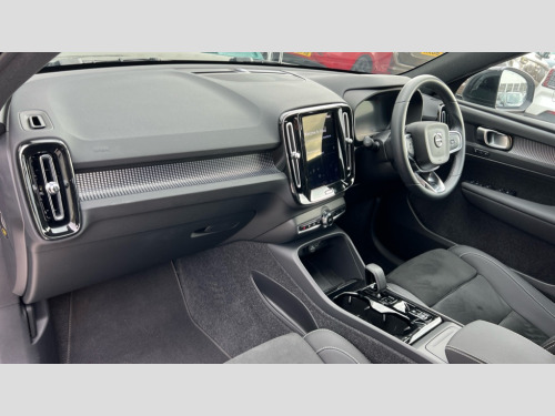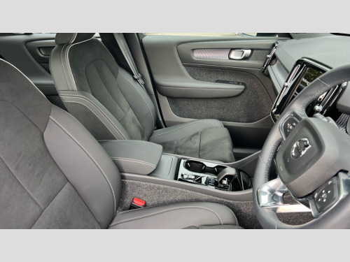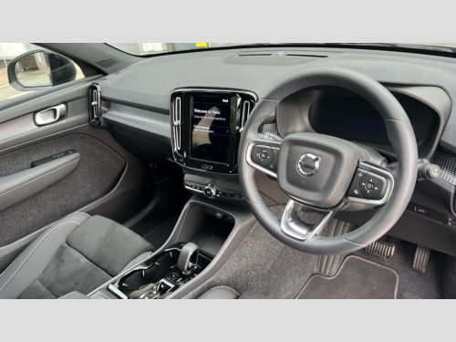 Volvo XC40 2.0 B3P Plus Dark 5dr Auto 12.3" Progressive Driver Display, 9" centre console portrait touch screen, Adjustable steering wheel force, Android auto (Wired), Apple carplay (wired), Bluetooth handsfree system, Driver alert control, Driver assistance (pilot assist and adaptive cruise control), Driver awareness - Blind spot information system with steer assist, cross traffic alert with autobrake and rear collision warning and mitigation, E-call, Front park assist, Google automotive services - Enabled entertainment apps, navigation with google maps, voice recognition with google assistant, Hands free power tailgate, Intelligent speed assistance, Lane keeping aid, Oncoming Lane Mitigation, Rear park assist, Speed sensitive steering, Volvo cars services with app - Driving journal, emergency and breakdown call, engine remote start, remote door locking/unlocking and vehicle dashboard, Wireless/Inductive Mobile Phone Charging, Automatic transmission with start/stop and manual change functions, Dynamic chassis, DAB Digital radio, Steering wheel mounted remote controls, Adaptive brake lights with high level LED brake lights, Auto dimming feature for exterior door mirrors, Auto dimming interior mirror, Automatic headlamp levelling, Automatic LED Headlights + Active high beam incorporating daytime running lights, Front aluminium tread plates, Front and rear electric windows, High gloss black front and rear skid plate, High gloss black front bumper deco, High gloss black mesh front grille with high gloss black surround, High gloss black window trim, Home safe and approach lighting, Integrated roof rails in high gloss black, LED front fog lights, Puddle lights, Rain sensor with automatic windscreen wiper activation, Rear side wing doors, Rear wiper, Roof antenna, Roof spoiler, Visible VIN plate, 12V socket in front tunnel console and luggage compartment, 2-Zone electronic climate control with CleanZone air quality system and pollen filter, 3 seat bench in 2nd row, 3 Spoke tailored steering wheel with chrome trim, 60/40 versatile split folding rear seat, Centre console cupholders and storage, Charcoal headlining, Connect textile/microtech upholstery, Flexible load floor and grocery bag holder, Floor mats, Front cabin courtesy lights, Front door pocket, front cupholder, ambient front door, rear reading, rear courtesy, instrument panel and tailgate lighting, Front footwell illumination, Front headrests, Front reading lights, Front seat cushion extensions, Front side step illumination (under door), Glovebox bag hook, Heated front seats, Height adjustable passenger seat, Height/reach adjustable steering column, High gloss centre tunnel deco, Illuminated glovebox, Illuminated luggage compartment, Illuminated vanity mirrors + ticket holder, Integrated waste bin, Isofix attachments on outer rear seats, Load cover, Load protection net, Multi directional lumbar support for driver and passenger seat, Power driver seat with memory + exterior mirrors memory, Rear armrest with cupholders, Rear headrests, Single front passenger seat, Underfloor cargo storage, Climate pack without heated front seats - XC40, 3x3 point rear seatbelts, City safety with steering support with Pedestrian + cyclist + front collision warning with full auto brake and rear auto brake, Driver and passenger airbags, Drivers knee airbag, Electronic parking brake with auto hold, First aid kit, Front and outer rear seatbelt reminder and pretensioners, Front seats SIPS airbags, Hill descent control, Hill start assist, Inflatable curtain, Passenger airbag cut-off device, Power child locks on rear doors, Road sign information display, Run off Road Protection, SIPS (Side Impact Protection System), Slippery road and hazard light alert, Stability and Traction Control with Spin control, Engine Drag Control and Corner Traction Control, Tyre pressure monitoring system, Vehicle deceleration control with Anti-lock Brake System, Electronic Brake Distribution and Emergency Brake Assist, Warning triangle, WHIPS whiplash protection system - front, 2 x Key integrated remote control central locking including with deadlocking system and auto open/close windows, Anti-theft alarm including immobiliser/volume sensor + level sensor, Keyless drive includes keyless entry and keyless start, Locking wheel nuts