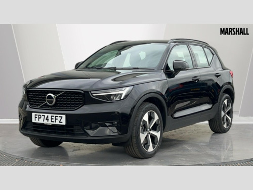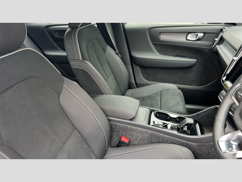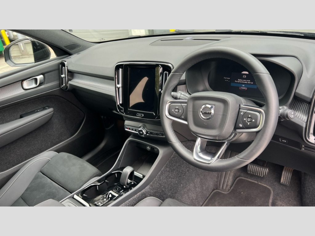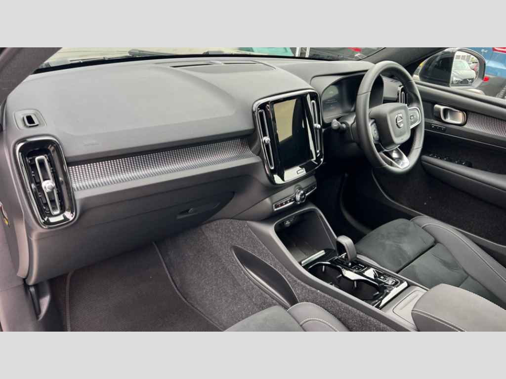 Volvo XC40 2.0 B3P Plus Dark 5dr Auto 12.3" Progressive Driver Display, 9" centre console portrait touch screen, Adjustable steering wheel force, Apple carplay (wired), Bluetooth handsfree system, Cruise control, Driver alert control, E-call, Front park assist, Google automotive services - Enabled entertainment apps, navigation with google maps, voice recognition with google assistant, Hands free power tailgate, Intelligent speed assistance, Lane keeping aid, Oncoming Lane Mitigation, Rear park assist, Rear park assist camera, Speed sensitive steering, Volvo cars services with app - Driving journal, emergency and breakdown call, engine remote start, remote door locking/unlocking and vehicle dashboard, Wireless/Inductive Mobile Phone Charging, Automatic transmission with start/stop and manual change functions, Dynamic chassis, DAB Digital radio, Steering wheel mounted remote controls, Adaptive brake lights with high level LED brake lights, Auto dimming interior mirror, Automatic headlamp levelling, Automatic LED Headlights + Active high beam incorporating daytime running lights, Front aluminium tread plates, Front and rear electric windows, High gloss black front and rear skid plate, High gloss black front bumper deco, High gloss black mesh front grille with high gloss black surround, High gloss black window trim, Home safe and approach lighting, Integrated roof rails in high gloss black, LED front fog lights, Puddle lights, Rain sensor with automatic windscreen wiper activation, Rear side wing doors, Rear wiper, Roof antenna, Roof spoiler, Visible VIN plate, 12V socket in front tunnel console and luggage compartment, 2-Zone electronic climate control with CleanZone air quality system and pollen filter, 3 seat bench in 2nd row, 3 Spoke tailored steering wheel with chrome trim, 60/40 versatile split folding rear seat, Centre console cupholders and storage, Flexible load floor and grocery bag holder, Floor mats, Front cabin courtesy lights, Front door pocket, front cupholder, ambient front door, rear reading, rear courtesy, instrument panel and tailgate lighting, Front footwell illumination, Front headrests, Front reading lights, Front seat cushion extensions, Front side step illumination (under door), Glovebox bag hook, Heated front seats, Height adjustable passenger seat, Height/reach adjustable steering column, High gloss centre tunnel deco, Illuminated glovebox, Illuminated luggage compartment, Illuminated vanity mirrors + ticket holder, Integrated waste bin, Isofix attachments on outer rear seats, Load cover, Load protection net, Multi directional lumbar support for driver and passenger seat, Power driver seat with memory + exterior mirrors memory, Rear armrest with cupholders, Rear headrests, Single front passenger seat, Underfloor cargo storage, Climate pack without heated front seats - XC40, 3x3 point rear seatbelts, City safety with steering support with Pedestrian + cyclist + front collision warning with full auto brake and rear auto brake, Driver and passenger airbags, Drivers knee airbag, Electronic parking brake with auto hold, First aid kit, Front and outer rear seatbelt reminder and pretensioners, Front seats SIPS airbags, Hill descent control, Hill start assist, Inflatable curtain, Passenger airbag cut-off device, Power child locks on rear doors, Road sign information display, Run off Road Protection, SIPS (Side Impact Protection System), Slippery road and hazard light alert, Stability and Traction Control with Spin control, Engine Drag Control and Corner Traction Control, Tyre pressure monitoring system, Vehicle deceleration control with Anti-lock Brake System, Electronic Brake Distribution and Emergency Brake Assist, Warning triangle, WHIPS whiplash protection system - front, 2 x Key integrated remote control central locking including with deadlocking system and auto open/close windows, Anti-theft alarm including immobiliser/volume sensor + level sensor, Keyless drive includes keyless entry and keyless start, Locking wheel nuts