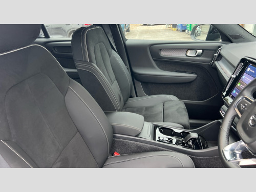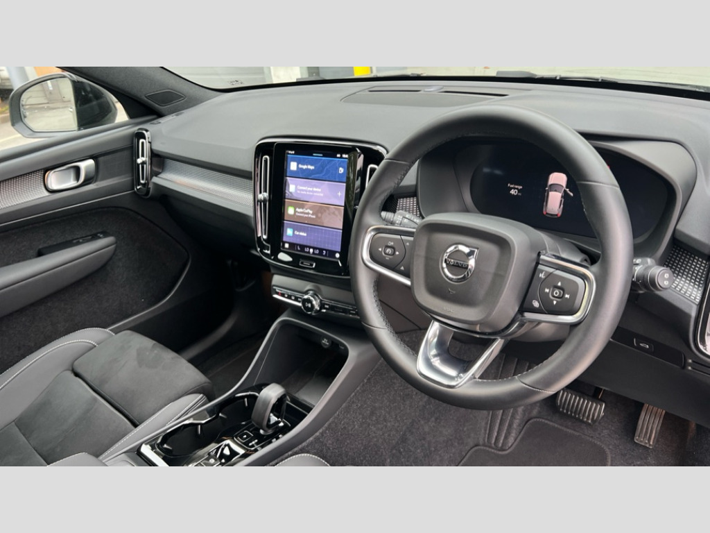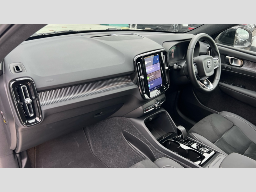 Volvo XC40 2.0 B3P Plus Dark 5dr Auto 12.3" Progressive Driver Display, 9" centre console portrait touch screen, Adjustable steering wheel force, Android auto (Wired), Apple carplay (wired), Bluetooth handsfree system, Driver alert control, Driver assistance (pilot assist and adaptive cruise control), Driver awareness - Blind spot information system with steer assist, cross traffic alert with autobrake and rear collision warning and mitigation, E-call, Front park assist, Google automotive services - Enabled entertainment apps, navigation with google maps, voice recognition with google assistant, Hands free power tailgate, Intelligent speed assistance, Lane keeping aid, Oncoming Lane Mitigation, Rear park assist, Speed sensitive steering, Volvo cars services with app - Driving journal, emergency and breakdown call, engine remote start, remote door locking/unlocking and vehicle dashboard, Wireless/Inductive Mobile Phone Charging, Automatic transmission with start/stop and manual change functions, Dynamic chassis, DAB Digital radio, Steering wheel mounted remote controls, Adaptive brake lights with high level LED brake lights, Auto dimming feature for exterior door mirrors, Auto dimming interior mirror, Automatic headlamp levelling, Automatic LED Headlights + Active high beam incorporating daytime running lights, Front aluminium tread plates, Front and rear electric windows, High gloss black front and rear skid plate, High gloss black front bumper deco, High gloss black mesh front grille with high gloss black surround, High gloss black window trim, Home safe and approach lighting, Integrated roof rails in high gloss black, LED front fog lights, Puddle lights, Rain sensor with automatic windscreen wiper activation, Rear side wing doors, Rear wiper, Roof antenna, Roof spoiler, Visible VIN plate, 12V socket in front tunnel console and luggage compartment, 2-Zone electronic climate control with CleanZone air quality system and pollen filter, 3 seat bench in 2nd row, 3 Spoke tailored steering wheel with chrome trim, 60/40 versatile split folding rear seat, Centre console cupholders and storage, Charcoal headlining, Connect textile/microtech upholstery, Flexible load floor and grocery bag holder, Floor mats, Front cabin courtesy lights, Front door pocket, front cupholder, ambient front door, rear reading, rear courtesy, instrument panel and tailgate lighting, Front footwell illumination, Front headrests, Front reading lights, Front seat cushion extensions, Front side step illumination (under door), Glovebox bag hook, Heated front seats, Height adjustable passenger seat, Height/reach adjustable steering column, High gloss centre tunnel deco, Illuminated glovebox, Illuminated luggage compartment, Illuminated vanity mirrors + ticket holder, Integrated waste bin, Isofix attachments on outer rear seats, Load cover, Load protection net, Multi directional lumbar support for driver and passenger seat, Power driver seat with memory + exterior mirrors memory, Rear armrest with cupholders, Rear headrests, Single front passenger seat, Underfloor cargo storage, Climate pack without heated front seats - XC40, 3x3 point rear seatbelts, City safety with steering support with Pedestrian + cyclist + front collision warning with full auto brake and rear auto brake, Driver and passenger airbags, Drivers knee airbag, Electronic parking brake with auto hold, First aid kit, Front and outer rear seatbelt reminder and pretensioners, Front seats SIPS airbags, Hill descent control, Hill start assist, Inflatable curtain, Passenger airbag cut-off device, Power child locks on rear doors, Road sign information display, Run off Road Protection, SIPS (Side Impact Protection System), Slippery road and hazard light alert, Stability and Traction Control with Spin control, Engine Drag Control and Corner Traction Control, Tyre pressure monitoring system, Vehicle deceleration control with Anti-lock Brake System, Electronic Brake Distribution and Emergency Brake Assist, Warning triangle, WHIPS whiplash protection system - front, 2 x Key integrated remote control central locking including with deadlocking system and auto open/close windows, Anti-theft alarm including immobiliser/volume sensor + level sensor, Keyless drive includes keyless entry and keyless start, Locking wheel nuts