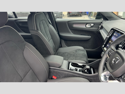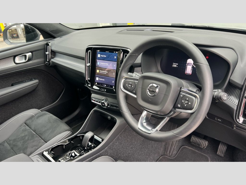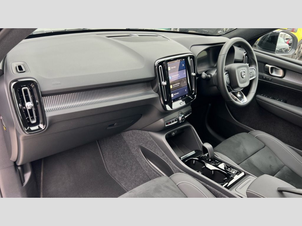 Volvo XC40 2.0 B3P Plus Dark 5dr Auto 12.3" Progressive Driver Display, 9" centre console portrait touch screen, Adjustable steering wheel force, Android auto (Wired), Apple carplay (wired), Bluetooth handsfree system, Driver alert control, Driver assistance (pilot assist and adaptive cruise control), Driver awareness - Blind spot information system with steer assist, cross traffic alert with autobrake and rear collision warning and mitigation, E-call, Front park assist, Google automotive services - Enabled entertainment apps, navigation with google maps, voice recognition with google assistant, Hands free power tailgate, Intelligent speed assistance, Lane keeping aid, Oncoming Lane Mitigation, Rear park assist, Speed sensitive steering, Volvo cars services with app - Driving journal, emergency and breakdown call, engine remote start, remote door locking/unlocking and vehicle dashboard, Wireless/Inductive Mobile Phone Charging, Automatic transmission with start/stop and manual change functions, Dynamic chassis, DAB Digital radio, Steering wheel mounted remote controls, Adaptive brake lights with high level LED brake lights, Auto dimming feature for exterior door mirrors, Auto dimming interior mirror, Automatic headlamp levelling, Automatic LED Headlights + Active high beam incorporating daytime running lights, Front aluminium tread plates, Front and rear electric windows, High gloss black front and rear skid plate, High gloss black front bumper deco, High gloss black mesh front grille with high gloss black surround, High gloss black window trim, Home safe and approach lighting, Integrated roof rails in high gloss black, LED front fog lights, Puddle lights, Rain sensor with automatic windscreen wiper activation, Rear side wing doors, Rear wiper, Roof antenna, Roof spoiler, Visible VIN plate, 12V socket in front tunnel console and luggage compartment, 2-Zone electronic climate control with CleanZone air quality system and pollen filter, 3 seat bench in 2nd row, 3 Spoke tailored steering wheel with chrome trim, 60/40 versatile split folding rear seat, Centre console cupholders and storage, Charcoal headlining, Connect textile/microtech upholstery, Flexible load floor and grocery bag holder, Floor mats, Front cabin courtesy lights, Front door pocket, front cupholder, ambient front door, rear reading, rear courtesy, instrument panel and tailgate lighting, Front footwell illumination, Front headrests, Front reading lights, Front seat cushion extensions, Front side step illumination (under door), Glovebox bag hook, Heated front seats, Height adjustable passenger seat, Height/reach adjustable steering column, High gloss centre tunnel deco, Illuminated glovebox, Illuminated luggage compartment, Illuminated vanity mirrors + ticket holder, Integrated waste bin, Isofix attachments on outer rear seats, Load cover, Load protection net, Multi directional lumbar support for driver and passenger seat, Power driver seat with memory + exterior mirrors memory, Rear armrest with cupholders, Rear headrests, Single front passenger seat, Underfloor cargo storage, Climate pack without heated front seats - XC40, 3x3 point rear seatbelts, City safety with steering support with Pedestrian + cyclist + front collision warning with full auto brake and rear auto brake, Driver and passenger airbags, Drivers knee airbag, Electronic parking brake with auto hold, First aid kit, Front and outer rear seatbelt reminder and pretensioners, Front seats SIPS airbags, Hill descent control, Hill start assist, Inflatable curtain, Passenger airbag cut-off device, Power child locks on rear doors, Road sign information display, Run off Road Protection, SIPS (Side Impact Protection System), Slippery road and hazard light alert, Stability and Traction Control with Spin control, Engine Drag Control and Corner Traction Control, Tyre pressure monitoring system, Vehicle deceleration control with Anti-lock Brake System, Electronic Brake Distribution and Emergency Brake Assist, Warning triangle, WHIPS whiplash protection system - front, 2 x Key integrated remote control central locking including with deadlocking system and auto open/close windows, Anti-theft alarm including immobiliser/volume sensor + level sensor, Keyless drive includes keyless entry and keyless start, Locking wheel nuts
