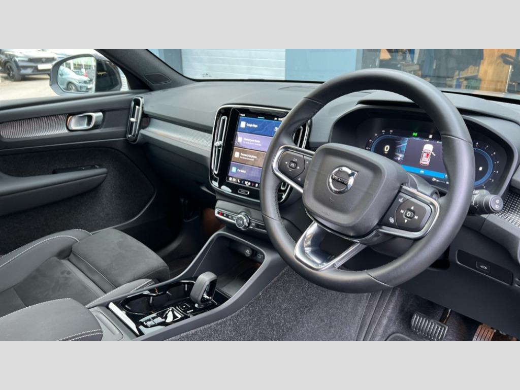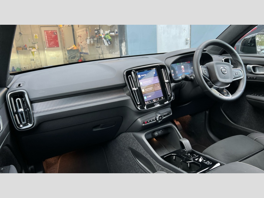 Volvo XC40 2.0 B3P Plus Dark 5dr Auto 12.3" Progressive Driver Display, 9" centre console portrait touch screen, Adjustable steering wheel force, Android auto (Wired), Apple carplay (wired), Bluetooth handsfree system, Driver alert control, Driver assistance (pilot assist and adaptive cruise control), Driver awareness - Blind spot information system with steer assist, cross traffic alert with autobrake and rear collision warning and mitigation, E-call, Front park assist, Google automotive services - Enabled entertainment apps, navigation with google maps, voice recognition with google assistant, Hands free power tailgate, Intelligent speed assistance, Lane keeping aid, Oncoming Lane Mitigation, Rear park assist, Speed sensitive steering, Volvo cars services with app - Driving journal, emergency and breakdown call, engine remote start, remote door locking/unlocking and vehicle dashboard, Wireless/Inductive Mobile Phone Charging, Automatic transmission with start/stop and manual change functions, Dynamic chassis, DAB Digital radio, Steering wheel mounted remote controls, Adaptive brake lights with high level LED brake lights, Auto dimming feature for exterior door mirrors, Auto dimming interior mirror, Automatic headlamp levelling, Automatic LED Headlights + Active high beam incorporating daytime running lights, Front aluminium tread plates, Front and rear electric windows, High gloss black front and rear skid plate, High gloss black front bumper deco, High gloss black mesh front grille with high gloss black surround, High gloss black window trim, Home safe and approach lighting, Integrated roof rails in high gloss black, LED front fog lights, Puddle lights, Rain sensor with automatic windscreen wiper activation, Rear side wing doors, Rear wiper, Roof antenna, Roof spoiler, Visible VIN plate, 12V socket in front tunnel console and luggage compartment, 2-Zone electronic climate control with CleanZone air quality system and pollen filter, 3 seat bench in 2nd row, 3 Spoke tailored steering wheel with chrome trim, 60/40 versatile split folding rear seat, Centre console cupholders and storage, Charcoal headlining, Connect textile/microtech upholstery, Flexible load floor and grocery bag holder, Floor mats, Front cabin courtesy lights, Front door pocket, front cupholder, ambient front door, rear reading, rear courtesy, instrument panel and tailgate lighting, Front footwell illumination, Front headrests, Front reading lights, Front seat cushion extensions, Front side step illumination (under door), Glovebox bag hook, Heated front seats, Height adjustable passenger seat, Height/reach adjustable steering column, High gloss centre tunnel deco, Illuminated glovebox, Illuminated luggage compartment, Illuminated vanity mirrors + ticket holder, Integrated waste bin, Isofix attachments on outer rear seats, Load cover, Load protection net, Multi directional lumbar support for driver and passenger seat, Power driver seat with memory + exterior mirrors memory, Rear armrest with cupholders, Rear headrests, Single front passenger seat, Underfloor cargo storage, Climate pack without heated front seats - XC40, 3x3 point rear seatbelts, City safety with steering support with Pedestrian + cyclist + front collision warning with full auto brake and rear auto brake, Driver and passenger airbags, Drivers knee airbag, Electronic parking brake with auto hold, First aid kit, Front and outer rear seatbelt reminder and pretensioners, Front seats SIPS airbags, Hill descent control, Hill start assist, Inflatable curtain, Passenger airbag cut-off device, Power child locks on rear doors, Road sign information display, Run off Road Protection, SIPS (Side Impact Protection System), Slippery road and hazard light alert, Stability and Traction Control with Spin control, Engine Drag Control and Corner Traction Control, Tyre pressure monitoring system, Vehicle deceleration control with Anti-lock Brake System, Electronic Brake Distribution and Emergency Brake Assist, Warning triangle, WHIPS whiplash protection system - front, 2 x Key integrated remote control central locking including with deadlocking system and auto open/close windows, Anti-theft alarm including immobiliser/volume sensor + level sensor, Keyless drive includes keyless entry and keyless start, Locking wheel nuts