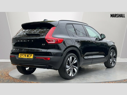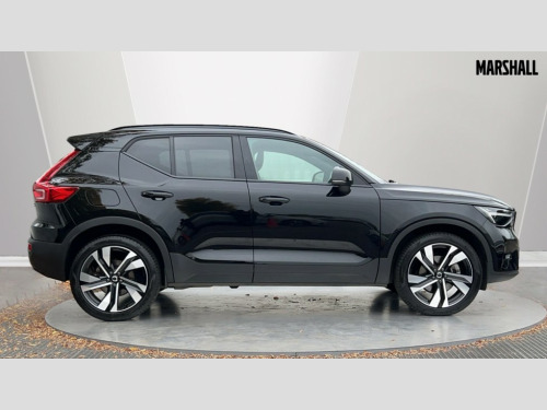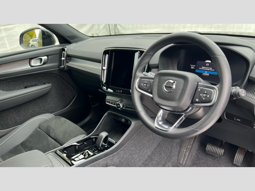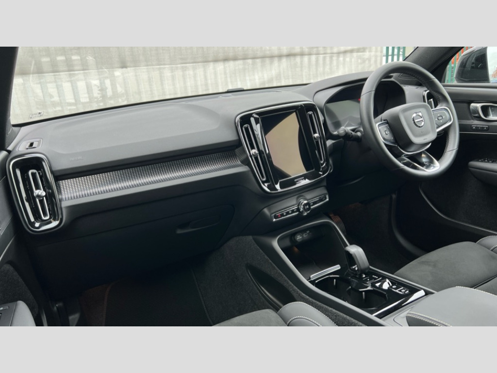 Volvo XC40 2.0 B3P Plus Dark 5dr Auto 12.3" Progressive Driver Display, 9" centre console portrait touch screen, Adjustable steering wheel force, Apple carplay (wired), Bluetooth handsfree system, Cruise control, Driver alert control, Driver awareness - Blind spot information system with steer assist, cross traffic alert with autobrake and rear collision warning and mitigation, E-call, Front park assist, Google automotive services - Enabled entertainment apps, navigation with google maps, voice recognition with google assistant, Hands free power tailgate, Intelligent speed assistance, Lane keeping aid, Oncoming Lane Mitigation, Rear park assist, Rear park assist camera, Speed sensitive steering, Volvo cars services with app - Driving journal, emergency and breakdown call, engine remote start, remote door locking/unlocking and vehicle dashboard, Wireless/Inductive Mobile Phone Charging, Automatic transmission with start/stop and manual change functions, Dynamic chassis, DAB Digital radio, High performance sound, 8 speakers/250W, 2 front type C and 2 rear type C USB, Steering wheel mounted remote controls, Adaptive brake lights with high level LED brake lights, Auto dimming feature for exterior door mirrors, Auto dimming interior mirror, Automatic headlamp levelling, Automatic LED Headlights + Active high beam incorporating daytime running lights, Front aluminium tread plates, Front and rear electric windows, High gloss black front and rear skid plate, High gloss black front bumper deco, High gloss black mesh front grille with high gloss black surround, High gloss black window trim, Home safe and approach lighting, Integrated roof rails in high gloss black, LED front fog lights, Puddle lights, Rain sensor with automatic windscreen wiper activation, Rear side wing doors, Rear wiper, Roof antenna, Roof spoiler, Visible VIN plate, 12V socket in front tunnel console and luggage compartment, 2-Zone electronic climate control with CleanZone air quality system and pollen filter, 3 seat bench in 2nd row, 3 Spoke tailored steering wheel with chrome trim, 60/40 versatile split folding rear seat, A-pillar parking ticket holder, Centre console cupholders and storage, Charcoal headlining, Connect textile/microtech upholstery, Flexible load floor and grocery bag holder, Floor mats, Front cabin courtesy lights, Front door pocket, front cupholder, ambient front door, rear reading, rear courtesy, instrument panel and tailgate lighting, Front footwell illumination, Front headrests, Front reading lights, Front seat cushion extensions, Front side step illumination (under door), Glovebox bag hook, Heated front seats, Height adjustable passenger seat, Height/reach adjustable steering column, High gloss centre tunnel deco, Illuminated glovebox, Illuminated luggage compartment, Illuminated vanity mirrors + ticket holder, Integrated waste bin, Isofix attachments on outer rear seats, Load cover, Load protection net, Multi directional lumbar support for driver and passenger seat, Power driver seat with memory + exterior mirrors memory, Rear armrest with cupholders, Rear headrests, Single front passenger seat, Underfloor cargo storage, Climate pack without heated front seats - XC40, 3x3 point rear seatbelts, City safety with steering support with Pedestrian + cyclist + front collision warning with full auto brake and rear auto brake, Driver and passenger airbags, Drivers knee airbag, Electronic parking brake with auto hold, First aid kit, Front and outer rear seatbelt reminder and pretensioners, Front seats SIPS airbags, Hill descent control, Hill start assist, Inflatable curtain, Passenger airbag cut-off device, Power child locks on rear doors, Road sign information display, Run off Road Protection, SIPS (Side Impact Protection System), Slippery road and hazard light alert, Stability and Traction Control with Spin control, Engine Drag Control and Corner Traction Control, Tyre pressure monitoring system, Vehicle deceleration control with Anti-lock Brake System, Electronic Brake Distribution and Emergency Brake Assist, Warning triangle, WHIPS whiplash protection system - front, 2 x Key integrated remote control central locking including with deadlocking system and auto open/close windows, Anti-theft alarm including immobiliser/volume sensor + level sensor, Keyless drive includes keyless entry and keyless start, Locking wheel nuts