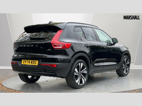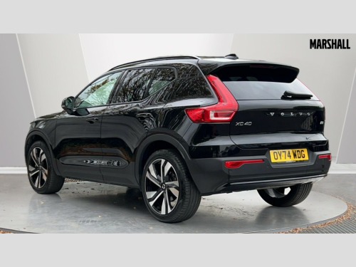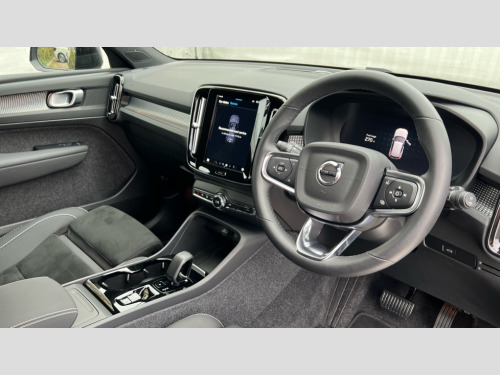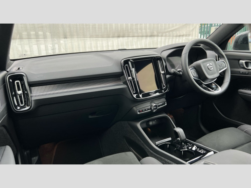 Volvo XC40 2.0 B3P Plus Dark 5dr Auto 12.3" Progressive Driver Display, 9" centre console portrait touch screen, Adjustable steering wheel force, Apple carplay (wired), Bluetooth handsfree system, Cruise control, Driver alert control, Driver awareness - Blind spot information system with steer assist, cross traffic alert with autobrake and rear collision warning and mitigation, E-call, Front park assist, Google automotive services - Enabled entertainment apps, navigation with google maps, voice recognition with google assistant, Hands free power tailgate, Intelligent speed assistance, Lane keeping aid, Oncoming Lane Mitigation, Rear park assist, Rear park assist camera, Speed sensitive steering, Volvo cars services with app - Driving journal, emergency and breakdown call, engine remote start, remote door locking/unlocking and vehicle dashboard, Wireless/Inductive Mobile Phone Charging, Automatic transmission with start/stop and manual change functions, Dynamic chassis, DAB Digital radio, High performance sound, 8 speakers/250W, 2 front type C and 2 rear type C USB, Steering wheel mounted remote controls, Adaptive brake lights with high level LED brake lights, Auto dimming feature for exterior door mirrors, Auto dimming interior mirror, Automatic headlamp levelling, Automatic LED Headlights + Active high beam incorporating daytime running lights, Front aluminium tread plates, Front and rear electric windows, High gloss black front and rear skid plate, High gloss black front bumper deco, High gloss black mesh front grille with high gloss black surround, High gloss black window trim, Home safe and approach lighting, Integrated roof rails in high gloss black, LED front fog lights, Puddle lights, Rain sensor with automatic windscreen wiper activation, Rear side wing doors, Rear wiper, Roof antenna, Roof spoiler, Visible VIN plate, 12V socket in front tunnel console and luggage compartment, 2-Zone electronic climate control with CleanZone air quality system and pollen filter, 3 seat bench in 2nd row, 3 Spoke tailored steering wheel with chrome trim, 60/40 versatile split folding rear seat, A-pillar parking ticket holder, Centre console cupholders and storage, Charcoal headlining, Connect textile/microtech upholstery, Flexible load floor and grocery bag holder, Floor mats, Front cabin courtesy lights, Front door pocket, front cupholder, ambient front door, rear reading, rear courtesy, instrument panel and tailgate lighting, Front footwell illumination, Front headrests, Front reading lights, Front seat cushion extensions, Front side step illumination (under door), Glovebox bag hook, Heated front seats, Height adjustable passenger seat, Height/reach adjustable steering column, High gloss centre tunnel deco, Illuminated glovebox, Illuminated luggage compartment, Illuminated vanity mirrors + ticket holder, Integrated waste bin, Isofix attachments on outer rear seats, Load cover, Load protection net, Multi directional lumbar support for driver and passenger seat, Power driver seat with memory + exterior mirrors memory, Rear armrest with cupholders, Rear headrests, Single front passenger seat, Underfloor cargo storage, Climate pack without heated front seats - XC40, 3x3 point rear seatbelts, City safety with steering support with Pedestrian + cyclist + front collision warning with full auto brake and rear auto brake, Driver and passenger airbags, Drivers knee airbag, Electronic parking brake with auto hold, First aid kit, Front and outer rear seatbelt reminder and pretensioners, Front seats SIPS airbags, Hill descent control, Hill start assist, Inflatable curtain, Passenger airbag cut-off device, Power child locks on rear doors, Road sign information display, Run off Road Protection, SIPS (Side Impact Protection System), Slippery road and hazard light alert, Stability and Traction Control with Spin control, Engine Drag Control and Corner Traction Control, Tyre pressure monitoring system, Vehicle deceleration control with Anti-lock Brake System, Electronic Brake Distribution and Emergency Brake Assist, Warning triangle, WHIPS whiplash protection system - front, 2 x Key integrated remote control central locking including with deadlocking system and auto open/close windows, Anti-theft alarm including immobiliser/volume sensor + level sensor, Keyless drive includes keyless entry and keyless start, Locking wheel nuts