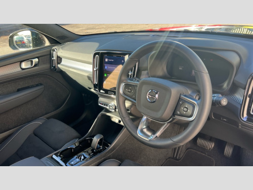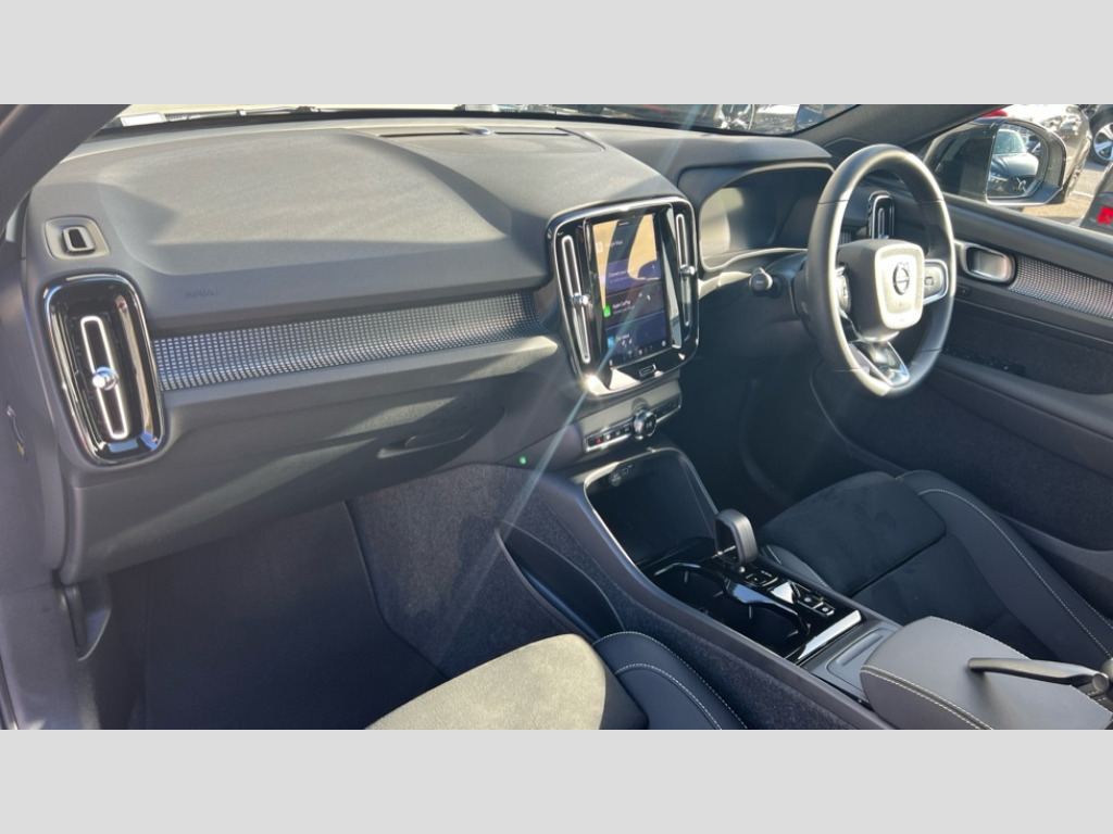 Volvo XC40 2.0 B3P Plus Dark 5dr Auto 12.3" Progressive Driver Display, 9" centre console portrait touch screen, Adjustable steering wheel force, Android auto (Wired), Apple carplay (wired), Bluetooth handsfree system, Driver alert control, Driver assistance (pilot assist and adaptive cruise control), Driver awareness - Blind spot information system with steer assist, cross traffic alert with autobrake and rear collision warning and mitigation, E-call, Front park assist, Google automotive services - Enabled entertainment apps, navigation with google maps, voice recognition with google assistant, Hands free power tailgate, Intelligent speed assistance, Lane keeping aid, Oncoming Lane Mitigation, Rear park assist, Speed sensitive steering, Volvo cars services with app - Driving journal, emergency and breakdown call, engine remote start, remote door locking/unlocking and vehicle dashboard, Wireless/Inductive Mobile Phone Charging, Automatic transmission with start/stop and manual change functions, Dynamic chassis, DAB Digital radio, Steering wheel mounted remote controls, Adaptive brake lights with high level LED brake lights, Auto dimming feature for exterior door mirrors, Auto dimming interior mirror, Automatic headlamp levelling, Automatic LED Headlights + Active high beam incorporating daytime running lights, Front aluminium tread plates, Front and rear electric windows, High gloss black front and rear skid plate, High gloss black front bumper deco, High gloss black mesh front grille with high gloss black surround, High gloss black window trim, Home safe and approach lighting, Integrated roof rails in high gloss black, LED front fog lights, Puddle lights, Rain sensor with automatic windscreen wiper activation, Rear side wing doors, Rear wiper, Roof antenna, Roof spoiler, Visible VIN plate, 12V socket in front tunnel console and luggage compartment, 2-Zone electronic climate control with CleanZone air quality system and pollen filter, 3 seat bench in 2nd row, 3 Spoke tailored steering wheel with chrome trim, 60/40 versatile split folding rear seat, Centre console cupholders and storage, Charcoal headlining, Connect textile/microtech upholstery, Flexible load floor and grocery bag holder, Floor mats, Front cabin courtesy lights, Front door pocket, front cupholder, ambient front door, rear reading, rear courtesy, instrument panel and tailgate lighting, Front footwell illumination, Front headrests, Front reading lights, Front seat cushion extensions, Front side step illumination (under door), Glovebox bag hook, Heated front seats, Height adjustable passenger seat, Height/reach adjustable steering column, High gloss centre tunnel deco, Illuminated glovebox, Illuminated luggage compartment, Illuminated vanity mirrors + ticket holder, Integrated waste bin, Isofix attachments on outer rear seats, Load cover, Load protection net, Multi directional lumbar support for driver and passenger seat, Power driver seat with memory + exterior mirrors memory, Rear armrest with cupholders, Rear headrests, Single front passenger seat, Underfloor cargo storage, Climate pack without heated front seats - XC40, 3x3 point rear seatbelts, City safety with steering support with Pedestrian + cyclist + front collision warning with full auto brake and rear auto brake, Driver and passenger airbags, Drivers knee airbag, Electronic parking brake with auto hold, First aid kit, Front and outer rear seatbelt reminder and pretensioners, Front seats SIPS airbags, Hill descent control, Hill start assist, Inflatable curtain, Passenger airbag cut-off device, Power child locks on rear doors, Road sign information display, Run off Road Protection, SIPS (Side Impact Protection System), Slippery road and hazard light alert, Stability and Traction Control with Spin control, Engine Drag Control and Corner Traction Control, Tyre pressure monitoring system, Vehicle deceleration control with Anti-lock Brake System, Electronic Brake Distribution and Emergency Brake Assist, Warning triangle, WHIPS whiplash protection system - front, 2 x Key integrated remote control central locking including with deadlocking system and auto open/close windows, Anti-theft alarm including immobiliser/volume sensor + level sensor, Keyless drive includes keyless entry and keyless start, Locking wheel nuts
