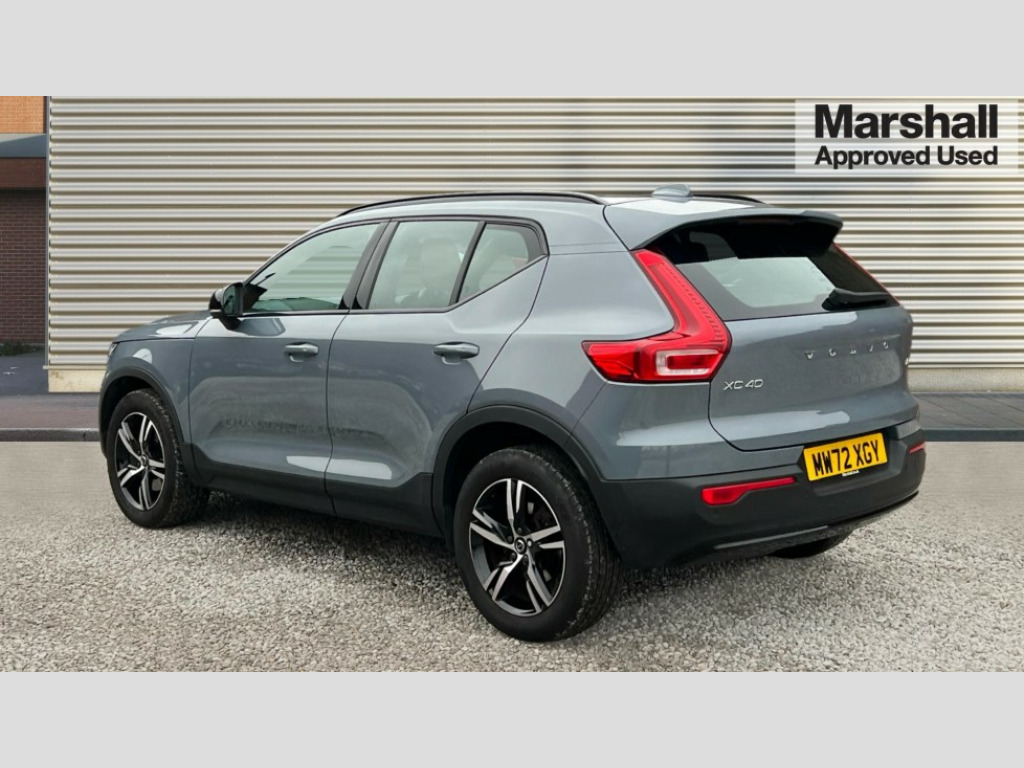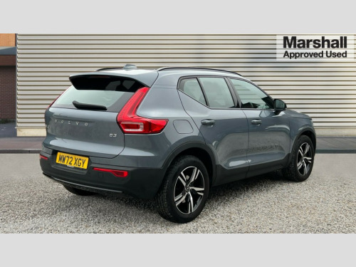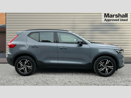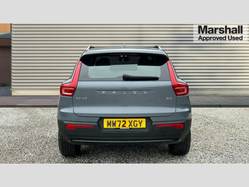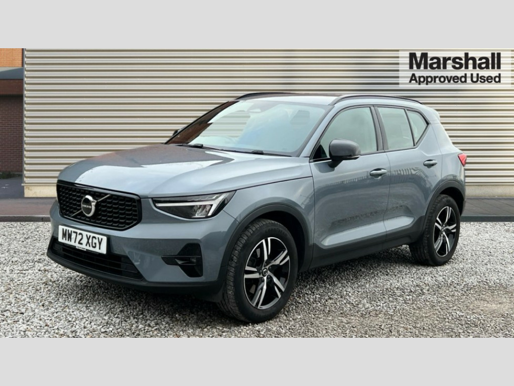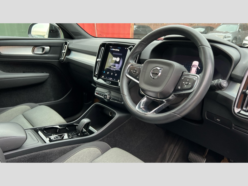 Volvo XC40 2.0 B3P Plus Dark 5dr Auto 12.3" Progressive Driver Display, 9" centre console portrait touch screen, Adjustable steering wheel force, Bluetooth hands free telephone kit, Cruise control, Driver awareness - blind spot information system with steer assist, cross traffic alert with autobrake, rear collision warning and migitation, E-call, Front park assist, Google automatic services - Nav with google maps, apple carplay/android auto, voice recognition with google assistant, Hands free power tailgate, Lane keep assist with driver alert control, Oncoming Lane Mitigation, Rear park assist, Rear park assist camera, Speed limiter, Speed sensitive steering, Wireless/Inductive Mobile Phone Charging, Dynamic chassis, DAB Digital radio, High performance sound, 8 speakers/250W, front USB and 2 rear type C USB, Steering wheel mounted remote controls, Adaptive brake lights with high level LED brake lights, Auto dimming feature for exterior door mirrors, Auto dimming interior mirror, Automatic headlamp levelling, Automatic LED Headlights + Active high beam incorporating daytime running lights, Front aluminium tread plates, Front and rear electric windows, High gloss black front and rear skid plate, High gloss black mesh front grille with high gloss black surround, High gloss black window trim, Home safe and approach lighting, Integrated roof rails in high gloss black, LED front fog lights, Puddle lights, Rain sensor with automatic windscreen wiper activation, Rear side wing doors, Rear wiper, Roof antenna, Roof spoiler, Visible VIN plate, 12V socket in front tunnel console and luggage compartment, 2-Zone electronic climate control with CleanZone air quality system and pollen filter, 3 seat bench in 2nd row, 3 Spoke tailored steering wheel with chrome trim, 60/40 versatile split folding rear seat, A-pillar parking ticket holder, Ambient front door and instrumental panel lighting, Centre console cupholders and storage, Flexible load floor and grocery bag holder, Floor mats, Front door pocket and front cupholder illumination, Front footwell illumination, Front headrests, Front reading light and theatre lighting, Front seat cushion extensions, Front tunnel pocket, Glovebox bag hook, Heated front seats, Height adjustable passenger seat, Height/reach adjustable steering column, High gloss centre tunnel deco, Illuminated glovebox, Illuminated luggage compartment, Illuminated tailgate, Illuminated vanity mirrors, Integrated waste bin, Isofix attachments on outer rear seats, Load protection net, Multi directional lumbar support, Power driver seat with memory + exterior mirrors memory, Rear armrest / integral cup holders / storage tray, Rear headrests, Rear reading and courtesy lights, Single front passenger seat, Underfloor cargo storage, Climate pack without heated front seats - XC40, 3x3 point rear seatbelts, City safety with steering support with Pedestrian + cyclist + front collision warning with full auto brake and rear auto brake, Drivers knee airbag, Dual stage driver/passenger airbags, Electronic parking brake with auto hold, First aid kit, Front and outer rear seatbelt reminder and pretensioners, Front seats SIPS airbags, Hill descent control, Hill start assist, Inflatable curtain, Passenger airbag cut-off device, Power child locks on rear doors, Road sign information display, Run off Road Mitigation, Run off Road Protection, SIPS (Side Impact Protection System), Slippery road and hazard light alert, Stability and Traction Control with Spin control, Engine Drag Control and Corner Traction Control, Tyre pressure monitoring system, Vehicle deceleration control with Anti-lock Brake System, Electronic Brake Distribution and Emergency Brake Assist, Warning triangle, WHIPS whiplash protection system - front, Anti-theft alarm including immobiliser/volume sensor + level sensor, Key integrated remote control central locking + fuel flap with deadlocking system and auto open/close power windows, Keyless drive includes keyless entry and keyless start, Locking wheel nuts