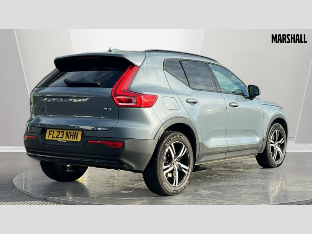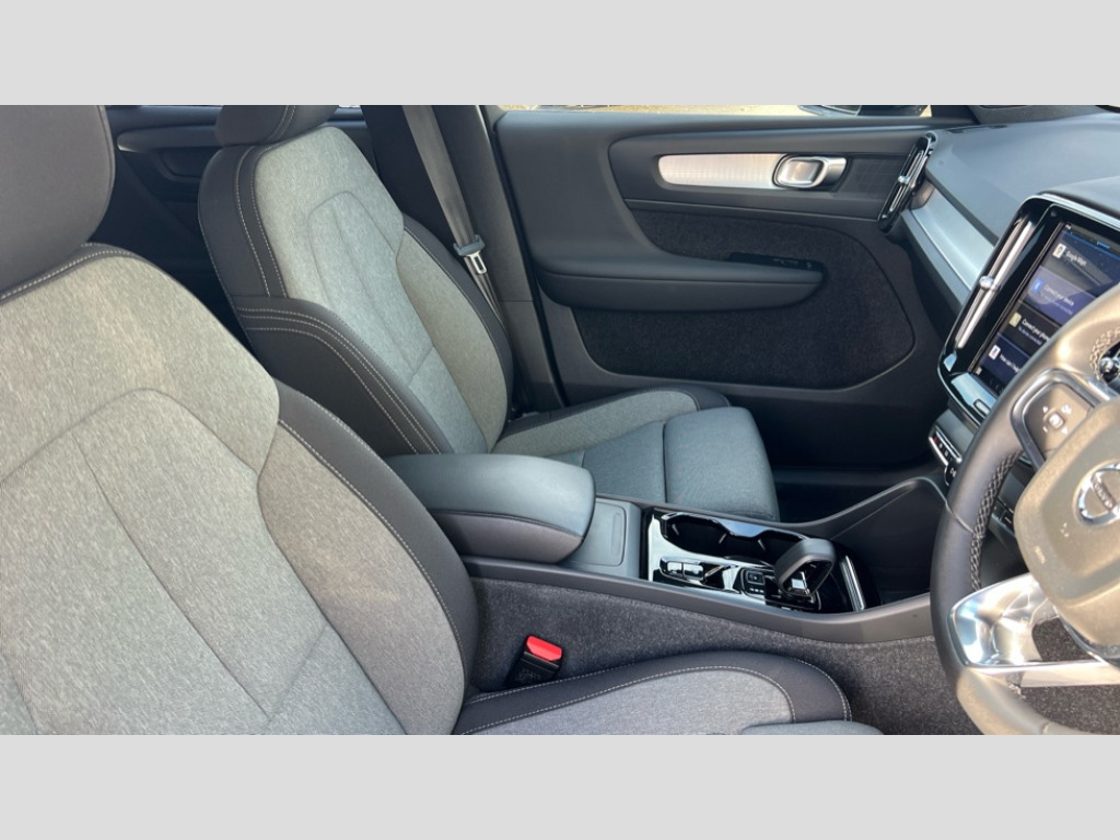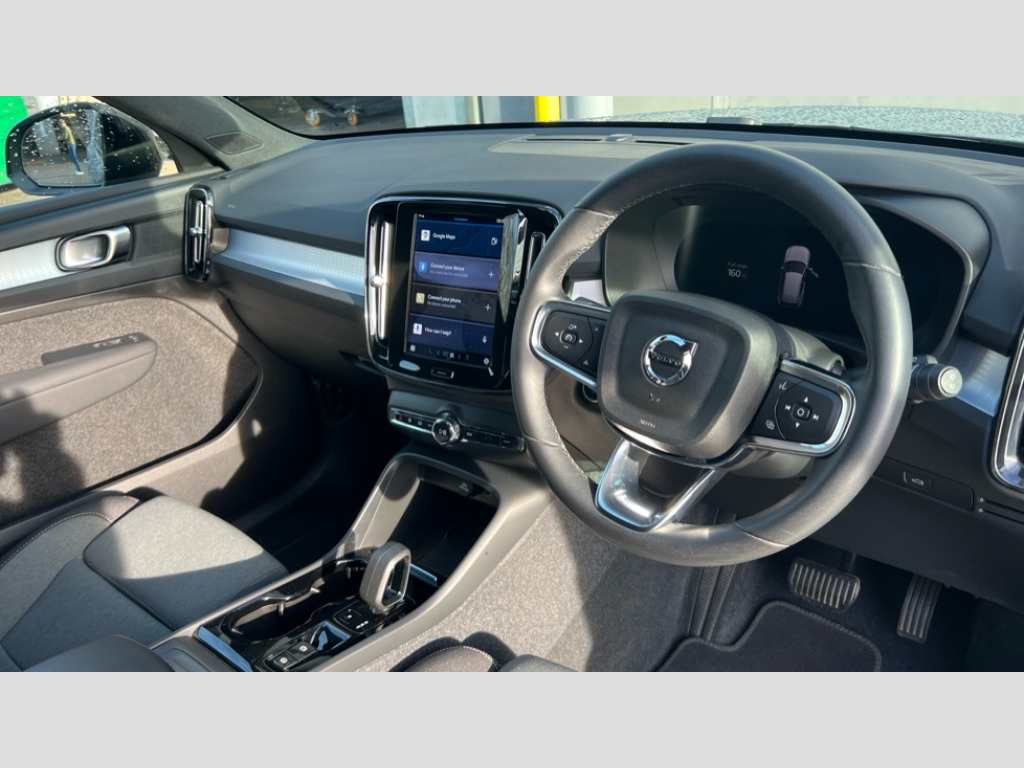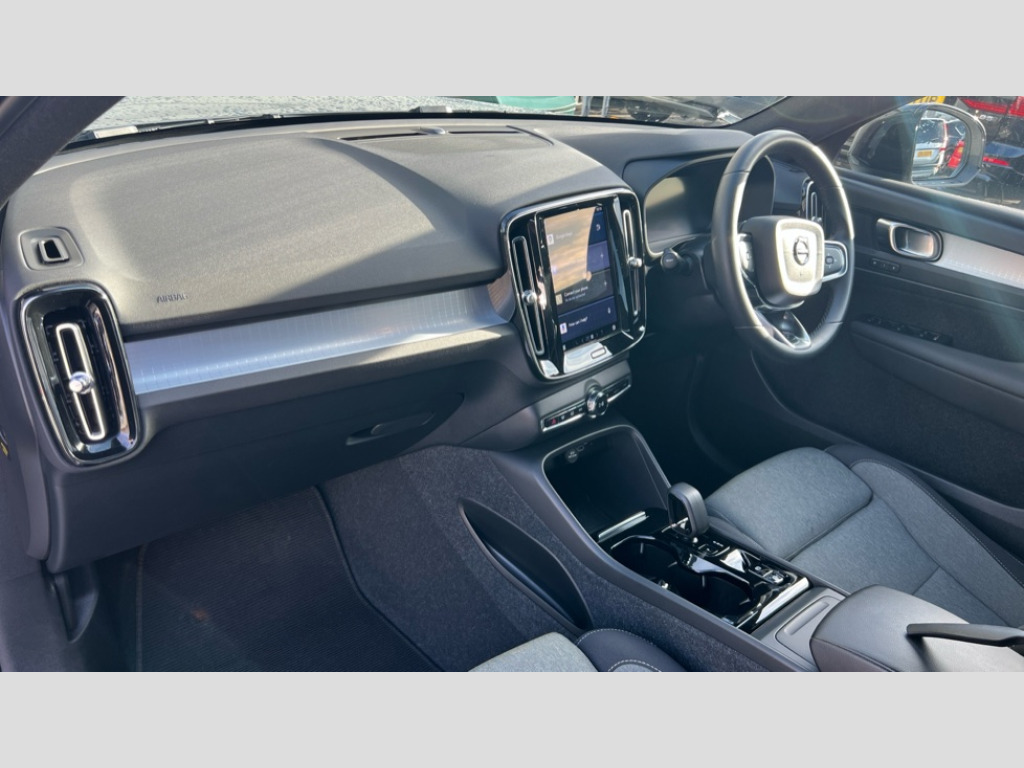 Volvo XC40 2.0 B3P Plus Dark 5dr Auto 12.3" Progressive Driver Display, 360 degree surround view parking camera with side proximity sensors, 9" centre console portrait touch screen, Adjustable steering wheel force, Bluetooth hands free telephone kit, Cruise control, E-call, Front park assist, Google automatic services - Nav with google maps, apple carplay/android auto, voice recognition with google assistant, Hands free power tailgate, Lane keep assist with driver alert control, Oncoming Lane Mitigation, Rear park assist, Speed limiter, Speed sensitive steering, Wireless/Inductive Mobile Phone Charging, Dynamic chassis, DAB Digital radio, High performance sound, 8 speakers/250W, front USB and 2 rear type C USB, Steering wheel mounted remote controls, Adaptive brake lights with high level LED brake lights, Auto dimming feature for exterior door mirrors, Auto dimming interior mirror, Automatic headlamp levelling, Automatic LED Headlights + Active high beam incorporating daytime running lights, Front aluminium tread plates, Front and rear electric windows, High gloss black front and rear skid plate, High gloss black mesh front grille with high gloss black surround, High gloss black window trim, Home safe and approach lighting, Integrated roof rails in high gloss black, LED front fog lights, Puddle lights, Rain sensor with automatic windscreen wiper activation, Rear side wing doors, Rear wiper, Roof antenna, Roof spoiler, Visible VIN plate, 12V socket in front tunnel console and luggage compartment, 2-Zone electronic climate control with CleanZone air quality system and pollen filter, 3 seat bench in 2nd row, 3 Spoke tailored steering wheel with chrome trim, 60/40 versatile split folding rear seat, A-pillar parking ticket holder, Ambient front door and instrumental panel lighting, Centre console cupholders and storage, Flexible load floor and grocery bag holder, Floor mats, Front door pocket and front cupholder illumination, Front footwell illumination, Front headrests, Front reading light and theatre lighting, Front seat cushion extensions, Front tunnel pocket, Glovebox bag hook, Heated front seats, Height adjustable passenger seat, Height/reach adjustable steering column, High gloss centre tunnel deco, Illuminated glovebox, Illuminated luggage compartment, Illuminated tailgate, Illuminated vanity mirrors, Integrated waste bin, Isofix attachments on outer rear seats, Load protection net, Multi directional lumbar support, Power driver seat with memory + exterior mirrors memory, Rear armrest / integral cup holders / storage tray, Rear headrests, Rear reading and courtesy lights, Single front passenger seat, Underfloor cargo storage, Climate pack without heated front seats - XC40, 3x3 point rear seatbelts, City safety with steering support with Pedestrian + cyclist + front collision warning with full auto brake and rear auto brake, Drivers knee airbag, Dual stage driver/passenger airbags, Electronic parking brake with auto hold, First aid kit, Front and outer rear seatbelt reminder and pretensioners, Front seats SIPS airbags, Hill descent control, Hill start assist, Inflatable curtain, Passenger airbag cut-off device, Power child locks on rear doors, Road sign information display, Run off Road Mitigation, Run off Road Protection, SIPS (Side Impact Protection System), Slippery road and hazard light alert, Stability and Traction Control with Spin control, Engine Drag Control and Corner Traction Control, Tyre pressure monitoring system, Vehicle deceleration control with Anti-lock Brake System, Electronic Brake Distribution and Emergency Brake Assist, Warning triangle, WHIPS whiplash protection system - front, Anti-theft alarm including immobiliser/volume sensor + level sensor, Key integrated remote control central locking + fuel flap with deadlocking system and auto open/close power windows, Keyless drive includes keyless entry and keyless start, Locking wheel nuts