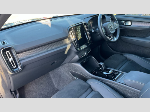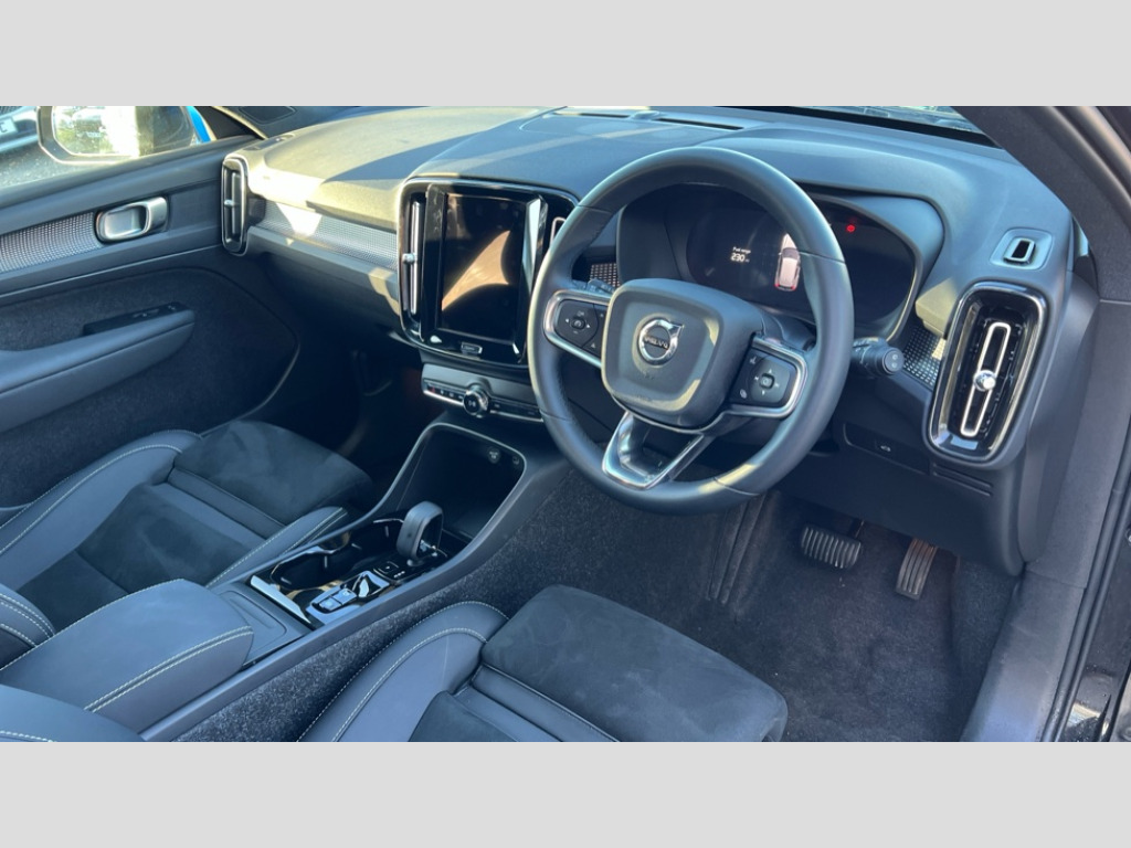 Volvo XC40 2.0 B3P Plus Dark 5dr Auto 12.3" Progressive Driver Display, 9" centre console portrait touch screen, Adjustable steering wheel force, Android auto (Wired), Apple carplay (wired), Bluetooth handsfree system, Driver alert control, Driver assistance (pilot assist and adaptive cruise control), Driver awareness - Blind spot information system with steer assist, cross traffic alert with autobrake and rear collision warning and mitigation, E-call, Front park assist, Google automotive services - Enabled entertainment apps, navigation with google maps, voice recognition with google assistant, Hands free power tailgate, Intelligent speed assistance, Lane keeping aid, Oncoming Lane Mitigation, Rear park assist, Speed sensitive steering, Volvo cars services with app - Driving journal, emergency and breakdown call, engine remote start, remote door locking/unlocking and vehicle dashboard, Wireless/Inductive Mobile Phone Charging, Automatic transmission with start/stop and manual change functions, Dynamic chassis, DAB Digital radio, Steering wheel mounted remote controls, Adaptive brake lights with high level LED brake lights, Auto dimming feature for exterior door mirrors, Auto dimming interior mirror, Automatic headlamp levelling, Automatic LED Headlights + Active high beam incorporating daytime running lights, Front aluminium tread plates, Front and rear electric windows, High gloss black front and rear skid plate, High gloss black front bumper deco, High gloss black mesh front grille with high gloss black surround, High gloss black window trim, Home safe and approach lighting, Integrated roof rails in high gloss black, LED front fog lights, Puddle lights, Rain sensor with automatic windscreen wiper activation, Rear side wing doors, Rear wiper, Roof antenna, Roof spoiler, Visible VIN plate, 12V socket in front tunnel console and luggage compartment, 2-Zone electronic climate control with CleanZone air quality system and pollen filter, 3 seat bench in 2nd row, 3 Spoke tailored steering wheel with chrome trim, 60/40 versatile split folding rear seat, Centre console cupholders and storage, Charcoal headlining, Connect textile/microtech upholstery, Flexible load floor and grocery bag holder, Floor mats, Front cabin courtesy lights, Front door pocket, front cupholder, ambient front door, rear reading, rear courtesy, instrument panel and tailgate lighting, Front footwell illumination, Front headrests, Front reading lights, Front seat cushion extensions, Front side step illumination (under door), Glovebox bag hook, Heated front seats, Height adjustable passenger seat, Height/reach adjustable steering column, High gloss centre tunnel deco, Illuminated glovebox, Illuminated luggage compartment, Illuminated vanity mirrors + ticket holder, Integrated waste bin, Isofix attachments on outer rear seats, Load cover, Load protection net, Multi directional lumbar support for driver and passenger seat, Power driver seat with memory + exterior mirrors memory, Rear armrest with cupholders, Rear headrests, Single front passenger seat, Underfloor cargo storage, Climate pack without heated front seats - XC40, 3x3 point rear seatbelts, City safety with steering support with Pedestrian + cyclist + front collision warning with full auto brake and rear auto brake, Driver and passenger airbags, Drivers knee airbag, Electronic parking brake with auto hold, First aid kit, Front and outer rear seatbelt reminder and pretensioners, Front seats SIPS airbags, Hill descent control, Hill start assist, Inflatable curtain, Passenger airbag cut-off device, Power child locks on rear doors, Road sign information display, Run off Road Protection, SIPS (Side Impact Protection System), Slippery road and hazard light alert, Stability and Traction Control with Spin control, Engine Drag Control and Corner Traction Control, Tyre pressure monitoring system, Vehicle deceleration control with Anti-lock Brake System, Electronic Brake Distribution and Emergency Brake Assist, Warning triangle, WHIPS whiplash protection system - front, 2 x Key integrated remote control central locking including with deadlocking system and auto open/close windows, Anti-theft alarm including immobiliser/volume sensor + level sensor, Keyless drive includes keyless entry and keyless start, Locking wheel nuts