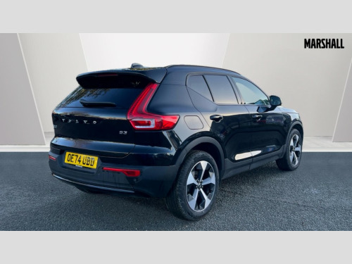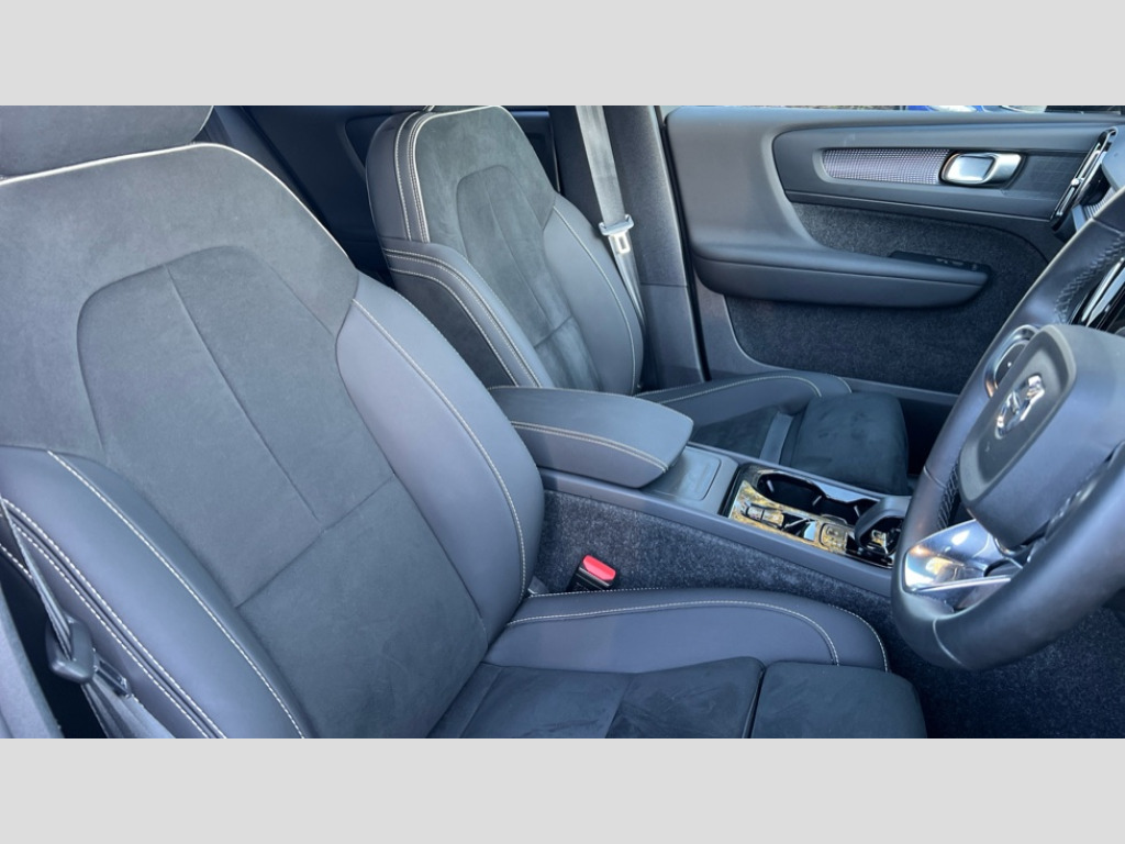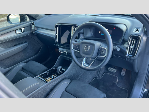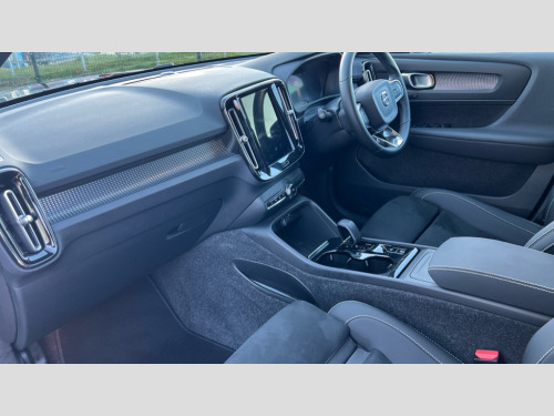 Volvo XC40 2.0 B3P Plus Dark 5dr Auto 12.3" Progressive Driver Display, 9" centre console portrait touch screen, Adjustable steering wheel force, Apple carplay (wired), Bluetooth handsfree system, Cruise control, Driver alert control, E-call, Front park assist, Google automotive services - Enabled entertainment apps, navigation with google maps, voice recognition with google assistant, Hands free power tailgate, Intelligent speed assistance, Lane keeping aid, Oncoming Lane Mitigation, Rear park assist, Rear park assist camera, Speed sensitive steering, Volvo cars services with app - Driving journal, emergency and breakdown call, engine remote start, remote door locking/unlocking and vehicle dashboard, Wireless/Inductive Mobile Phone Charging, Automatic transmission with start/stop and manual change functions, Dynamic chassis, DAB Digital radio, Steering wheel mounted remote controls, Adaptive brake lights with high level LED brake lights, Auto dimming interior mirror, Automatic headlamp levelling, Automatic LED Headlights + Active high beam incorporating daytime running lights, Front aluminium tread plates, Front and rear electric windows, High gloss black front and rear skid plate, High gloss black front bumper deco, High gloss black mesh front grille with high gloss black surround, High gloss black window trim, Home safe and approach lighting, Integrated roof rails in high gloss black, LED front fog lights, Puddle lights, Rain sensor with automatic windscreen wiper activation, Rear side wing doors, Rear wiper, Roof antenna, Roof spoiler, Visible VIN plate, 12V socket in front tunnel console and luggage compartment, 2-Zone electronic climate control with CleanZone air quality system and pollen filter, 3 seat bench in 2nd row, 3 Spoke tailored steering wheel with chrome trim, 60/40 versatile split folding rear seat, Centre console cupholders and storage, Flexible load floor and grocery bag holder, Floor mats, Front cabin courtesy lights, Front door pocket, front cupholder, ambient front door, rear reading, rear courtesy, instrument panel and tailgate lighting, Front footwell illumination, Front headrests, Front reading lights, Front seat cushion extensions, Front side step illumination (under door), Glovebox bag hook, Heated front seats, Height adjustable passenger seat, Height/reach adjustable steering column, High gloss centre tunnel deco, Illuminated glovebox, Illuminated luggage compartment, Illuminated vanity mirrors + ticket holder, Integrated waste bin, Isofix attachments on outer rear seats, Load cover, Load protection net, Multi directional lumbar support for driver and passenger seat, Power driver seat with memory + exterior mirrors memory, Rear armrest with cupholders, Rear headrests, Single front passenger seat, Underfloor cargo storage, Climate pack without heated front seats - XC40, 3x3 point rear seatbelts, City safety with steering support with Pedestrian + cyclist + front collision warning with full auto brake and rear auto brake, Driver and passenger airbags, Drivers knee airbag, Electronic parking brake with auto hold, First aid kit, Front and outer rear seatbelt reminder and pretensioners, Front seats SIPS airbags, Hill descent control, Hill start assist, Inflatable curtain, Passenger airbag cut-off device, Power child locks on rear doors, Road sign information display, Run off Road Protection, SIPS (Side Impact Protection System), Slippery road and hazard light alert, Stability and Traction Control with Spin control, Engine Drag Control and Corner Traction Control, Tyre pressure monitoring system, Vehicle deceleration control with Anti-lock Brake System, Electronic Brake Distribution and Emergency Brake Assist, Warning triangle, WHIPS whiplash protection system - front, 2 x Key integrated remote control central locking including with deadlocking system and auto open/close windows, Anti-theft alarm including immobiliser/volume sensor + level sensor, Keyless drive includes keyless entry and keyless start, Locking wheel nuts
