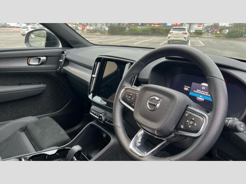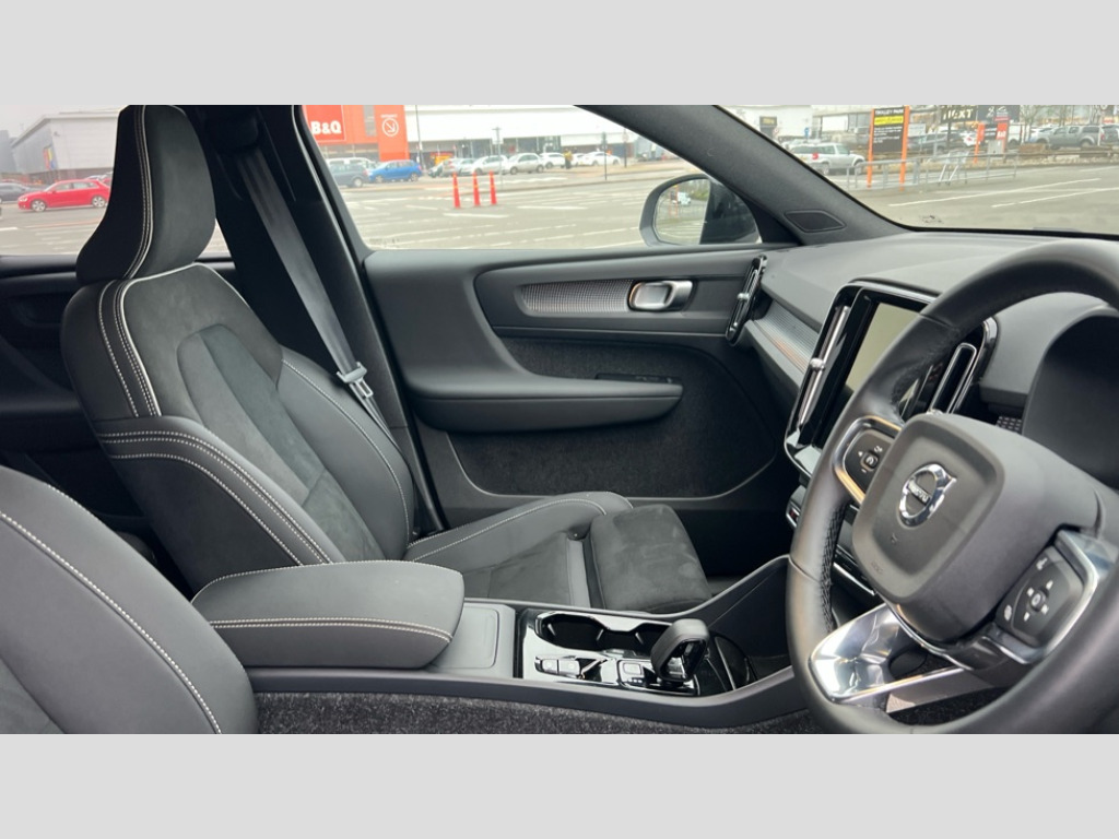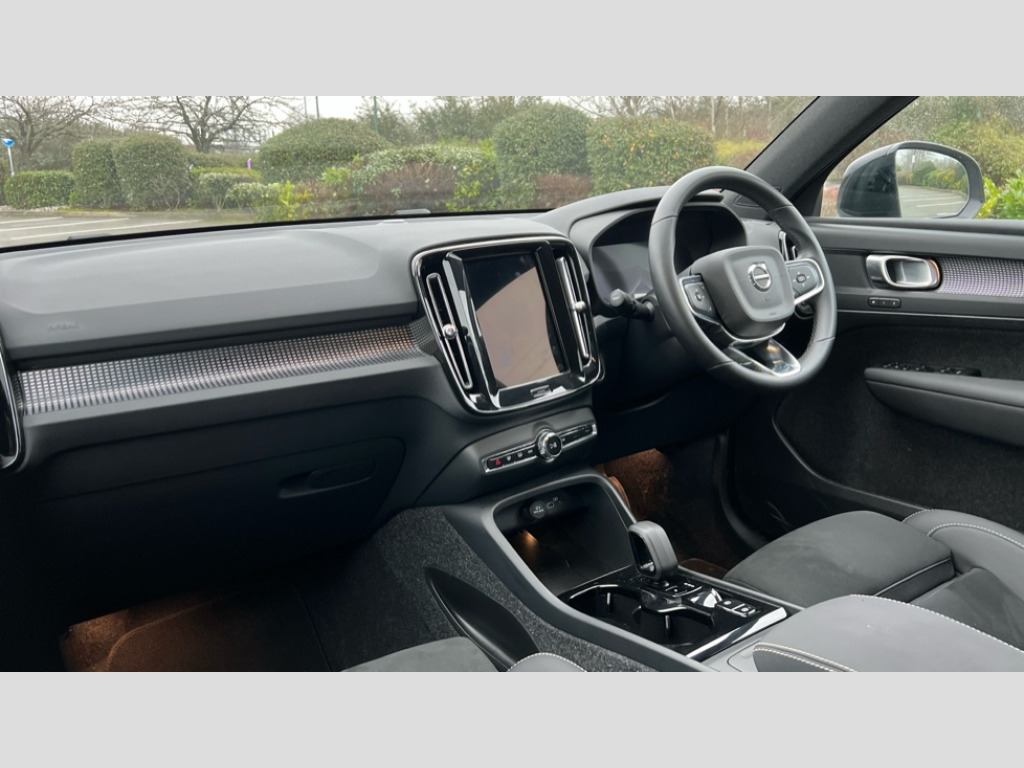 Volvo XC40 2.0 B3P Plus Dark 5dr Auto 12.3" Progressive Driver Display, 9" centre console portrait touch screen, Adjustable steering wheel force, Android auto (Wired), Apple carplay (wired), Bluetooth handsfree system, Driver alert control, Driver assistance (pilot assist and adaptive cruise control), Driver awareness - Blind spot information system with steer assist, cross traffic alert with autobrake and rear collision warning and mitigation, E-call, Front park assist, Google automotive services - Enabled entertainment apps, navigation with google maps, voice recognition with google assistant, Hands free power tailgate, Intelligent speed assistance, Lane keeping aid, Oncoming Lane Mitigation, Rear park assist, Speed sensitive steering, Volvo cars services with app - Driving journal, emergency and breakdown call, engine remote start, remote door locking/unlocking and vehicle dashboard, Wireless/Inductive Mobile Phone Charging, Automatic transmission with start/stop and manual change functions, Dynamic chassis, DAB Digital radio, Steering wheel mounted remote controls, Adaptive brake lights with high level LED brake lights, Auto dimming feature for exterior door mirrors, Auto dimming interior mirror, Automatic headlamp levelling, Automatic LED Headlights + Active high beam incorporating daytime running lights, Front aluminium tread plates, Front and rear electric windows, High gloss black front and rear skid plate, High gloss black front bumper deco, High gloss black mesh front grille with high gloss black surround, High gloss black window trim, Home safe and approach lighting, Integrated roof rails in high gloss black, LED front fog lights, Puddle lights, Rain sensor with automatic windscreen wiper activation, Rear side wing doors, Rear wiper, Roof antenna, Roof spoiler, Visible VIN plate, 12V socket in front tunnel console and luggage compartment, 2-Zone electronic climate control with CleanZone air quality system and pollen filter, 3 seat bench in 2nd row, 3 Spoke tailored steering wheel with chrome trim, 60/40 versatile split folding rear seat, Centre console cupholders and storage, Charcoal headlining, Connect textile/microtech upholstery, Flexible load floor and grocery bag holder, Floor mats, Front cabin courtesy lights, Front door pocket, front cupholder, ambient front door, rear reading, rear courtesy, instrument panel and tailgate lighting, Front footwell illumination, Front headrests, Front reading lights, Front seat cushion extensions, Front side step illumination (under door), Glovebox bag hook, Heated front seats, Height adjustable passenger seat, Height/reach adjustable steering column, High gloss centre tunnel deco, Illuminated glovebox, Illuminated luggage compartment, Illuminated vanity mirrors + ticket holder, Integrated waste bin, Isofix attachments on outer rear seats, Load cover, Load protection net, Multi directional lumbar support for driver and passenger seat, Power driver seat with memory + exterior mirrors memory, Rear armrest with cupholders, Rear headrests, Single front passenger seat, Underfloor cargo storage, Climate pack without heated front seats - XC40, 3x3 point rear seatbelts, City safety with steering support with Pedestrian + cyclist + front collision warning with full auto brake and rear auto brake, Driver and passenger airbags, Drivers knee airbag, Electronic parking brake with auto hold, First aid kit, Front and outer rear seatbelt reminder and pretensioners, Front seats SIPS airbags, Hill descent control, Hill start assist, Inflatable curtain, Passenger airbag cut-off device, Power child locks on rear doors, Road sign information display, Run off Road Protection, SIPS (Side Impact Protection System), Slippery road and hazard light alert, Stability and Traction Control with Spin control, Engine Drag Control and Corner Traction Control, Tyre pressure monitoring system, Vehicle deceleration control with Anti-lock Brake System, Electronic Brake Distribution and Emergency Brake Assist, Warning triangle, WHIPS whiplash protection system - front, 2 x Key integrated remote control central locking including with deadlocking system and auto open/close windows, Anti-theft alarm including immobiliser/volume sensor + level sensor, Keyless drive includes keyless entry and keyless start, Locking wheel nuts