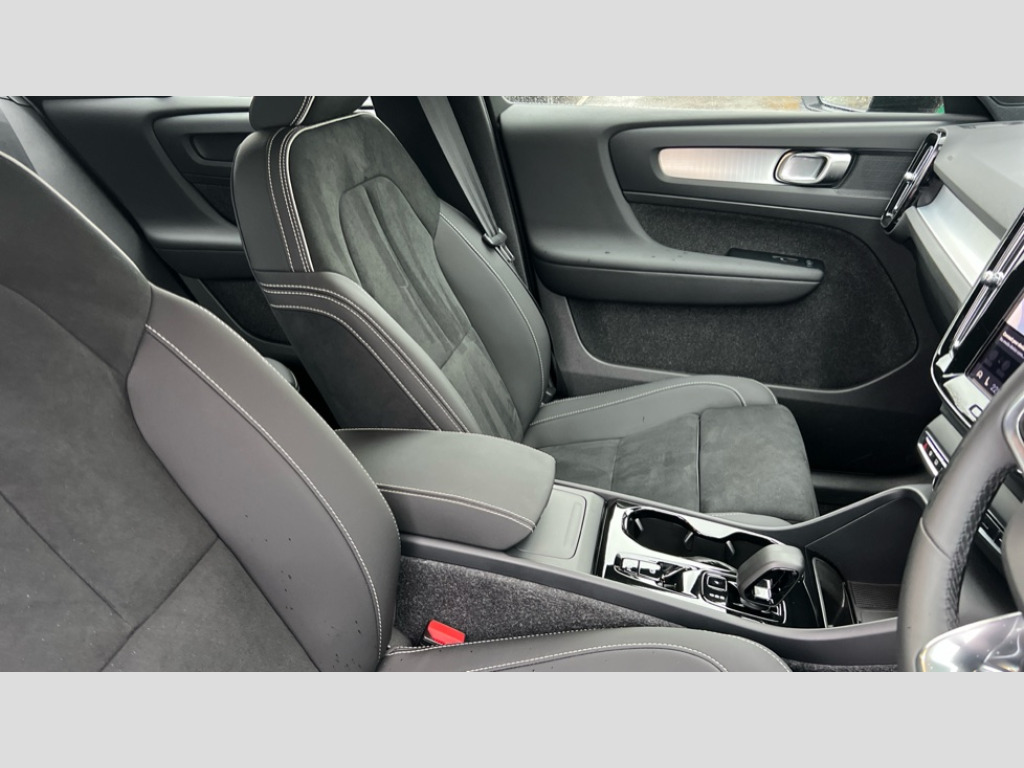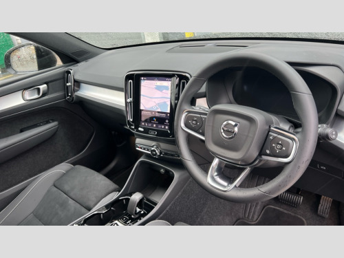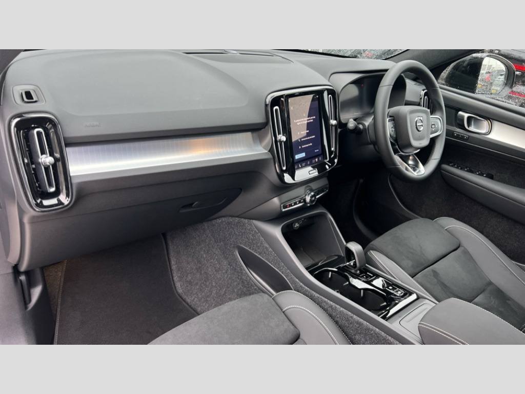 Volvo XC40 2.0 B3P Plus Dark 5dr Auto 12.3" Progressive Driver Display, 9" centre console portrait touch screen, Adjustable steering wheel force, Android auto (Wired), Apple carplay (wired), Bluetooth handsfree system, Driver alert control, Driver assistance (pilot assist and adaptive cruise control), Driver awareness - Blind spot information system with steer assist, cross traffic alert with autobrake and rear collision warning and mitigation, E-call, Front and rear parking sensors, Front park assist, Google automotive services - Enabled entertainment apps, navigation with google maps, voice recognition with google assistant, Hands free power tailgate, Intelligent speed assistance, Lane keeping aid, Oncoming Lane Mitigation, Speed sensitive steering, Volvo cars services with app - Driving journal, emergency and breakdown call, engine remote start, remote door locking/unlocking and vehicle dashboard, Wireless/Inductive Mobile Phone Charging, Automatic transmission with start/stop and manual change functions, Dynamic chassis, DAB Digital radio, Steering wheel mounted remote controls, Adaptive brake lights with high level LED brake lights, Auto dimming feature for exterior door mirrors, Auto dimming interior mirror, Auto folding and heated power door mirrors, Automatic headlamp levelling, Automatic LED Headlights + Active high beam incorporating daytime running lights, Front aluminium tread plates, Front and rear electric windows, High gloss black front and rear skid plate, High gloss black front bumper deco, High gloss black mesh front grille with high gloss black surround, High gloss black window trim, Home safe and approach lighting, Integrated roof rails in high gloss black, LED front fog lights, Puddle lights, Rain sensor with automatic windscreen wiper activation, Rear side wing doors, Rear wiper, Roof antenna, Roof spoiler, Visible VIN plate, 12V socket in front tunnel console and luggage compartment, 2-Zone electronic climate control with CleanZone air quality system and pollen filter, 3 seat bench in 2nd row, 3 Spoke tailored steering wheel with chrome trim, 60/40 versatile split folding rear seat, Centre console cupholders and storage, Charcoal carpet and floor mats, Charcoal headlining, Connect suede textile/microtech upholstery, Flexible load floor and grocery bag holder, Front headrests, Front seat cushion extensions, Glovebox bag hook, Heated front seats, Height adjustable passenger seat, Height/reach adjustable steering column, High gloss centre tunnel deco, High level illumination - Front door pocket, front side step (under door), tailgate, instrument panel, front door inlay, rear courtesy&reading lights, Integrated waste bin, Isofix attachments on outer rear seats, Load cover, Load protection net, Mid level illumination - Front footwell, luggage & glovebox compartment,front cabin courtesy & reading lights,illuminated vanity mirrors+ticket holder, Multi directional lumbar support for driver and passenger seat, Power driver seat with memory + exterior mirrors memory, Rear armrest with cupholders, Rear headrests, Single front passenger seat, Underfloor luggage compartment storage, Climate pack without heated front seats - XC40, 3x3 point rear seatbelts, City safety with steering support with Pedestrian + cyclist + front collision warning with full auto brake and rear auto brake, Driver and passenger airbags, Drivers knee airbag, Electronic parking brake with auto hold, First aid kit, Front and outer rear seatbelt reminder and pretensioners, Front seats SIPS airbags, Hill descent control - Off-road drive mode, Hill start assist, IC (Inflatable Curtains) - Full Length, Passenger airbag cut-off device, Power child locks on rear doors, Road sign information display, Run off Road Protection, SIPS (Side Impact Protection System), Slippery road and hazard light alert, Stability and Traction Control with Spin control, Engine Drag Control and Corner Traction Control, Tyre pressure monitoring system, Vehicle deceleration control with Anti-lock Brake System, Electronic Brake Distribution and Emergency Brake Assist, Warning triangle, WHIPS whiplash protection system - front, 2 x Key integrated remote control central locking including with deadlocking system and auto open/close windows, Anti-theft alarm including immobiliser/volume sensor + level sensor, Keyless drive includes keyless entry and keyless start, Locking wheel nuts