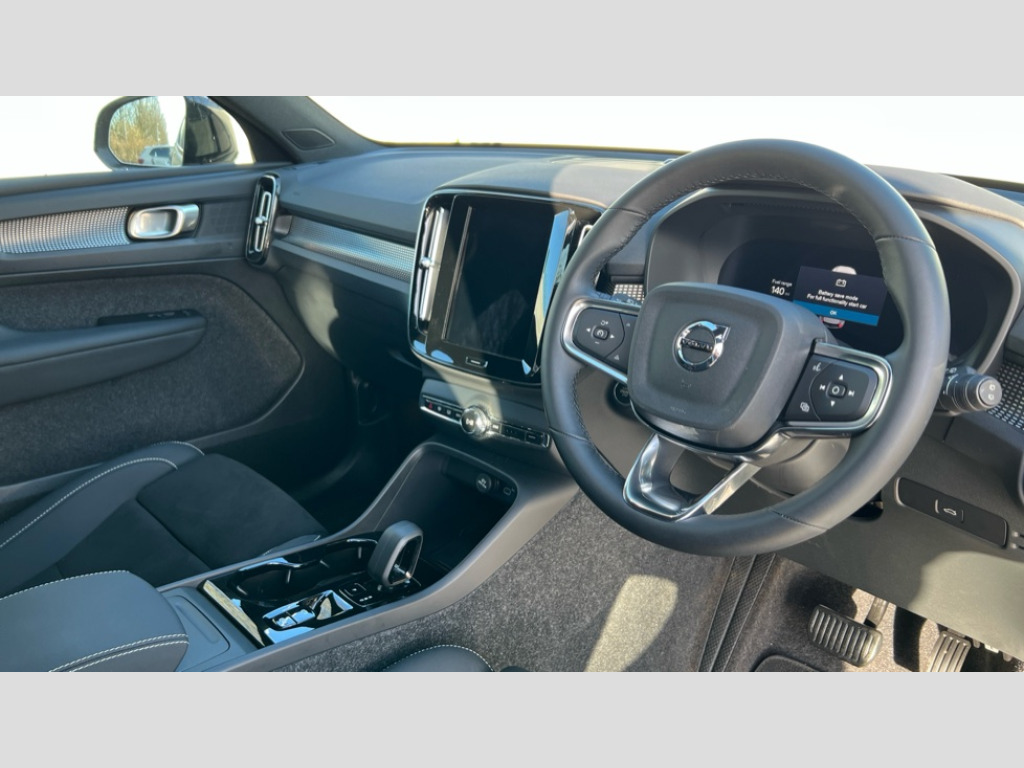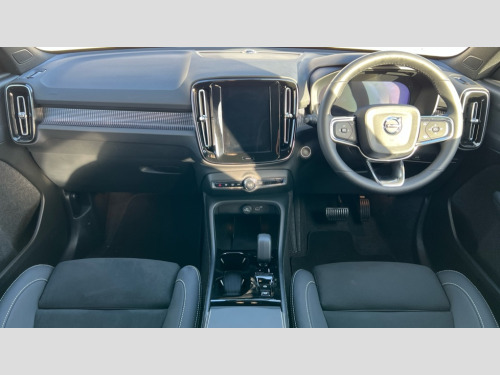 Volvo XC40 2.0 B3P Plus Dark 5dr Auto 12.3" Progressive Driver Display, 9" centre console portrait touch screen, Adjustable steering wheel force, Android auto (Wired), Apple carplay (wired), Bluetooth handsfree system, Driver alert control, Driver assistance (pilot assist and adaptive cruise control), Driver awareness - Blind spot information system with steer assist, cross traffic alert with autobrake and rear collision warning and mitigation, E-call, Front park assist, Google automotive services - Enabled entertainment apps, navigation with google maps, voice recognition with google assistant, Hands free power tailgate, Intelligent speed assistance, Lane keeping aid, Oncoming Lane Mitigation, Rear park assist, Speed sensitive steering, Volvo cars services with app - Driving journal, emergency and breakdown call, engine remote start, remote door locking/unlocking and vehicle dashboard, Wireless/Inductive Mobile Phone Charging, Automatic transmission with start/stop and manual change functions, Dynamic chassis, DAB Digital radio, Steering wheel mounted remote controls, Adaptive brake lights with high level LED brake lights, Auto dimming feature for exterior door mirrors, Auto dimming interior mirror, Automatic headlamp levelling, Automatic LED Headlights + Active high beam incorporating daytime running lights, Front aluminium tread plates, Front and rear electric windows, High gloss black front and rear skid plate, High gloss black front bumper deco, High gloss black mesh front grille with high gloss black surround, High gloss black window trim, Home safe and approach lighting, Integrated roof rails in high gloss black, LED front fog lights, Puddle lights, Rain sensor with automatic windscreen wiper activation, Rear side wing doors, Rear wiper, Roof antenna, Roof spoiler, Visible VIN plate, 12V socket in front tunnel console and luggage compartment, 2-Zone electronic climate control with CleanZone air quality system and pollen filter, 3 seat bench in 2nd row, 3 Spoke tailored steering wheel with chrome trim, 60/40 versatile split folding rear seat, Centre console cupholders and storage, Charcoal headlining, Connect textile/microtech upholstery, Flexible load floor and grocery bag holder, Floor mats, Front cabin courtesy lights, Front door pocket, front cupholder, ambient front door, rear reading, rear courtesy, instrument panel and tailgate lighting, Front footwell illumination, Front headrests, Front reading lights, Front seat cushion extensions, Front side step illumination (under door), Glovebox bag hook, Heated front seats, Height adjustable passenger seat, Height/reach adjustable steering column, High gloss centre tunnel deco, Illuminated glovebox, Illuminated luggage compartment, Illuminated vanity mirrors + ticket holder, Integrated waste bin, Isofix attachments on outer rear seats, Load cover, Load protection net, Multi directional lumbar support for driver and passenger seat, Power driver seat with memory + exterior mirrors memory, Rear armrest with cupholders, Rear headrests, Single front passenger seat, Underfloor cargo storage, Climate pack without heated front seats - XC40, 3x3 point rear seatbelts, City safety with steering support with Pedestrian + cyclist + front collision warning with full auto brake and rear auto brake, Driver and passenger airbags, Drivers knee airbag, Electronic parking brake with auto hold, First aid kit, Front and outer rear seatbelt reminder and pretensioners, Front seats SIPS airbags, Hill descent control, Hill start assist, Inflatable curtain, Passenger airbag cut-off device, Power child locks on rear doors, Road sign information display, Run off Road Protection, SIPS (Side Impact Protection System), Slippery road and hazard light alert, Stability and Traction Control with Spin control, Engine Drag Control and Corner Traction Control, Tyre pressure monitoring system, Vehicle deceleration control with Anti-lock Brake System, Electronic Brake Distribution and Emergency Brake Assist, Warning triangle, WHIPS whiplash protection system - front, 2 x Key integrated remote control central locking including with deadlocking system and auto open/close windows, Anti-theft alarm including immobiliser/volume sensor + level sensor, Keyless drive includes keyless entry and keyless start, Locking wheel nuts