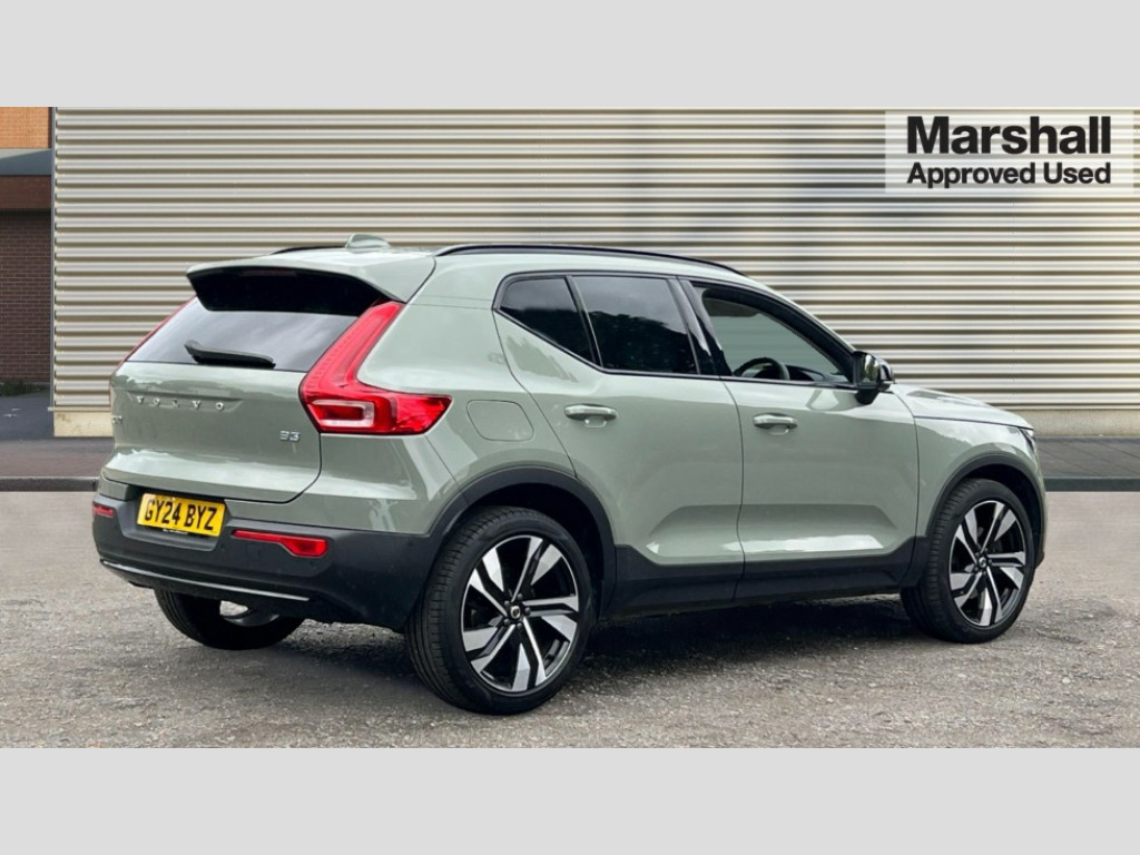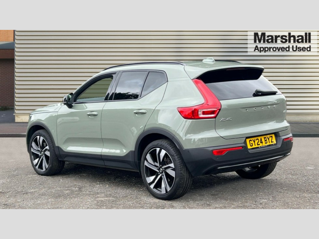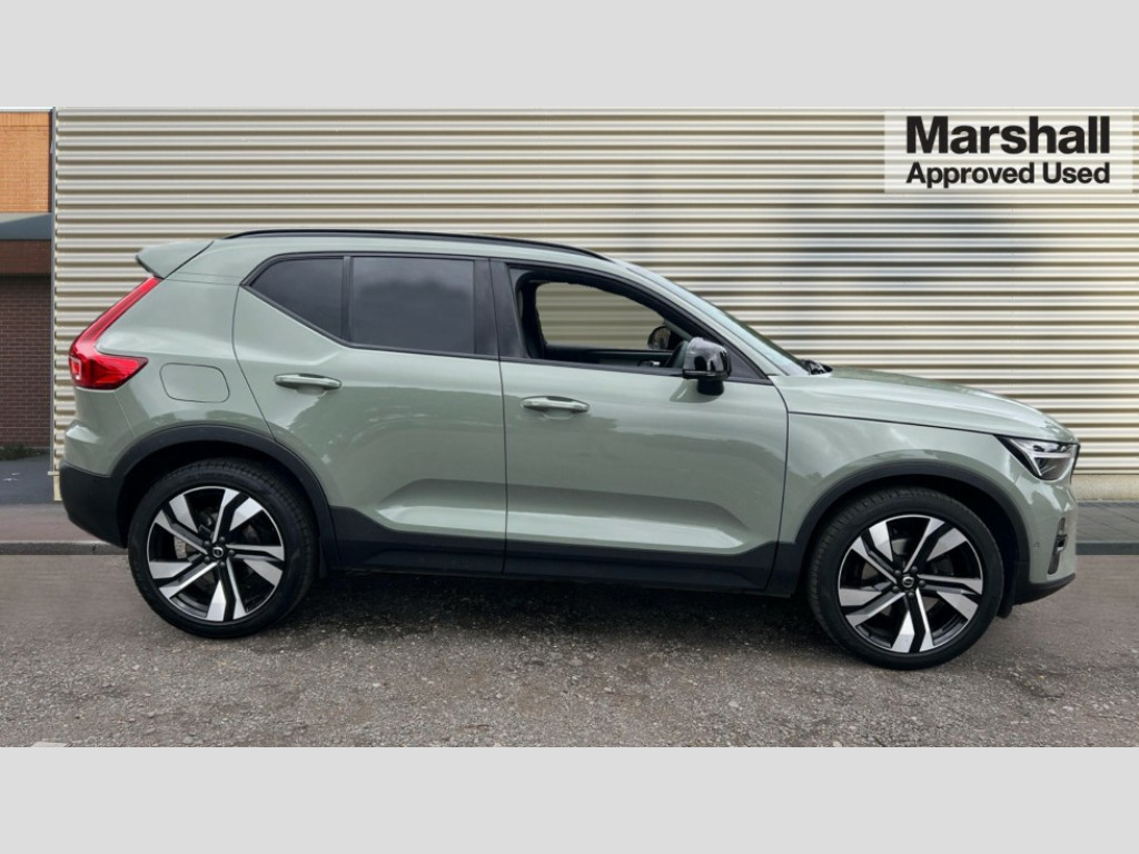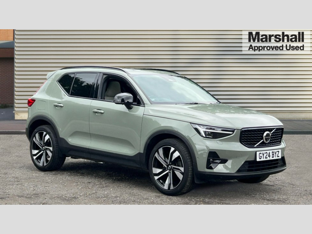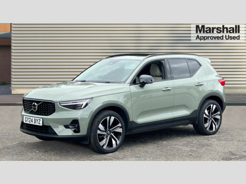 Volvo XC40 2.0 B3P Ultimate Dark 5dr Auto 12.3" Progressive Driver Display, 360 degree surround view parking camera with side proximity sensors, 9" centre console portrait touch screen, Adjustable steering wheel force, Bluetooth hands free telephone kit, E-call, Front park assist, Google automatic services - Nav with google maps, apple carplay/android auto, voice recognition with google assistant, Hands free power tailgate, Intelligent speed assistance, Lane keep assist with driver alert control, Oncoming Lane Mitigation, Rear park assist, Speed sensitive steering, Wireless/Inductive Mobile Phone Charging, Dynamic chassis, DAB Digital radio, Premium Sound by Harman Kardon, Dolby Pro Logic II Surround Sound, Dirac Unison,12 speakers/600W and subwoofer, Steering wheel mounted remote controls, Active bending pixel LED headlights with adaptive shadow technology, Active high beam incorporating daytime running lights, Adaptive brake lights with high level LED brake lights, Auto dimming interior mirror, Automatic headlamp levelling, Dark tinted windows for rear door side windows and cargo compartment, Front aluminium tread plates, Front and rear electric windows, Headlight cleaning system, High gloss black front and rear skid plate, High gloss black mesh front grille with high gloss black surround, High gloss black window trim, Home safe and approach lighting, Integrated roof rails in high gloss black, LED front fog lights, Power glass tilt and slide panoramic sunroof with sun curtain, Puddle lights, Rain sensor with automatic windscreen wiper activation, Rear side wing doors, Rear wiper, Roof antenna, Roof spoiler, Visible VIN plate, 12V socket in front tunnel console and luggage compartment, 2-Zone electronic climate control with CleanZone air quality system and pollen filter, 3 seat bench in 2nd row, 3 Spoke tailored steering wheel with chrome trim, 60/40 versatile split folding rear seat, A-pillar parking ticket holder, Centre console cupholders and storage, Flexible load floor and grocery bag holder, Floor mats, Front door pocket, front cupholder, ambient front door, rear reading, rear courtesy, instrument panel and tailgate lighting, Front footwell illumination, Front headrests, Front reading light and theatre lighting, Front seat cushion extensions, Front tunnel pocket, Glovebox bag hook, Heated front seats, Height adjustable passenger seat, Height/reach adjustable steering column, High gloss centre tunnel deco, Illuminated glovebox, Illuminated luggage compartment, Illuminated vanity mirrors, Integrated waste bin, Isofix attachments on outer rear seats, Load protection net, Multi directional lumbar support, Power driver seat with memory + exterior mirrors memory, Power folding rear headrests, Power passenger seat, Rear armrest / integral cup holders / storage tray, Single front passenger seat, Underfloor cargo storage, Climate pack without heated front seats - XC40, Driver assist pack - XC40, 3x3 point rear seatbelts, City safety with steering support with Pedestrian + cyclist + front collision warning with full auto brake and rear auto brake, Drivers knee airbag, Dual stage driver/passenger airbags, Electronic parking brake with auto hold, First aid kit, Front and outer rear seatbelt reminder and pretensioners, Front seats SIPS airbags, Hill descent control, Hill start assist, Inflatable curtain, Passenger airbag cut-off device, Power child locks on rear doors, Road sign information display, Run off Road Mitigation, Run off Road Protection, SIPS (Side Impact Protection System), Slippery road and hazard light alert, Stability and Traction Control with Spin control, Engine Drag Control and Corner Traction Control, Tyre pressure monitoring system, Vehicle deceleration control with Anti-lock Brake System, Electronic Brake Distribution and Emergency Brake Assist, Warning triangle, WHIPS whiplash protection system - front, Anti-theft alarm including immobiliser/volume sensor + level sensor, Key integrated remote control central locking + fuel flap with deadlocking system and auto open/close power windows, Keyless drive includes keyless entry and keyless start, Locking wheel nuts