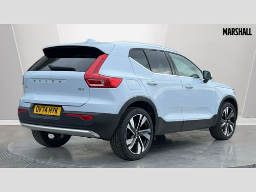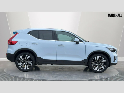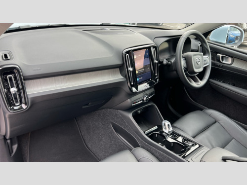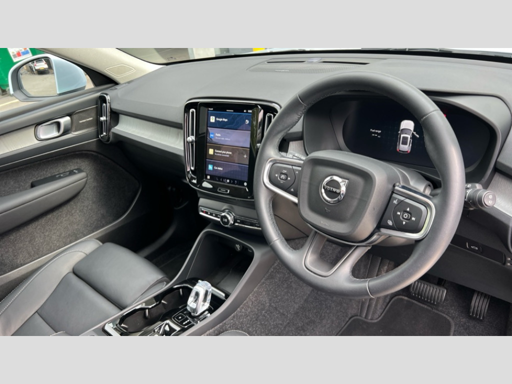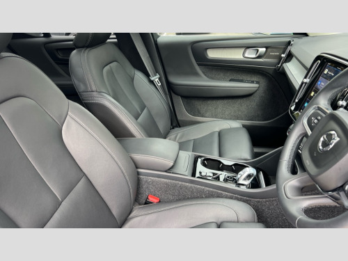 Volvo XC40 2.0 B3P Ultra Dark 5dr Auto 12.3" Progressive Driver Display, 360 degree surround view parking camera with side proximity sensors, 9" centre console portrait touch screen, Adjustable steering wheel force, Apple carplay (wired), Bluetooth handsfree system, Driver alert control, Driver assistance (pilot assist and adaptive cruise control), Driver awareness - Blind spot information system with steer assist, cross traffic alert with autobrake and rear collision warning and mitigation, E-call, Google automotive services - Enabled entertainment apps, navigation with google maps, voice recognition with google assistant, Hands free power tailgate, Intelligent speed assistance, Lane keeping aid, Oncoming Lane Mitigation, Speed sensitive steering, Volvo cars services with app - Driving journal, emergency and breakdown call, engine remote start, remote door locking/unlocking and vehicle dashboard, Wireless/Inductive Mobile Phone Charging, Automatic transmission with start/stop and manual change functions, Dynamic chassis, DAB Digital radio, Premium Sound by Harman Kardon, Dolby Pro Logic II Surround Sound, Dirac Unison,12 speakers/600W and subwoofer, Steering wheel mounted remote controls, Active bending pixel LED headlights with adaptive shadow technology, Active high beam incorporating daytime running lights, Adaptive brake lights with high level LED brake lights, Auto dimming feature for exterior door mirrors, Auto dimming interior mirror, Automatic headlamp levelling, Dark tinted windows - rear side windows and rear screen, Front aluminium tread plates, Front and rear electric windows, Headlight cleaning system, High gloss black front and rear skid plate, High gloss black front bumper deco, High gloss black mesh front grille with high gloss black surround, High gloss black window trim, Home safe and approach lighting, Integrated roof rails in high gloss black, LED front fog lights with cornering function, Power glass tilt and slide panoramic sunroof with sun curtain, Puddle lights, Rain sensor with automatic windscreen wiper activation, Rear side wing doors, Rear wiper, Roof antenna, Roof spoiler, Visible VIN plate, 12V socket in front tunnel console and luggage compartment, 2-Zone electronic climate control with CleanZone air quality system and pollen filter, 3 seat bench in 2nd row, 3 Spoke tailored steering wheel with chrome trim, 60/40 versatile split folding rear seat, A-pillar parking ticket holder, Centre console cupholders and storage, Flexible load floor and grocery bag holder, Floor mats, Front cabin courtesy lights, Front door pocket, front cupholder, ambient front door, rear reading, rear courtesy, instrument panel and tailgate lighting, Front footwell illumination, Front headrests, Front reading lights, Front seat cushion extensions, Front side step illumination (under door), Glovebox bag hook, Heated front seats, Height/reach adjustable steering column, High gloss centre tunnel deco, Illuminated glovebox, Illuminated luggage compartment, Illuminated vanity mirrors + ticket holder, Integrated waste bin, Isofix attachments on outer rear seats, Load cover, Load protection net, Multi directional lumbar support for driver and passenger seat, Power driver seat with memory + exterior mirrors memory, Power folding rear headrests, Power passenger seat, Rear armrest with cupholders, Single front passenger seat, Underfloor cargo storage, Climate pack without heated front seats - XC40, 3x3 point rear seatbelts, City safety with steering support with Pedestrian + cyclist + front collision warning with full auto brake and rear auto brake, Driver and passenger airbags, Drivers knee airbag, Electronic parking brake with auto hold, First aid kit, Front and outer rear seatbelt reminder and pretensioners, Front seats SIPS airbags, Hill descent control, Hill start assist, Inflatable curtain, Passenger airbag cut-off device, Power child locks on rear doors, Road sign information display, Run off Road Protection, SIPS (Side Impact Protection System), Slippery road and hazard light alert, Stability and Traction Control with Spin control, Engine Drag Control and Corner Traction Control, Tyre pressure monitoring system, Vehicle deceleration control with Anti-lock Brake System, Electronic Brake Distribution and Emergency Brake Assist, Warning triangle, WHIPS whiplash protection system - front, 2 x Key integrated remote control central locking including with deadlocking system and auto open/close windows and sunroof, Anti-theft alarm including immobiliser/volume sensor + level sensor, Keyless drive includes keyless entry and keyless start, Locking wheel nuts