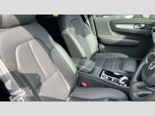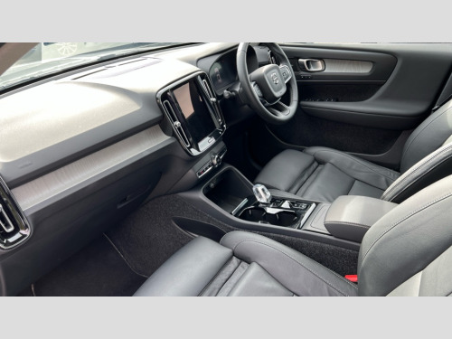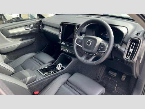 Volvo XC40 2.0 B3P Ultra Dark 5dr Auto 12.3" Progressive Driver Display, 360 degree surround view parking camera with side proximity sensors, 9" centre console portrait touch screen, Adjustable steering wheel force, Apple carplay (wired), Bluetooth handsfree system, Driver alert control, Driver assistance (pilot assist and adaptive cruise control), Driver awareness - Blind spot information system with steer assist, cross traffic alert with autobrake and rear collision warning and mitigation, E-call, Google automotive services - Enabled entertainment apps, navigation with google maps, voice recognition with google assistant, Hands free power tailgate, Intelligent speed assistance, Lane keeping aid, Oncoming Lane Mitigation, Speed sensitive steering, Volvo cars services with app - Driving journal, emergency and breakdown call, engine remote start, remote door locking/unlocking and vehicle dashboard, Wireless/Inductive Mobile Phone Charging, Automatic transmission with start/stop and manual change functions, Dynamic chassis, DAB Digital radio, Premium Sound by Harman Kardon, Dolby Pro Logic II Surround Sound, Dirac Unison,12 speakers/600W and subwoofer, Steering wheel mounted remote controls, Active bending pixel LED headlights with adaptive shadow technology, Active high beam incorporating daytime running lights, Adaptive brake lights with high level LED brake lights, Auto dimming feature for exterior door mirrors, Auto dimming interior mirror, Automatic headlamp levelling, Dark tinted windows - rear side windows and rear screen, Front aluminium tread plates, Front and rear electric windows, Headlight cleaning system, High gloss black front and rear skid plate, High gloss black front bumper deco, High gloss black mesh front grille with high gloss black surround, High gloss black window trim, Home safe and approach lighting, Integrated roof rails in high gloss black, LED front fog lights with cornering function, Power glass tilt and slide panoramic sunroof with sun curtain, Puddle lights, Rain sensor with automatic windscreen wiper activation, Rear side wing doors, Rear wiper, Roof antenna, Roof spoiler, Visible VIN plate, 12V socket in front tunnel console and luggage compartment, 2-Zone electronic climate control with CleanZone air quality system and pollen filter, 3 seat bench in 2nd row, 3 Spoke tailored steering wheel with chrome trim, 60/40 versatile split folding rear seat, Centre console cupholders and storage, Flexible load floor and grocery bag holder, Floor mats, Front cabin courtesy lights, Front door pocket, front cupholder, ambient front door, rear reading, rear courtesy, instrument panel and tailgate lighting, Front footwell illumination, Front headrests, Front reading lights, Front seat cushion extensions, Front side step illumination (under door), Glovebox bag hook, Heated front seats, Height/reach adjustable steering column, High gloss centre tunnel deco, Illuminated glovebox, Illuminated luggage compartment, Illuminated vanity mirrors + ticket holder, Integrated waste bin, Isofix attachments on outer rear seats, Load cover, Load protection net, Multi directional lumbar support for driver and passenger seat, Power driver seat with memory + exterior mirrors memory, Power folding rear headrests, Power passenger seat, Rear armrest with cupholders, Single front passenger seat, Underfloor cargo storage, Climate pack without heated front seats - XC40, 3x3 point rear seatbelts, City safety with steering support with Pedestrian + cyclist + front collision warning with full auto brake and rear auto brake, Driver and passenger airbags, Drivers knee airbag, Electronic parking brake with auto hold, First aid kit, Front and outer rear seatbelt reminder and pretensioners, Front seats SIPS airbags, Hill descent control, Hill start assist, Inflatable curtain, Passenger airbag cut-off device, Power child locks on rear doors, Road sign information display, Run off Road Protection, SIPS (Side Impact Protection System), Slippery road and hazard light alert, Stability and Traction Control with Spin control, Engine Drag Control and Corner Traction Control, Tyre pressure monitoring system, Vehicle deceleration control with Anti-lock Brake System, Electronic Brake Distribution and Emergency Brake Assist, Warning triangle, WHIPS whiplash protection system - front, 2 x Key integrated remote control central locking including with deadlocking system and auto open/close windows and sunroof, Anti-theft alarm including immobiliser/volume sensor + level sensor, Keyless drive includes keyless entry and keyless start, Locking wheel nuts