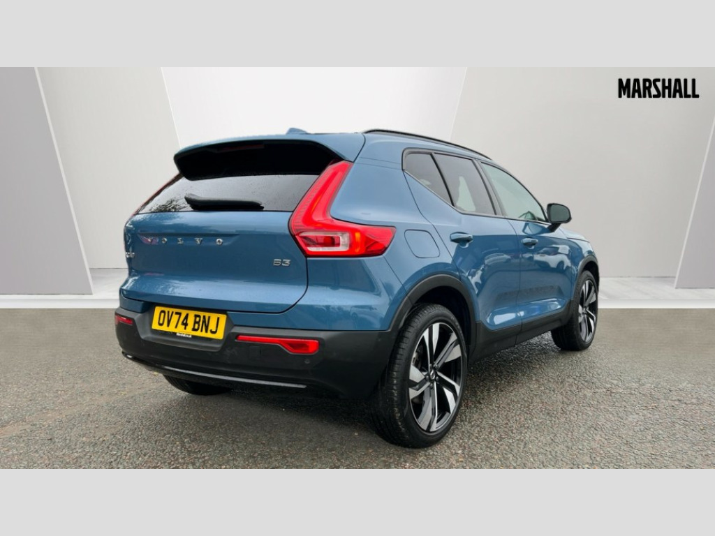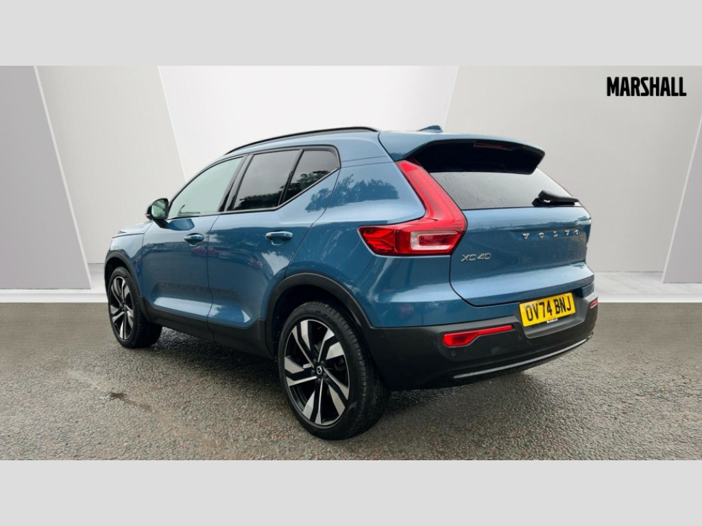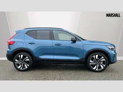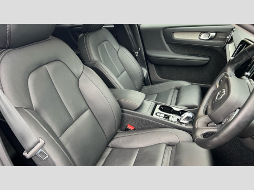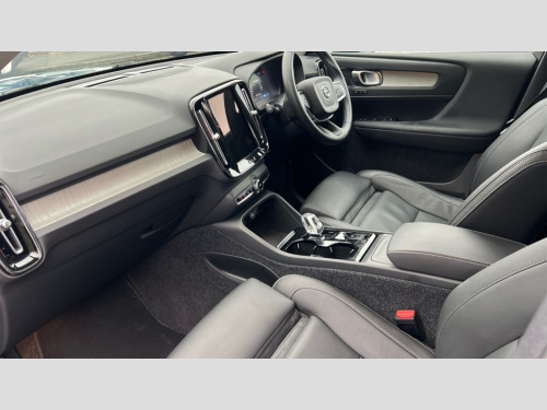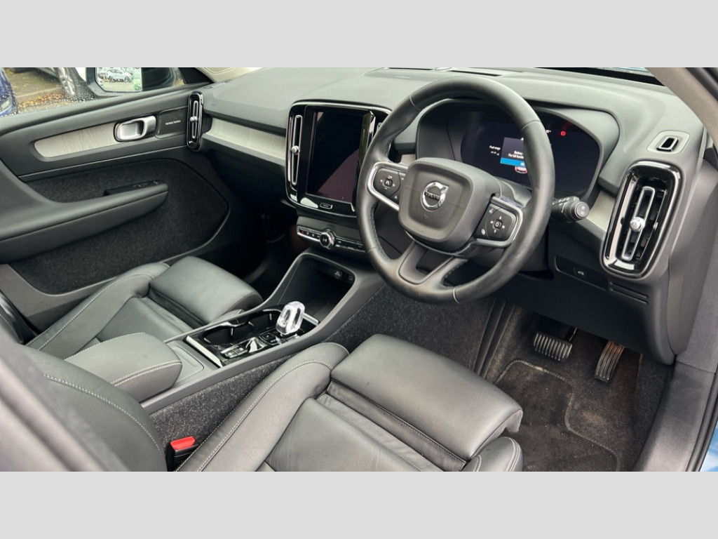 Volvo XC40 2.0 B3P Ultra Dark 5dr Auto 12.3" Progressive Driver Display, 360 degree surround view parking camera with side proximity sensors, 9" centre console portrait touch screen, Adjustable steering wheel force, Apple carplay (wired), Bluetooth handsfree system, Driver alert control, Driver assistance (pilot assist and adaptive cruise control), Driver awareness - Blind spot information system with steer assist, cross traffic alert with autobrake and rear collision warning and mitigation, E-call, Google automotive services - Enabled entertainment apps, navigation with google maps, voice recognition with google assistant, Hands free power tailgate, Intelligent speed assistance, Lane keeping aid, Oncoming Lane Mitigation, Speed sensitive steering, Volvo cars services with app - Driving journal, emergency and breakdown call, engine remote start, remote door locking/unlocking and vehicle dashboard, Wireless/Inductive Mobile Phone Charging, Automatic transmission with start/stop and manual change functions, Dynamic chassis, DAB Digital radio, Premium Sound by Harman Kardon, Dolby Pro Logic II Surround Sound, Dirac Unison,12 speakers/600W and subwoofer, Steering wheel mounted remote controls, Active bending pixel LED headlights with adaptive shadow technology, Active high beam incorporating daytime running lights, Adaptive brake lights with high level LED brake lights, Auto dimming feature for exterior door mirrors, Auto dimming interior mirror, Automatic headlamp levelling, Dark tinted windows - rear side windows and rear screen, Front aluminium tread plates, Front and rear electric windows, Headlight cleaning system, High gloss black front and rear skid plate, High gloss black front bumper deco, High gloss black mesh front grille with high gloss black surround, High gloss black window trim, Home safe and approach lighting, Integrated roof rails in high gloss black, LED front fog lights with cornering function, Power glass tilt and slide panoramic sunroof with sun curtain, Puddle lights, Rain sensor with automatic windscreen wiper activation, Rear side wing doors, Rear wiper, Roof antenna, Roof spoiler, Visible VIN plate, 12V socket in front tunnel console and luggage compartment, 2-Zone electronic climate control with CleanZone air quality system and pollen filter, 3 seat bench in 2nd row, 3 Spoke tailored steering wheel with chrome trim, 60/40 versatile split folding rear seat, Centre console cupholders and storage, Flexible load floor and grocery bag holder, Floor mats, Front cabin courtesy lights, Front door pocket, front cupholder, ambient front door, rear reading, rear courtesy, instrument panel and tailgate lighting, Front footwell illumination, Front headrests, Front reading lights, Front seat cushion extensions, Front side step illumination (under door), Glovebox bag hook, Heated front seats, Height/reach adjustable steering column, High gloss centre tunnel deco, Illuminated glovebox, Illuminated luggage compartment, Illuminated vanity mirrors + ticket holder, Integrated waste bin, Isofix attachments on outer rear seats, Load cover, Load protection net, Multi directional lumbar support for driver and passenger seat, Power driver seat with memory + exterior mirrors memory, Power folding rear headrests, Power passenger seat, Rear armrest with cupholders, Single front passenger seat, Underfloor cargo storage, Climate pack without heated front seats - XC40, 3x3 point rear seatbelts, City safety with steering support with Pedestrian + cyclist + front collision warning with full auto brake and rear auto brake, Driver and passenger airbags, Drivers knee airbag, Electronic parking brake with auto hold, First aid kit, Front and outer rear seatbelt reminder and pretensioners, Front seats SIPS airbags, Hill descent control, Hill start assist, Inflatable curtain, Passenger airbag cut-off device, Power child locks on rear doors, Road sign information display, Run off Road Protection, SIPS (Side Impact Protection System), Slippery road and hazard light alert, Stability and Traction Control with Spin control, Engine Drag Control and Corner Traction Control, Tyre pressure monitoring system, Vehicle deceleration control with Anti-lock Brake System, Electronic Brake Distribution and Emergency Brake Assist, Warning triangle, WHIPS whiplash protection system - front, 2 x Key integrated remote control central locking including with deadlocking system and auto open/close windows and sunroof, Anti-theft alarm including immobiliser/volume sensor + level sensor, Keyless drive includes keyless entry and keyless start, Locking wheel nuts