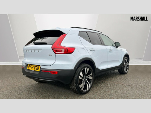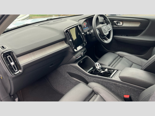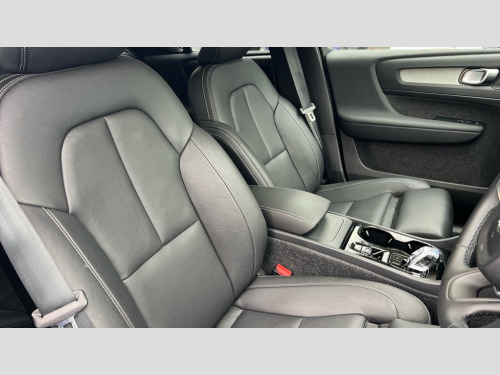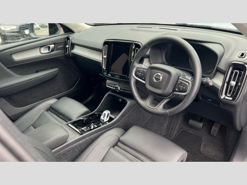 Volvo XC40 2.0 B3P Ultra Dark 5dr Auto 12.3" Progressive Driver Display, 360 degree surround view parking camera with side proximity sensors, 9" centre console portrait touch screen, Adjustable steering wheel force, Apple carplay (wired), Bluetooth handsfree system, Driver alert control, Driver assistance (pilot assist and adaptive cruise control), Driver awareness - Blind spot information system with steer assist, cross traffic alert with autobrake and rear collision warning and mitigation, E-call, Google automotive services - Enabled entertainment apps, navigation with google maps, voice recognition with google assistant, Hands free power tailgate, Intelligent speed assistance, Lane keeping aid, Oncoming Lane Mitigation, Speed sensitive steering, Volvo cars services with app - Driving journal, emergency and breakdown call, engine remote start, remote door locking/unlocking and vehicle dashboard, Wireless/Inductive Mobile Phone Charging, Automatic transmission with start/stop and manual change functions, Dynamic chassis, DAB Digital radio, Premium Sound by Harman Kardon, Dolby Pro Logic II Surround Sound, Dirac Unison,12 speakers/600W and subwoofer, Steering wheel mounted remote controls, Active bending pixel LED headlights with adaptive shadow technology, Active high beam incorporating daytime running lights, Adaptive brake lights with high level LED brake lights, Auto dimming feature for exterior door mirrors, Auto dimming interior mirror, Automatic headlamp levelling, Dark tinted windows - rear side windows and rear screen, Front aluminium tread plates, Front and rear electric windows, Headlight cleaning system, High gloss black front and rear skid plate, High gloss black front bumper deco, High gloss black mesh front grille with high gloss black surround, High gloss black window trim, Home safe and approach lighting, Integrated roof rails in high gloss black, LED front fog lights with cornering function, Power glass tilt and slide panoramic sunroof with sun curtain, Puddle lights, Rain sensor with automatic windscreen wiper activation, Rear side wing doors, Rear wiper, Roof antenna, Roof spoiler, Visible VIN plate, 12V socket in front tunnel console and luggage compartment, 2-Zone electronic climate control with CleanZone air quality system and pollen filter, 3 seat bench in 2nd row, 3 Spoke tailored steering wheel with chrome trim, 60/40 versatile split folding rear seat, A-pillar parking ticket holder, Centre console cupholders and storage, Flexible load floor and grocery bag holder, Floor mats, Front cabin courtesy lights, Front door pocket, front cupholder, ambient front door, rear reading, rear courtesy, instrument panel and tailgate lighting, Front footwell illumination, Front headrests, Front reading lights, Front seat cushion extensions, Front side step illumination (under door), Glovebox bag hook, Heated front seats, Height/reach adjustable steering column, High gloss centre tunnel deco, Illuminated glovebox, Illuminated luggage compartment, Illuminated vanity mirrors + ticket holder, Integrated waste bin, Isofix attachments on outer rear seats, Load cover, Load protection net, Multi directional lumbar support for driver and passenger seat, Power driver seat with memory + exterior mirrors memory, Power folding rear headrests, Power passenger seat, Rear armrest with cupholders, Single front passenger seat, Underfloor cargo storage, Climate pack without heated front seats - XC40, 3x3 point rear seatbelts, City safety with steering support with Pedestrian + cyclist + front collision warning with full auto brake and rear auto brake, Driver and passenger airbags, Drivers knee airbag, Electronic parking brake with auto hold, First aid kit, Front and outer rear seatbelt reminder and pretensioners, Front seats SIPS airbags, Hill descent control, Hill start assist, Inflatable curtain, Passenger airbag cut-off device, Power child locks on rear doors, Road sign information display, Run off Road Protection, SIPS (Side Impact Protection System), Slippery road and hazard light alert, Stability and Traction Control with Spin control, Engine Drag Control and Corner Traction Control, Tyre pressure monitoring system, Vehicle deceleration control with Anti-lock Brake System, Electronic Brake Distribution and Emergency Brake Assist, Warning triangle, WHIPS whiplash protection system - front, 2 x Key integrated remote control central locking including with deadlocking system and auto open/close windows and sunroof, Anti-theft alarm including immobiliser/volume sensor + level sensor, Keyless drive includes keyless entry and keyless start, Locking wheel nuts