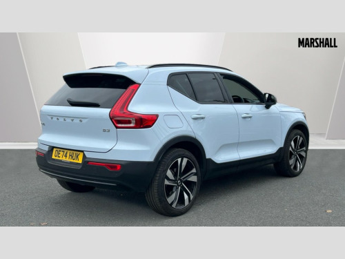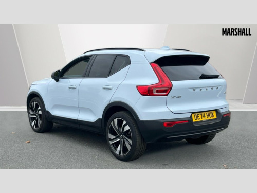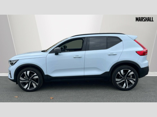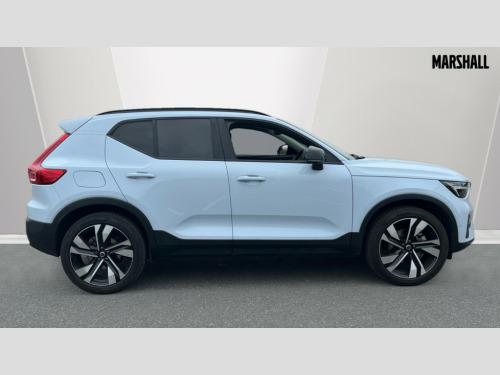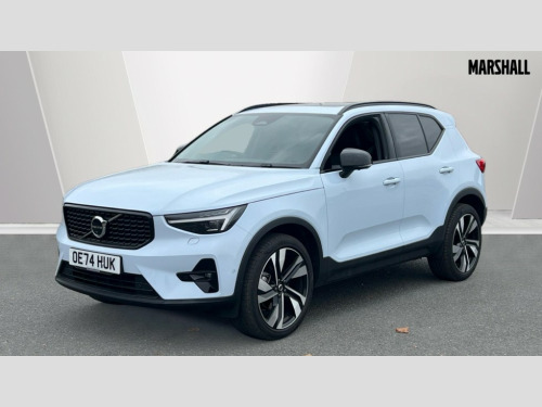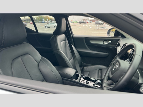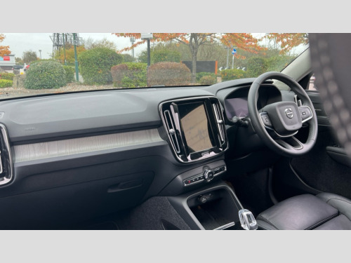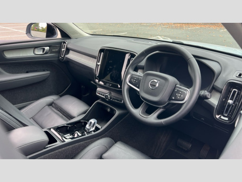 Volvo XC40 2.0 B3P Ultra Dark 5dr Auto 12.3" Progressive Driver Display, 360 degree surround view parking camera with side proximity sensors, 9" centre console portrait touch screen, Adjustable steering wheel force, Apple carplay (wired), Bluetooth handsfree system, Driver alert control, Driver assistance (pilot assist and adaptive cruise control), Driver awareness - Blind spot information system with steer assist, cross traffic alert with autobrake and rear collision warning and mitigation, E-call, Google automotive services - Enabled entertainment apps, navigation with google maps, voice recognition with google assistant, Hands free power tailgate, Intelligent speed assistance, Lane keeping aid, Oncoming Lane Mitigation, Speed sensitive steering, Volvo cars services with app - Driving journal, emergency and breakdown call, engine remote start, remote door locking/unlocking and vehicle dashboard, Wireless/Inductive Mobile Phone Charging, Automatic transmission with start/stop and manual change functions, Dynamic chassis, DAB Digital radio, Premium Sound by Harman Kardon, Dolby Pro Logic II Surround Sound, Dirac Unison,12 speakers/600W and subwoofer, Steering wheel mounted remote controls, Active bending pixel LED headlights with adaptive shadow technology, Active high beam incorporating daytime running lights, Adaptive brake lights with high level LED brake lights, Auto dimming feature for exterior door mirrors, Auto dimming interior mirror, Automatic headlamp levelling, Dark tinted windows - rear side windows and rear screen, Front aluminium tread plates, Front and rear electric windows, Headlight cleaning system, High gloss black front and rear skid plate, High gloss black front bumper deco, High gloss black mesh front grille with high gloss black surround, High gloss black window trim, Home safe and approach lighting, Integrated roof rails in high gloss black, LED front fog lights with cornering function, Power glass tilt and slide panoramic sunroof with sun curtain, Puddle lights, Rain sensor with automatic windscreen wiper activation, Rear side wing doors, Rear wiper, Roof antenna, Roof spoiler, Visible VIN plate, 12V socket in front tunnel console and luggage compartment, 2-Zone electronic climate control with CleanZone air quality system and pollen filter, 3 seat bench in 2nd row, 3 Spoke tailored steering wheel with chrome trim, 60/40 versatile split folding rear seat, Centre console cupholders and storage, Flexible load floor and grocery bag holder, Floor mats, Front cabin courtesy lights, Front door pocket, front cupholder, ambient front door, rear reading, rear courtesy, instrument panel and tailgate lighting, Front footwell illumination, Front headrests, Front reading lights, Front seat cushion extensions, Front side step illumination (under door), Glovebox bag hook, Heated front seats, Height/reach adjustable steering column, High gloss centre tunnel deco, Illuminated glovebox, Illuminated luggage compartment, Illuminated vanity mirrors + ticket holder, Integrated waste bin, Isofix attachments on outer rear seats, Load cover, Load protection net, Multi directional lumbar support for driver and passenger seat, Power driver seat with memory + exterior mirrors memory, Power folding rear headrests, Power passenger seat, Rear armrest with cupholders, Single front passenger seat, Underfloor cargo storage, Climate pack without heated front seats - XC40, 3x3 point rear seatbelts, City safety with steering support with Pedestrian + cyclist + front collision warning with full auto brake and rear auto brake, Driver and passenger airbags, Drivers knee airbag, Electronic parking brake with auto hold, First aid kit, Front and outer rear seatbelt reminder and pretensioners, Front seats SIPS airbags, Hill descent control, Hill start assist, Inflatable curtain, Passenger airbag cut-off device, Power child locks on rear doors, Road sign information display, Run off Road Protection, SIPS (Side Impact Protection System), Slippery road and hazard light alert, Stability and Traction Control with Spin control, Engine Drag Control and Corner Traction Control, Tyre pressure monitoring system, Vehicle deceleration control with Anti-lock Brake System, Electronic Brake Distribution and Emergency Brake Assist, Warning triangle, WHIPS whiplash protection system - front, 2 x Key integrated remote control central locking including with deadlocking system and auto open/close windows and sunroof, Anti-theft alarm including immobiliser/volume sensor + level sensor, Keyless drive includes keyless entry and keyless start, Locking wheel nuts