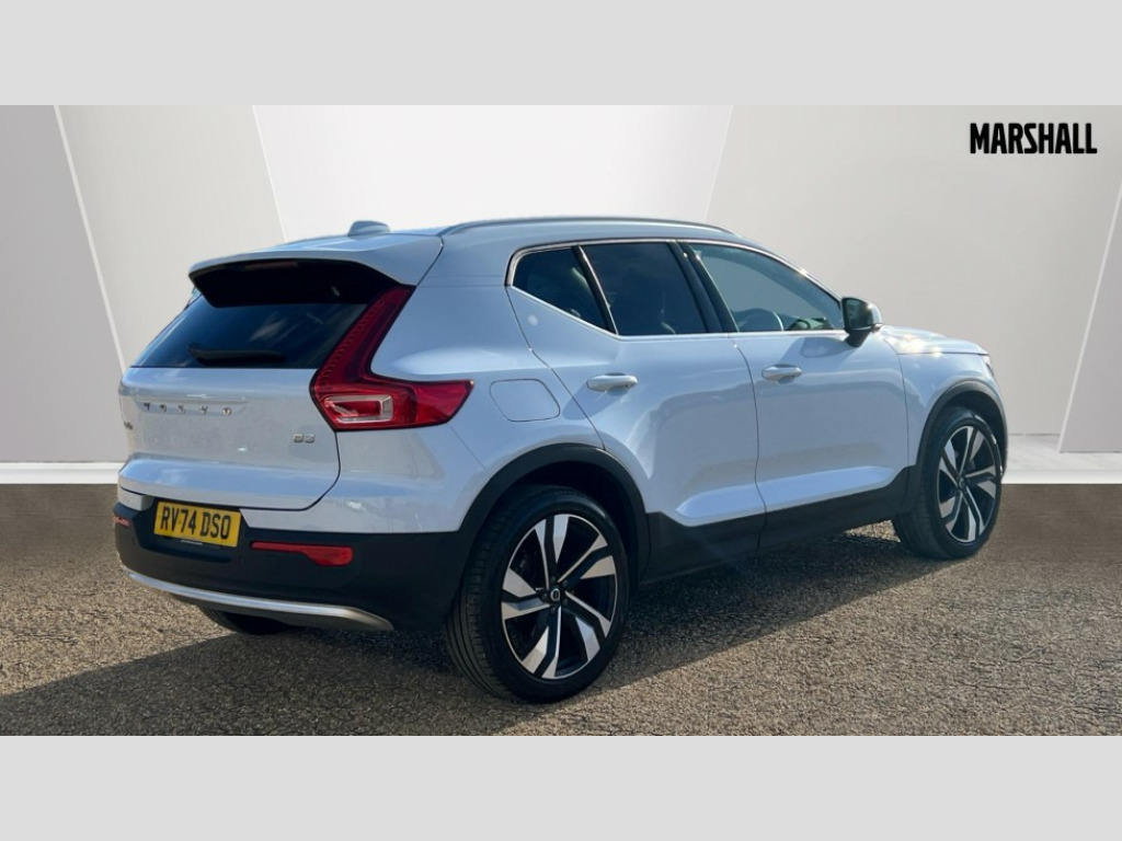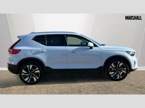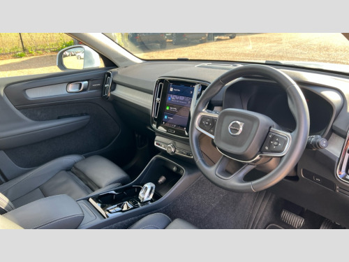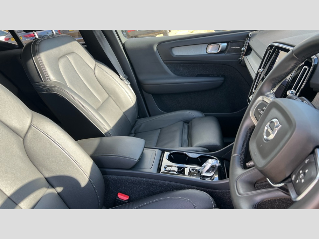 Volvo XC40 2.0 B3P Ultra Dark 5dr Auto 12.3" Progressive Driver Display, 360 degree surround view parking camera with side proximity sensors, 9" centre console portrait touch screen, Adjustable steering wheel force, Android auto (Wired), Apple carplay (wired), Bluetooth handsfree system, Driver alert control, Driver assistance (pilot assist and adaptive cruise control), Driver awareness - Blind spot information system with steer assist, cross traffic alert with autobrake and rear collision warning and mitigation, E-call, Front park assist, Google automotive services - Enabled entertainment apps, navigation with google maps, voice recognition with google assistant, Hands free power tailgate, Intelligent speed assistance, Lane keeping aid, Oncoming Lane Mitigation, Rear park assist, Speed sensitive steering, Volvo cars services with app - Driving journal, emergency and breakdown call, engine remote start, remote door locking/unlocking and vehicle dashboard, Wireless/Inductive Mobile Phone Charging, Automatic transmission with start/stop and manual change functions, Dynamic chassis, DAB Digital radio, Premium Sound by Harman Kardon, Dolby Pro Logic II Surround Sound, Dirac Unison,12 speakers/600W and subwoofer, Steering wheel mounted remote controls, Active bending pixel LED headlights with adaptive shadow technology, Active high beam incorporating daytime running lights, Adaptive brake lights with high level LED brake lights, Auto dimming feature for exterior door mirrors, Auto dimming interior mirror, Automatic headlamp levelling, Dark tinted windows - rear side windows and rear screen, Front aluminium tread plates, Front and rear electric windows, Headlight cleaning system, High gloss black front and rear skid plate, High gloss black front bumper deco, High gloss black mesh front grille with high gloss black surround, High gloss black window trim, Home safe and approach lighting, Integrated roof rails in high gloss black, LED front fog lights with cornering function, Power glass tilt and slide panoramic sunroof with sun curtain, Puddle lights, Rain sensor with automatic windscreen wiper activation, Rear side wing doors, Rear wiper, Roof antenna, Roof spoiler, Visible VIN plate, 12V socket in front tunnel console and luggage compartment, 2-Zone electronic climate control with CleanZone air quality system and pollen filter, 3 seat bench in 2nd row, 3 Spoke tailored steering wheel with chrome trim, 60/40 versatile split folding rear seat, Centre console cupholders and storage, Flexible load floor and grocery bag holder, Floor mats, Front cabin courtesy lights, Front door pocket, front cupholder, ambient front door, rear reading, rear courtesy, instrument panel and tailgate lighting, Front footwell illumination, Front headrests, Front reading lights, Front seat cushion extensions, Front side step illumination (under door), Glovebox bag hook, Heated front seats, Height/reach adjustable steering column, High gloss centre tunnel deco, Illuminated glovebox, Illuminated luggage compartment, Illuminated vanity mirrors + ticket holder, Integrated waste bin, Isofix attachments on outer rear seats, Load cover, Load protection net, Multi directional lumbar support for driver and passenger seat, Power driver seat with memory + exterior mirrors memory, Power folding rear headrests, Power passenger seat, Rear armrest with cupholders, Single front passenger seat, Underfloor cargo storage, Climate pack without heated front seats - XC40, 3x3 point rear seatbelts, City safety with steering support with Pedestrian + cyclist + front collision warning with full auto brake and rear auto brake, Driver and passenger airbags, Drivers knee airbag, Electronic parking brake with auto hold, First aid kit, Front and outer rear seatbelt reminder and pretensioners, Front seats SIPS airbags, Hill descent control, Hill start assist, Inflatable curtain, Passenger airbag cut-off device, Power child locks on rear doors, Road sign information display, Run off Road Protection, SIPS (Side Impact Protection System), Slippery road and hazard light alert, Stability and Traction Control with Spin control, Engine Drag Control and Corner Traction Control, Tyre pressure monitoring system, Vehicle deceleration control with Anti-lock Brake System, Electronic Brake Distribution and Emergency Brake Assist, Warning triangle, WHIPS whiplash protection system - front, 2 x Key integrated remote control central locking including with deadlocking system and auto open/close windows and sunroof, Anti-theft alarm including immobiliser/volume sensor + level sensor, Keyless drive includes keyless entry and keyless start, Locking wheel nuts