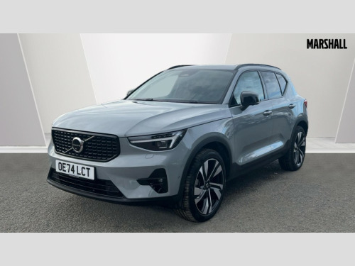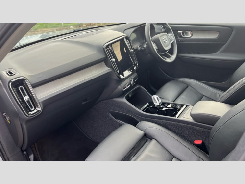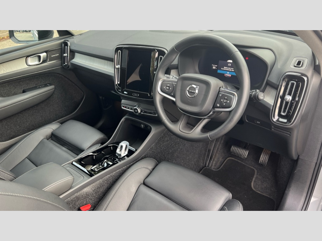 Volvo XC40 2.0 B3P Ultra Dark 5dr Auto 12.3" Progressive Driver Display, 360 degree surround view parking camera with side proximity sensors, 9" centre console portrait touch screen, Adjustable steering wheel force, Apple carplay (wired), Bluetooth handsfree system, Driver alert control, Driver assistance (pilot assist and adaptive cruise control), Driver awareness - Blind spot information system with steer assist, cross traffic alert with autobrake and rear collision warning and mitigation, E-call, Google automotive services - Enabled entertainment apps, navigation with google maps, voice recognition with google assistant, Hands free power tailgate, Intelligent speed assistance, Lane keeping aid, Oncoming Lane Mitigation, Speed sensitive steering, Volvo cars services with app - Driving journal, emergency and breakdown call, engine remote start, remote door locking/unlocking and vehicle dashboard, Wireless/Inductive Mobile Phone Charging, Automatic transmission with start/stop and manual change functions, Dynamic chassis, DAB Digital radio, Premium Sound by Harman Kardon, Dolby Pro Logic II Surround Sound, Dirac Unison,12 speakers/600W and subwoofer, Steering wheel mounted remote controls, Active bending pixel LED headlights with adaptive shadow technology, Active high beam incorporating daytime running lights, Adaptive brake lights with high level LED brake lights, Auto dimming feature for exterior door mirrors, Auto dimming interior mirror, Automatic headlamp levelling, Dark tinted windows - rear side windows and rear screen, Front aluminium tread plates, Front and rear electric windows, Headlight cleaning system, High gloss black front and rear skid plate, High gloss black front bumper deco, High gloss black mesh front grille with high gloss black surround, High gloss black window trim, Home safe and approach lighting, Integrated roof rails in high gloss black, LED front fog lights with cornering function, Power glass tilt and slide panoramic sunroof with sun curtain, Puddle lights, Rain sensor with automatic windscreen wiper activation, Rear side wing doors, Rear wiper, Roof antenna, Roof spoiler, Visible VIN plate, 12V socket in front tunnel console and luggage compartment, 2-Zone electronic climate control with CleanZone air quality system and pollen filter, 3 seat bench in 2nd row, 3 Spoke tailored steering wheel with chrome trim, 60/40 versatile split folding rear seat, Centre console cupholders and storage, Flexible load floor and grocery bag holder, Floor mats, Front cabin courtesy lights, Front door pocket, front cupholder, ambient front door, rear reading, rear courtesy, instrument panel and tailgate lighting, Front footwell illumination, Front headrests, Front reading lights, Front seat cushion extensions, Front side step illumination (under door), Glovebox bag hook, Heated front seats, Height/reach adjustable steering column, High gloss centre tunnel deco, Illuminated glovebox, Illuminated luggage compartment, Illuminated vanity mirrors + ticket holder, Integrated waste bin, Isofix attachments on outer rear seats, Load cover, Load protection net, Multi directional lumbar support for driver and passenger seat, Power driver seat with memory + exterior mirrors memory, Power folding rear headrests, Power passenger seat, Rear armrest with cupholders, Single front passenger seat, Underfloor cargo storage, Climate pack without heated front seats - XC40, 3x3 point rear seatbelts, City safety with steering support with Pedestrian + cyclist + front collision warning with full auto brake and rear auto brake, Driver and passenger airbags, Drivers knee airbag, Electronic parking brake with auto hold, First aid kit, Front and outer rear seatbelt reminder and pretensioners, Front seats SIPS airbags, Hill descent control, Hill start assist, Inflatable curtain, Passenger airbag cut-off device, Power child locks on rear doors, Road sign information display, Run off Road Protection, SIPS (Side Impact Protection System), Slippery road and hazard light alert, Stability and Traction Control with Spin control, Engine Drag Control and Corner Traction Control, Tyre pressure monitoring system, Vehicle deceleration control with Anti-lock Brake System, Electronic Brake Distribution and Emergency Brake Assist, Warning triangle, WHIPS whiplash protection system - front, 2 x Key integrated remote control central locking including with deadlocking system and auto open/close windows and sunroof, Anti-theft alarm including immobiliser/volume sensor + level sensor, Keyless drive includes keyless entry and keyless start, Locking wheel nuts