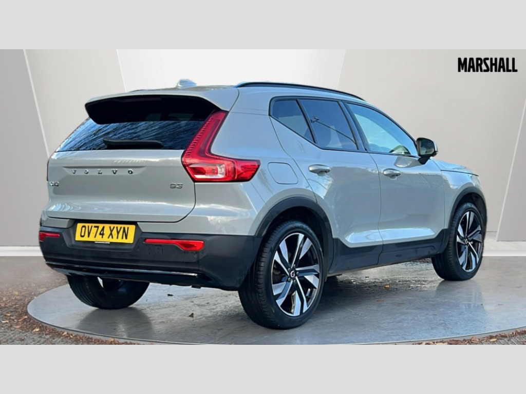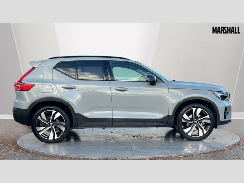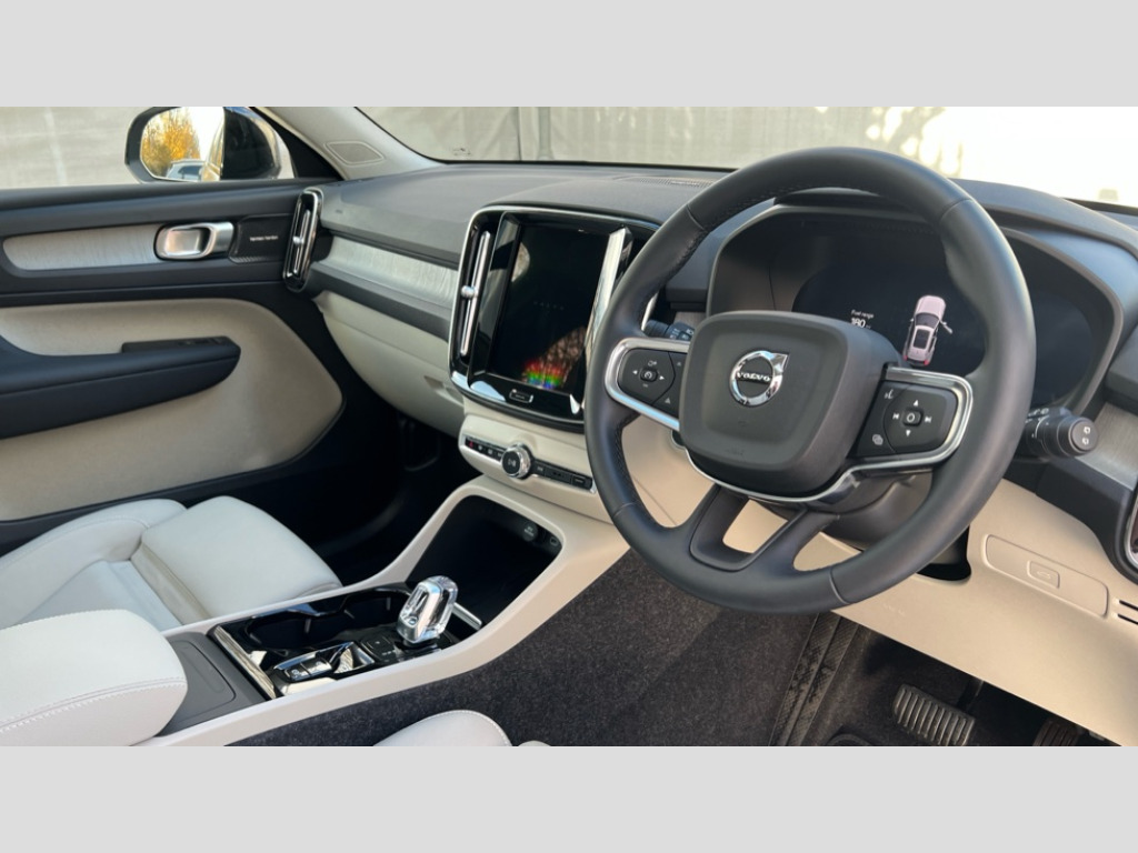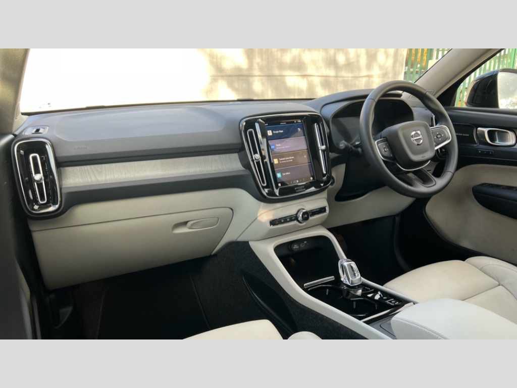 Volvo XC40 2.0 B3P Ultra Dark 5dr Auto 12.3" Progressive Driver Display, 360 degree surround view parking camera with side proximity sensors, 9" centre console portrait touch screen, Adjustable steering wheel force, Apple carplay (wired), Bluetooth handsfree system, Driver alert control, Driver assistance (pilot assist and adaptive cruise control), Driver awareness - Blind spot information system with steer assist, cross traffic alert with autobrake and rear collision warning and mitigation, E-call, Google automotive services - Enabled entertainment apps, navigation with google maps, voice recognition with google assistant, Hands free power tailgate, Intelligent speed assistance, Lane keeping aid, Oncoming Lane Mitigation, Speed sensitive steering, Volvo cars services with app - Driving journal, emergency and breakdown call, engine remote start, remote door locking/unlocking and vehicle dashboard, Wireless/Inductive Mobile Phone Charging, Automatic transmission with start/stop and manual change functions, Dynamic chassis, DAB Digital radio, Premium Sound by Harman Kardon, Dolby Pro Logic II Surround Sound, Dirac Unison,12 speakers/600W and subwoofer, Steering wheel mounted remote controls, Active bending pixel LED headlights with adaptive shadow technology, Active high beam incorporating daytime running lights, Adaptive brake lights with high level LED brake lights, Auto dimming feature for exterior door mirrors, Auto dimming interior mirror, Automatic headlamp levelling, Dark tinted windows - rear side windows and rear screen, Front aluminium tread plates, Front and rear electric windows, Headlight cleaning system, High gloss black front and rear skid plate, High gloss black front bumper deco, High gloss black mesh front grille with high gloss black surround, High gloss black window trim, Home safe and approach lighting, Integrated roof rails in high gloss black, LED front fog lights with cornering function, Power glass tilt and slide panoramic sunroof with sun curtain, Puddle lights, Rain sensor with automatic windscreen wiper activation, Rear side wing doors, Rear wiper, Roof antenna, Roof spoiler, Visible VIN plate, 12V socket in front tunnel console and luggage compartment, 2-Zone electronic climate control with CleanZone air quality system and pollen filter, 3 seat bench in 2nd row, 3 Spoke tailored steering wheel with chrome trim, 60/40 versatile split folding rear seat, Centre console cupholders and storage, Flexible load floor and grocery bag holder, Floor mats, Front cabin courtesy lights, Front door pocket, front cupholder, ambient front door, rear reading, rear courtesy, instrument panel and tailgate lighting, Front footwell illumination, Front headrests, Front reading lights, Front seat cushion extensions, Front side step illumination (under door), Glovebox bag hook, Heated front seats, Height/reach adjustable steering column, High gloss centre tunnel deco, Illuminated glovebox, Illuminated luggage compartment, Illuminated vanity mirrors + ticket holder, Integrated waste bin, Isofix attachments on outer rear seats, Load cover, Load protection net, Multi directional lumbar support for driver and passenger seat, Power driver seat with memory + exterior mirrors memory, Power folding rear headrests, Power passenger seat, Rear armrest with cupholders, Single front passenger seat, Underfloor cargo storage, Climate pack without heated front seats - XC40, 3x3 point rear seatbelts, City safety with steering support with Pedestrian + cyclist + front collision warning with full auto brake and rear auto brake, Driver and passenger airbags, Drivers knee airbag, Electronic parking brake with auto hold, First aid kit, Front and outer rear seatbelt reminder and pretensioners, Front seats SIPS airbags, Hill descent control, Hill start assist, Inflatable curtain, Passenger airbag cut-off device, Power child locks on rear doors, Road sign information display, Run off Road Protection, SIPS (Side Impact Protection System), Slippery road and hazard light alert, Stability and Traction Control with Spin control, Engine Drag Control and Corner Traction Control, Tyre pressure monitoring system, Vehicle deceleration control with Anti-lock Brake System, Electronic Brake Distribution and Emergency Brake Assist, Warning triangle, WHIPS whiplash protection system - front, 2 x Key integrated remote control central locking including with deadlocking system and auto open/close windows and sunroof, Anti-theft alarm including immobiliser/volume sensor + level sensor, Keyless drive includes keyless entry and keyless start, Locking wheel nuts