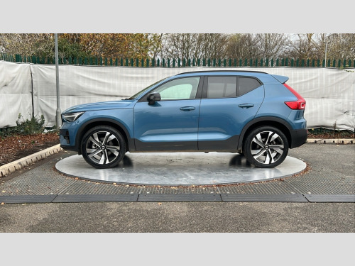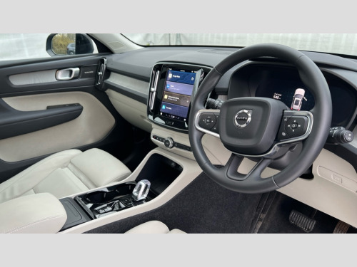 Volvo XC40 2.0 B3P Ultra Dark 5dr Auto 12.3" Progressive Driver Display, 360 degree surround view parking camera with side proximity sensors, 9" centre console portrait touch screen, Adjustable steering wheel force, Android auto (Wired), Apple carplay (wired), Bluetooth handsfree system, Driver alert control, Driver assistance (pilot assist and adaptive cruise control), Driver awareness - Blind spot information system with steer assist, cross traffic alert with autobrake and rear collision warning and mitigation, E-call, Front park assist, Google automotive services - Enabled entertainment apps, navigation with google maps, voice recognition with google assistant, Hands free power tailgate, Intelligent speed assistance, Lane keeping aid, Oncoming Lane Mitigation, Rear park assist, Speed sensitive steering, Volvo cars services with app - Driving journal, emergency and breakdown call, engine remote start, remote door locking/unlocking and vehicle dashboard, Wireless/Inductive Mobile Phone Charging, Automatic transmission with start/stop and manual change functions, Dynamic chassis, DAB Digital radio, Premium Sound by Harman Kardon, Dolby Pro Logic II Surround Sound, Dirac Unison,12 speakers/600W and subwoofer, Steering wheel mounted remote controls, Active bending pixel LED headlights with adaptive shadow technology, Active high beam incorporating daytime running lights, Adaptive brake lights with high level LED brake lights, Auto dimming feature for exterior door mirrors, Auto dimming interior mirror, Automatic headlamp levelling, Dark tinted windows - rear side windows and rear screen, Front aluminium tread plates, Front and rear electric windows, Headlight cleaning system, High gloss black front and rear skid plate, High gloss black front bumper deco, High gloss black mesh front grille with high gloss black surround, High gloss black window trim, Home safe and approach lighting, Integrated roof rails in high gloss black, LED front fog lights with cornering function, Power glass tilt and slide panoramic sunroof with sun curtain, Puddle lights, Rain sensor with automatic windscreen wiper activation, Rear side wing doors, Rear wiper, Roof antenna, Roof spoiler, Visible VIN plate, 12V socket in front tunnel console and luggage compartment, 2-Zone electronic climate control with CleanZone air quality system and pollen filter, 3 seat bench in 2nd row, 3 Spoke tailored steering wheel with chrome trim, 60/40 versatile split folding rear seat, Centre console cupholders and storage, Flexible load floor and grocery bag holder, Floor mats, Front cabin courtesy lights, Front door pocket, front cupholder, ambient front door, rear reading, rear courtesy, instrument panel and tailgate lighting, Front footwell illumination, Front headrests, Front reading lights, Front seat cushion extensions, Front side step illumination (under door), Glovebox bag hook, Heated front seats, Height/reach adjustable steering column, High gloss centre tunnel deco, Illuminated glovebox, Illuminated luggage compartment, Illuminated vanity mirrors + ticket holder, Integrated waste bin, Isofix attachments on outer rear seats, Load cover, Load protection net, Multi directional lumbar support for driver and passenger seat, Power driver seat with memory + exterior mirrors memory, Power folding rear headrests, Power passenger seat, Rear armrest with cupholders, Single front passenger seat, Underfloor cargo storage, Climate pack without heated front seats - XC40, 3x3 point rear seatbelts, City safety with steering support with Pedestrian + cyclist + front collision warning with full auto brake and rear auto brake, Driver and passenger airbags, Drivers knee airbag, Electronic parking brake with auto hold, First aid kit, Front and outer rear seatbelt reminder and pretensioners, Front seats SIPS airbags, Hill descent control, Hill start assist, Inflatable curtain, Passenger airbag cut-off device, Power child locks on rear doors, Road sign information display, Run off Road Protection, SIPS (Side Impact Protection System), Slippery road and hazard light alert, Stability and Traction Control with Spin control, Engine Drag Control and Corner Traction Control, Tyre pressure monitoring system, Vehicle deceleration control with Anti-lock Brake System, Electronic Brake Distribution and Emergency Brake Assist, Warning triangle, WHIPS whiplash protection system - front, 2 x Key integrated remote control central locking including with deadlocking system and auto open/close windows and sunroof, Anti-theft alarm including immobiliser/volume sensor + level sensor, Keyless drive includes keyless entry and keyless start, Locking wheel nuts