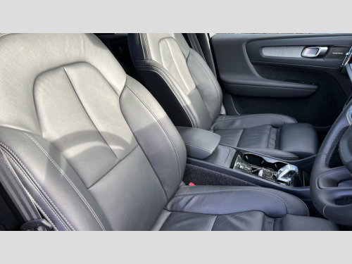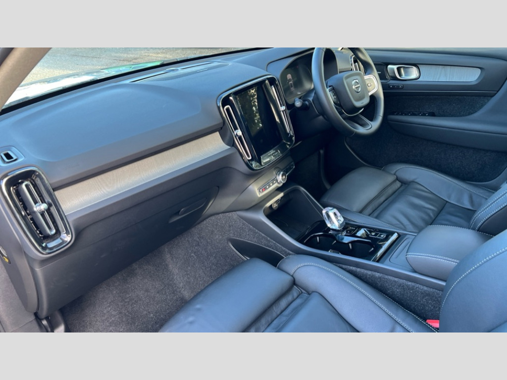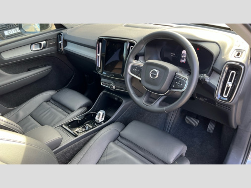Volvo XC40 2.0 B3P Ultra Dark 5dr Auto 12.3" Progressive Driver Display, 360 degree surround view parking camera with side proximity sensors, 9" centre console portrait touch screen, Adjustable steering wheel force, Android auto (Wired), Apple carplay (wired), Bluetooth handsfree system, Driver alert control, Driver assistance (pilot assist and adaptive cruise control), Driver awareness - Blind spot information system with steer assist, cross traffic alert with autobrake and rear collision warning and mitigation, E-call, Front park assist, Google automotive services - Enabled entertainment apps, navigation with google maps, voice recognition with google assistant, Hands free power tailgate, Intelligent speed assistance, Lane keeping aid, Oncoming Lane Mitigation, Rear park assist, Speed sensitive steering, Volvo cars services with app - Driving journal, emergency and breakdown call, engine remote start, remote door locking/unlocking and vehicle dashboard, Wireless/Inductive Mobile Phone Charging, Automatic transmission with start/stop and manual change functions, Dynamic chassis, DAB Digital radio, Premium Sound by Harman Kardon, Dolby Pro Logic II Surround Sound, Dirac Unison,12 speakers/600W and subwoofer, Steering wheel mounted remote controls, Active bending pixel LED headlights with adaptive shadow technology, Active high beam incorporating daytime running lights, Adaptive brake lights with high level LED brake lights, Auto dimming feature for exterior door mirrors, Auto dimming interior mirror, Automatic headlamp levelling, Dark tinted windows - rear side windows and rear screen, Front aluminium tread plates, Front and rear electric windows, Headlight cleaning system, High gloss black front and rear skid plate, High gloss black front bumper deco, High gloss black mesh front grille with high gloss black surround, High gloss black window trim, Home safe and approach lighting, Integrated roof rails in high gloss black, LED front fog lights with cornering function, Power glass tilt and slide panoramic sunroof with sun curtain, Puddle lights, Rain sensor with automatic windscreen wiper activation, Rear side wing doors, Rear wiper, Roof antenna, Roof spoiler, Visible VIN plate, 12V socket in front tunnel console and luggage compartment, 2-Zone electronic climate control with CleanZone air quality system and pollen filter, 3 seat bench in 2nd row, 3 Spoke tailored steering wheel with chrome trim, 60/40 versatile split folding rear seat, Centre console cupholders and storage, Flexible load floor and grocery bag holder, Floor mats, Front cabin courtesy lights, Front door pocket, front cupholder, ambient front door, rear reading, rear courtesy, instrument panel and tailgate lighting, Front footwell illumination, Front headrests, Front reading lights, Front seat cushion extensions, Front side step illumination (under door), Glovebox bag hook, Heated front seats, Height/reach adjustable steering column, High gloss centre tunnel deco, Illuminated glovebox, Illuminated luggage compartment, Illuminated vanity mirrors + ticket holder, Integrated waste bin, Isofix attachments on outer rear seats, Load cover, Load protection net, Multi directional lumbar support for driver and passenger seat, Power driver seat with memory + exterior mirrors memory, Power folding rear headrests, Power passenger seat, Rear armrest with cupholders, Single front passenger seat, Underfloor cargo storage, Climate pack without heated front seats - XC40, 3x3 point rear seatbelts, City safety with steering support with Pedestrian + cyclist + front collision warning with full auto brake and rear auto brake, Driver and passenger airbags, Drivers knee airbag, Electronic parking brake with auto hold, First aid kit, Front and outer rear seatbelt reminder and pretensioners, Front seats SIPS airbags, Hill descent control, Hill start assist, Inflatable curtain, Passenger airbag cut-off device, Power child locks on rear doors, Road sign information display, Run off Road Protection, SIPS (Side Impact Protection System), Slippery road and hazard light alert, Stability and Traction Control with Spin control, Engine Drag Control and Corner Traction Control, Tyre pressure monitoring system, Vehicle deceleration control with Anti-lock Brake System, Electronic Brake Distribution and Emergency Brake Assist, Warning triangle, WHIPS whiplash protection system - front, 2 x Key integrated remote control central locking including with deadlocking system and auto open/close windows and sunroof, Anti-theft alarm including immobiliser/volume sensor + level sensor, Keyless drive includes keyless entry and keyless start, Locking wheel nuts