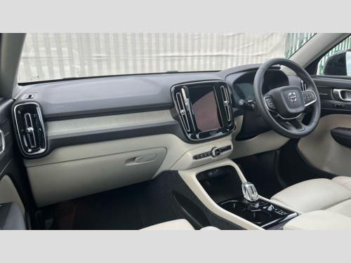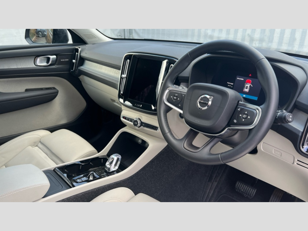 Volvo XC40 2.0 B3P Ultra Dark 5dr Auto 12.3" Progressive Driver Display, 360 degree surround view parking camera with side proximity sensors, 9" centre console portrait touch screen, Adjustable steering wheel force, Android auto (Wired), Apple carplay (wired), Bluetooth handsfree system, Driver alert control, Driver assistance (pilot assist and adaptive cruise control), Driver awareness - Blind spot information system with steer assist, cross traffic alert with autobrake and rear collision warning and mitigation, E-call, Front park assist, Google automotive services - Enabled entertainment apps, navigation with google maps, voice recognition with google assistant, Hands free power tailgate, Intelligent speed assistance, Lane keeping aid, Oncoming Lane Mitigation, Rear park assist, Speed sensitive steering, Volvo cars services with app - Driving journal, emergency and breakdown call, engine remote start, remote door locking/unlocking and vehicle dashboard, Wireless/Inductive Mobile Phone Charging, Automatic transmission with start/stop and manual change functions, Dynamic chassis, DAB Digital radio, Premium Sound by Harman Kardon, Dolby Pro Logic II Surround Sound, Dirac Unison,12 speakers/600W and subwoofer, Steering wheel mounted remote controls, Active bending pixel LED headlights with adaptive shadow technology, Active high beam incorporating daytime running lights, Adaptive brake lights with high level LED brake lights, Auto dimming feature for exterior door mirrors, Auto dimming interior mirror, Automatic headlamp levelling, Dark tinted windows - rear side windows and rear screen, Front aluminium tread plates, Front and rear electric windows, Headlight cleaning system, High gloss black front and rear skid plate, High gloss black front bumper deco, High gloss black mesh front grille with high gloss black surround, High gloss black window trim, Home safe and approach lighting, Integrated roof rails in high gloss black, LED front fog lights with cornering function, Power glass tilt and slide panoramic sunroof with sun curtain, Puddle lights, Rain sensor with automatic windscreen wiper activation, Rear side wing doors, Rear wiper, Roof antenna, Roof spoiler, Visible VIN plate, 12V socket in front tunnel console and luggage compartment, 2-Zone electronic climate control with CleanZone air quality system and pollen filter, 3 seat bench in 2nd row, 3 Spoke tailored steering wheel with chrome trim, 60/40 versatile split folding rear seat, Centre console cupholders and storage, Flexible load floor and grocery bag holder, Floor mats, Front cabin courtesy lights, Front door pocket, front cupholder, ambient front door, rear reading, rear courtesy, instrument panel and tailgate lighting, Front footwell illumination, Front headrests, Front reading lights, Front seat cushion extensions, Front side step illumination (under door), Glovebox bag hook, Heated front seats, Height/reach adjustable steering column, High gloss centre tunnel deco, Illuminated glovebox, Illuminated luggage compartment, Illuminated vanity mirrors + ticket holder, Integrated waste bin, Isofix attachments on outer rear seats, Load cover, Load protection net, Multi directional lumbar support for driver and passenger seat, Power driver seat with memory + exterior mirrors memory, Power folding rear headrests, Power passenger seat, Rear armrest with cupholders, Single front passenger seat, Underfloor cargo storage, Climate pack without heated front seats - XC40, 3x3 point rear seatbelts, City safety with steering support with Pedestrian + cyclist + front collision warning with full auto brake and rear auto brake, Driver and passenger airbags, Drivers knee airbag, Electronic parking brake with auto hold, First aid kit, Front and outer rear seatbelt reminder and pretensioners, Front seats SIPS airbags, Hill descent control, Hill start assist, Inflatable curtain, Passenger airbag cut-off device, Power child locks on rear doors, Road sign information display, Run off Road Protection, SIPS (Side Impact Protection System), Slippery road and hazard light alert, Stability and Traction Control with Spin control, Engine Drag Control and Corner Traction Control, Tyre pressure monitoring system, Vehicle deceleration control with Anti-lock Brake System, Electronic Brake Distribution and Emergency Brake Assist, Warning triangle, WHIPS whiplash protection system - front, 2 x Key integrated remote control central locking including with deadlocking system and auto open/close windows and sunroof, Anti-theft alarm including immobiliser/volume sensor + level sensor, Keyless drive includes keyless entry and keyless start, Locking wheel nuts